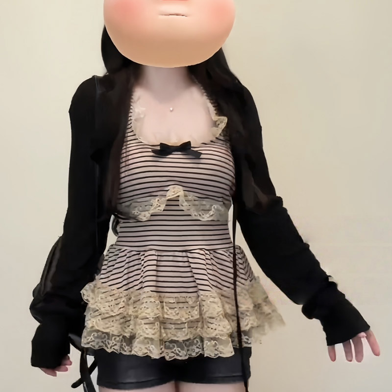 부드러운 바람 달콤함 나팔 소매 자외선 차단 여성 셔츠 여름 자외선 차단 블라우스 슬립 투피스 세트