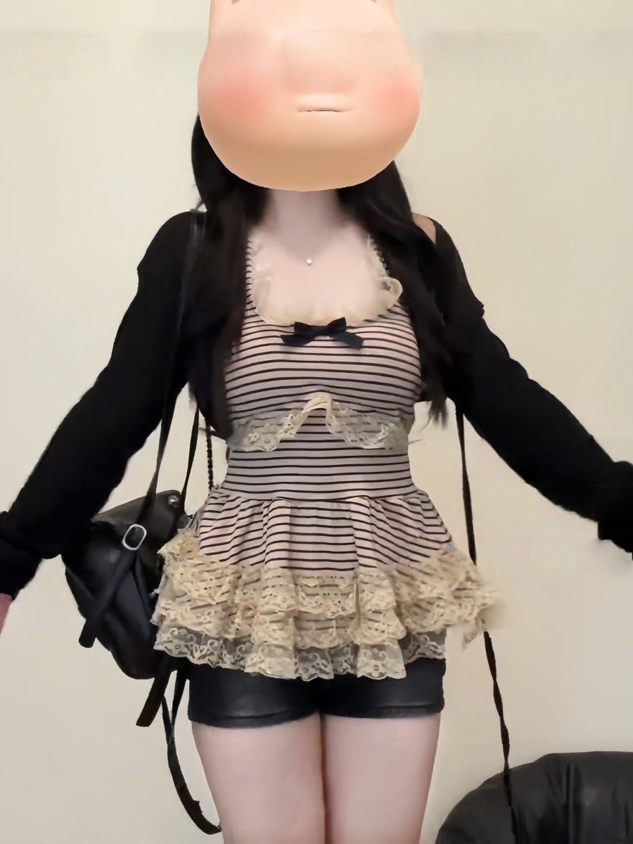 경관 그림 정가 원본 원단 벨트 가슴 패드 무거운 작업 레이스 나비 매듭 행침 목 허리 수축 캐미솔 맨위