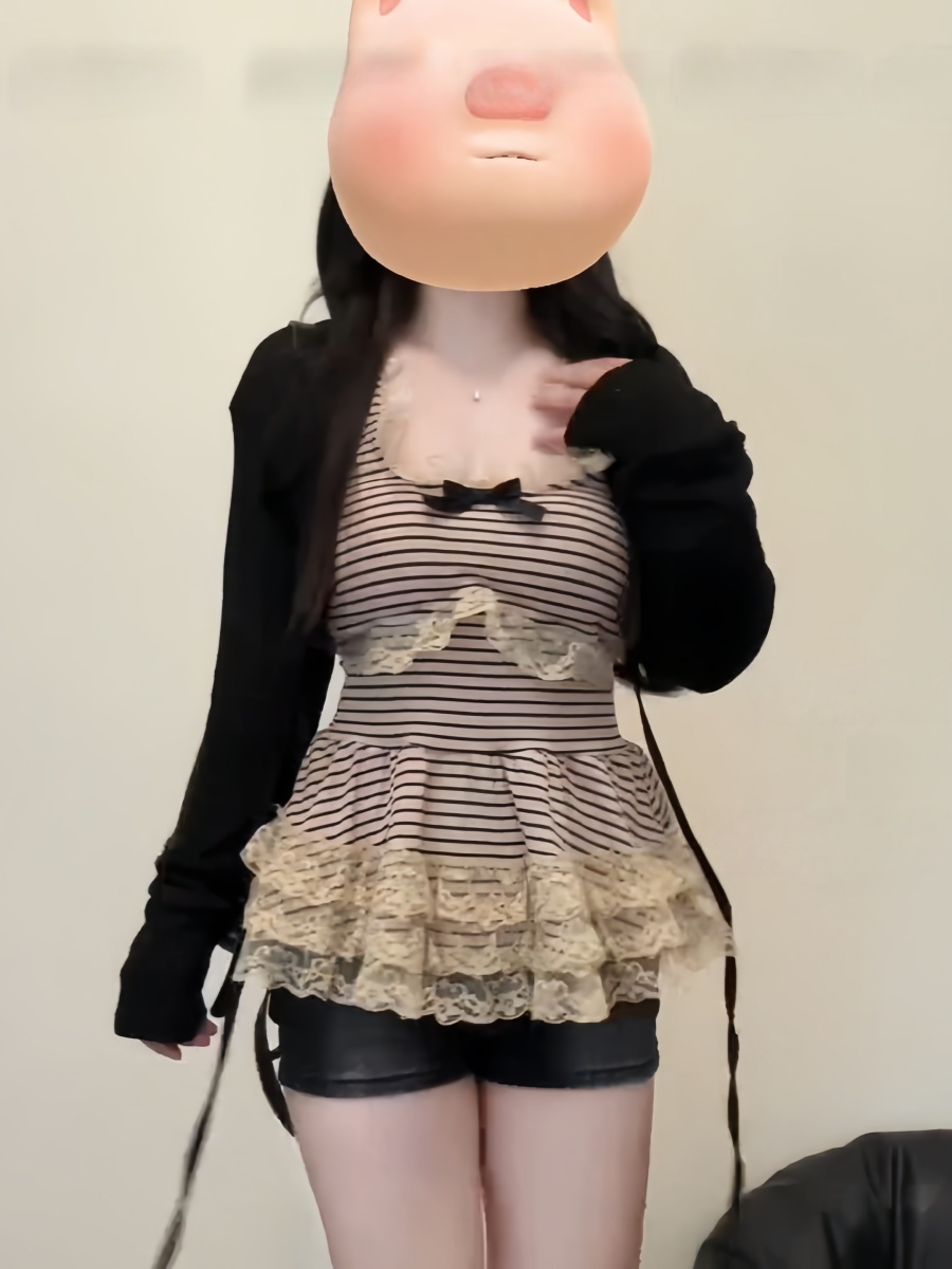 눈꽃 면 빅 사이즈 레이스업 레이스 허리 수축 슬림해 보이는 여성 2026 년 봄 가을 새로운 불규칙 긴팔 맨위