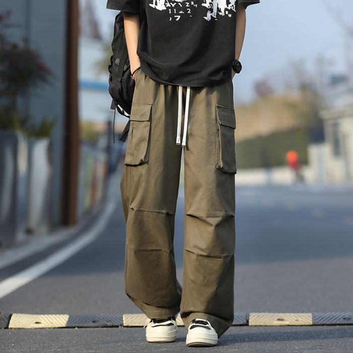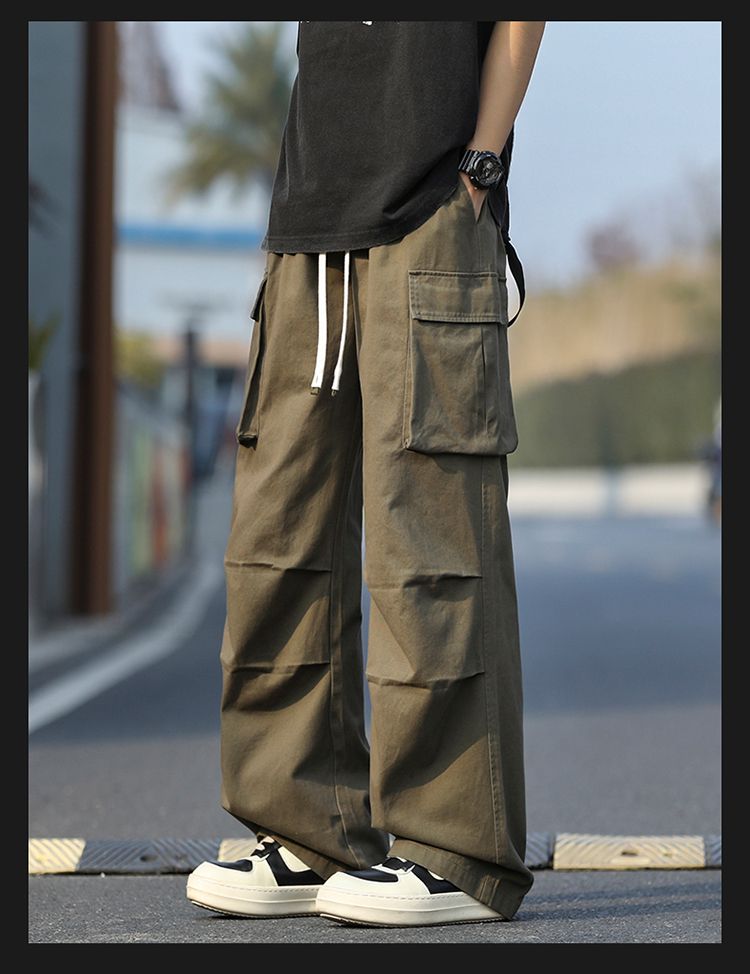 워크웨어 팬츠 남자 아메리칸 조수 브랜드 악당 잘 생긴 기타 주머니 캐주얼 바지 루즈핏 스트레이트 패션 트렌드 레트로 낙하산 병 바지