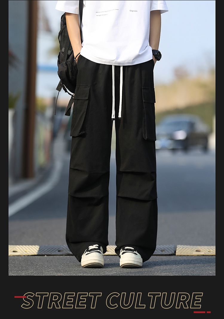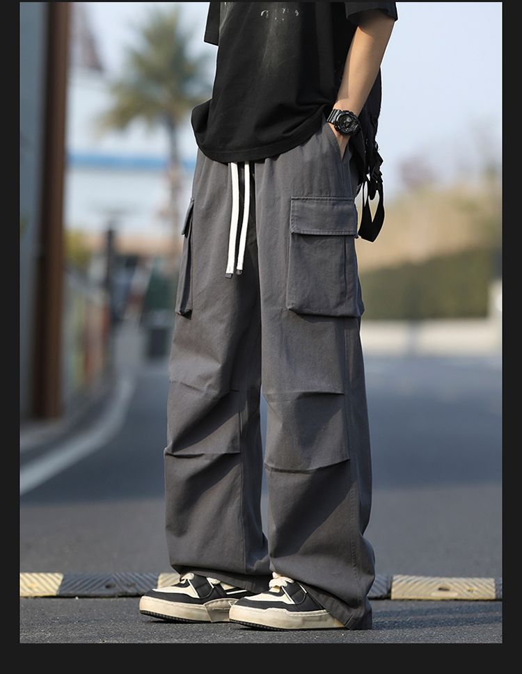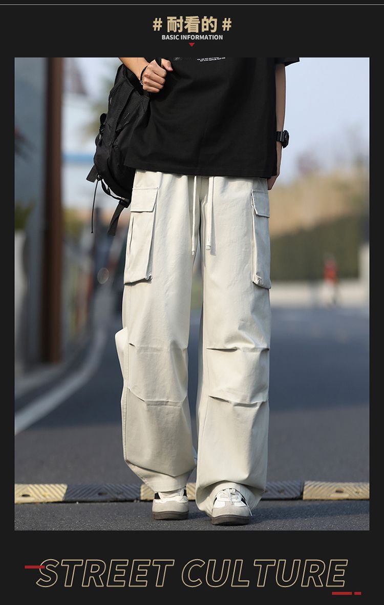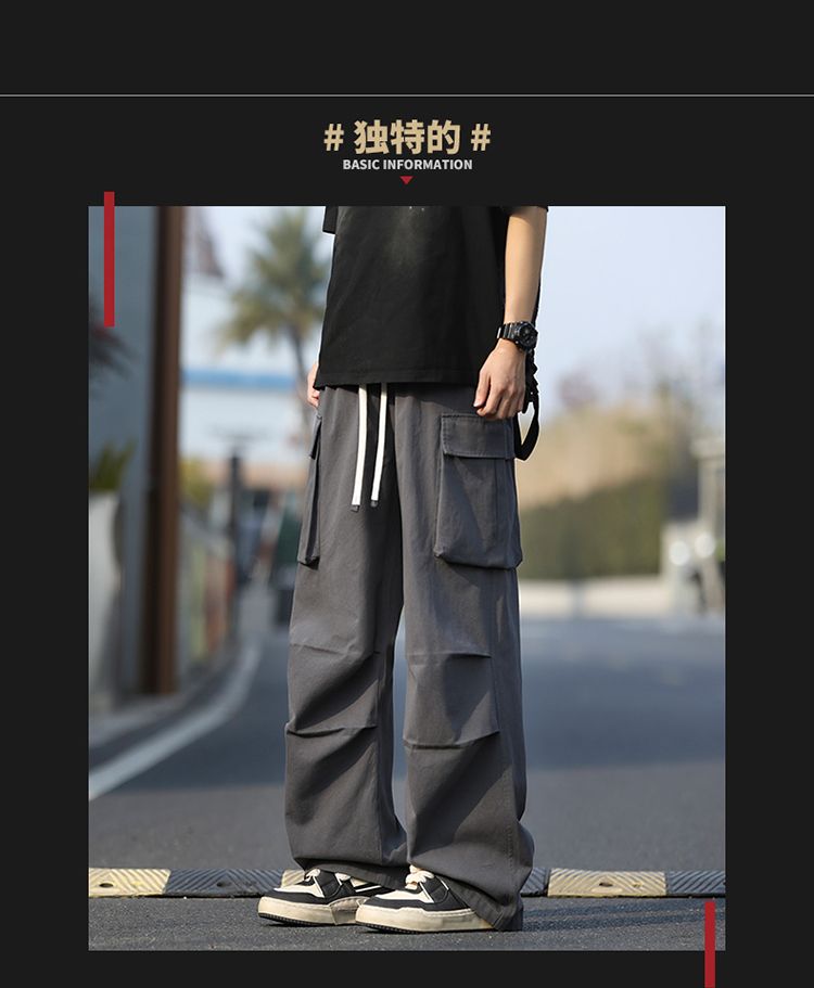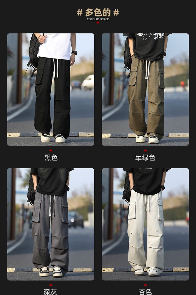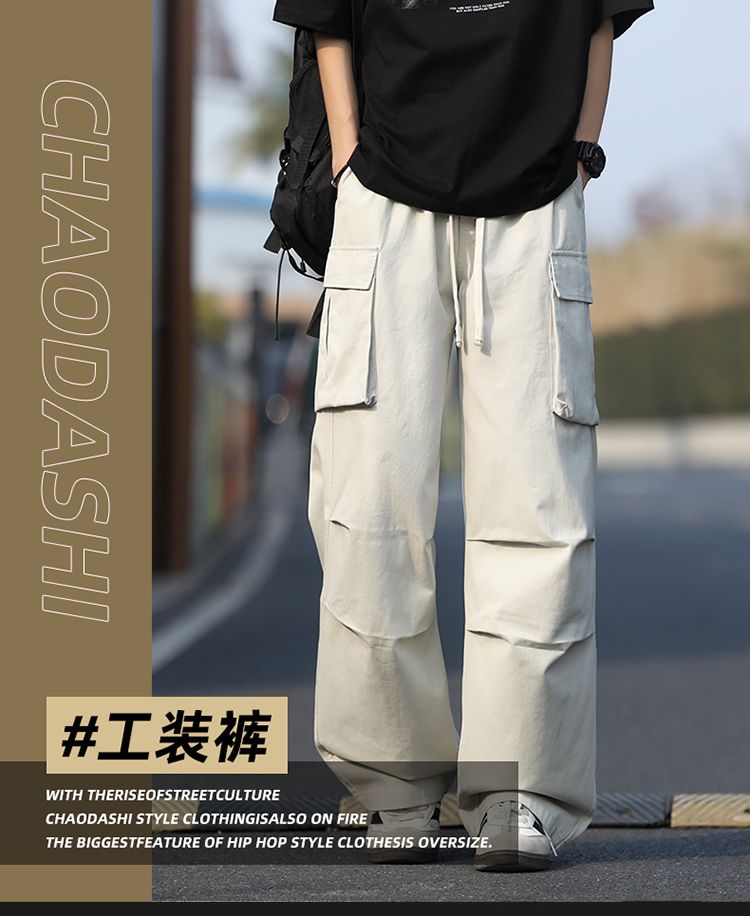 조수 브랜드 루즈핏 남성 캐주얼 카드 워크웨어 팬츠 ins 다용도 스트레이트 운동 낙하산 병 바지 펌프 로프 요금 캐주얼 바지