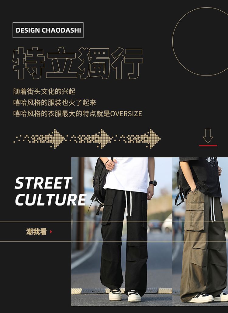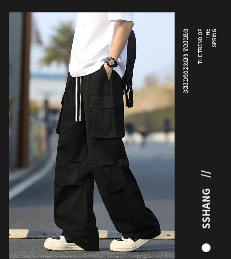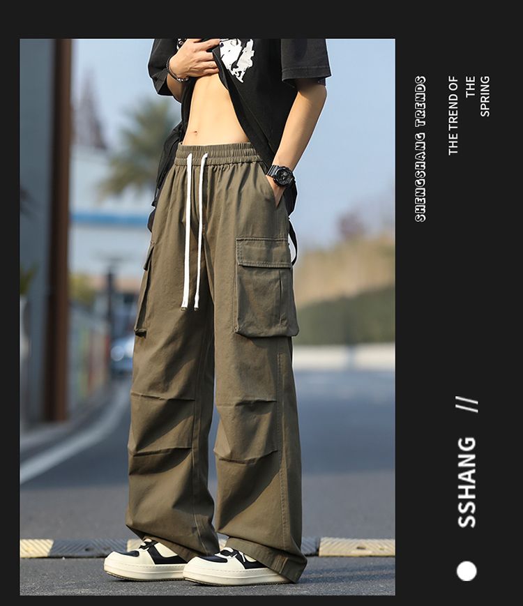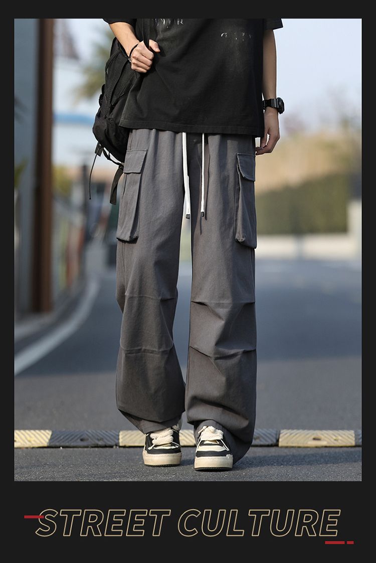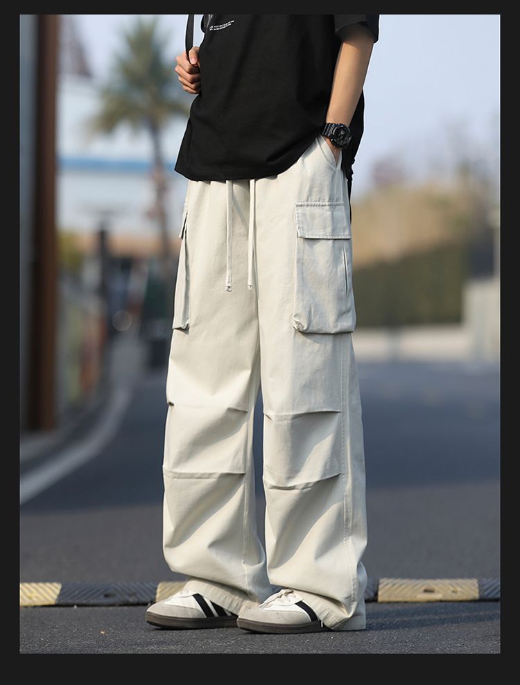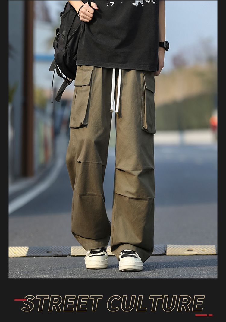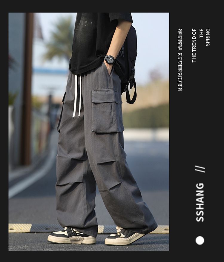 조수 브랜드 루즈핏 남성 캐주얼 카드 워크웨어 팬츠 ins 다용도 스트레이트 운동 낙하산 병 바지 펌프 로프 요금 캐주얼 바지