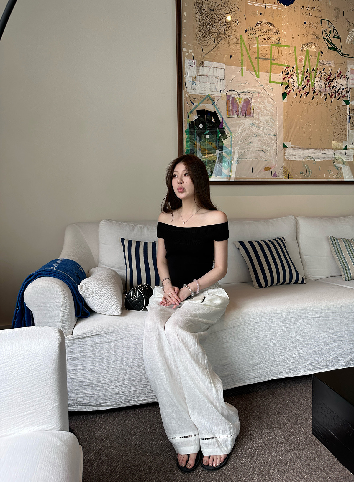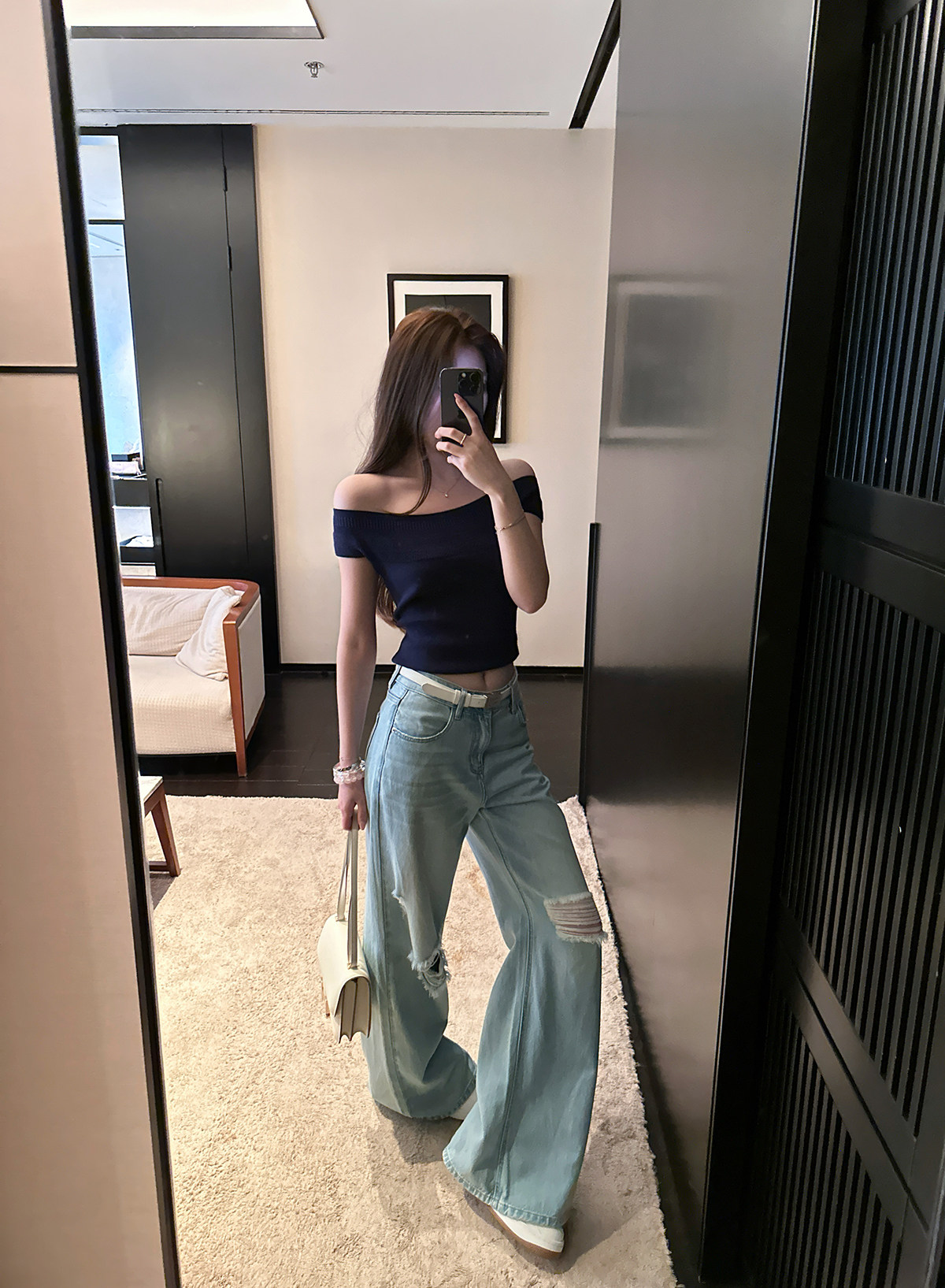 실사 xian 물품 봄 한국 스타일 패치워크 레이스 맨위 홀로우 아웃 베스트 와이드 레그 팬츠 돼지 코 버클 3종 세트