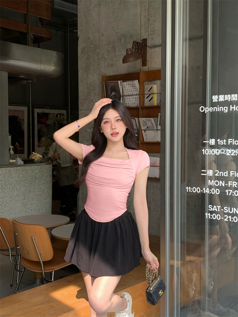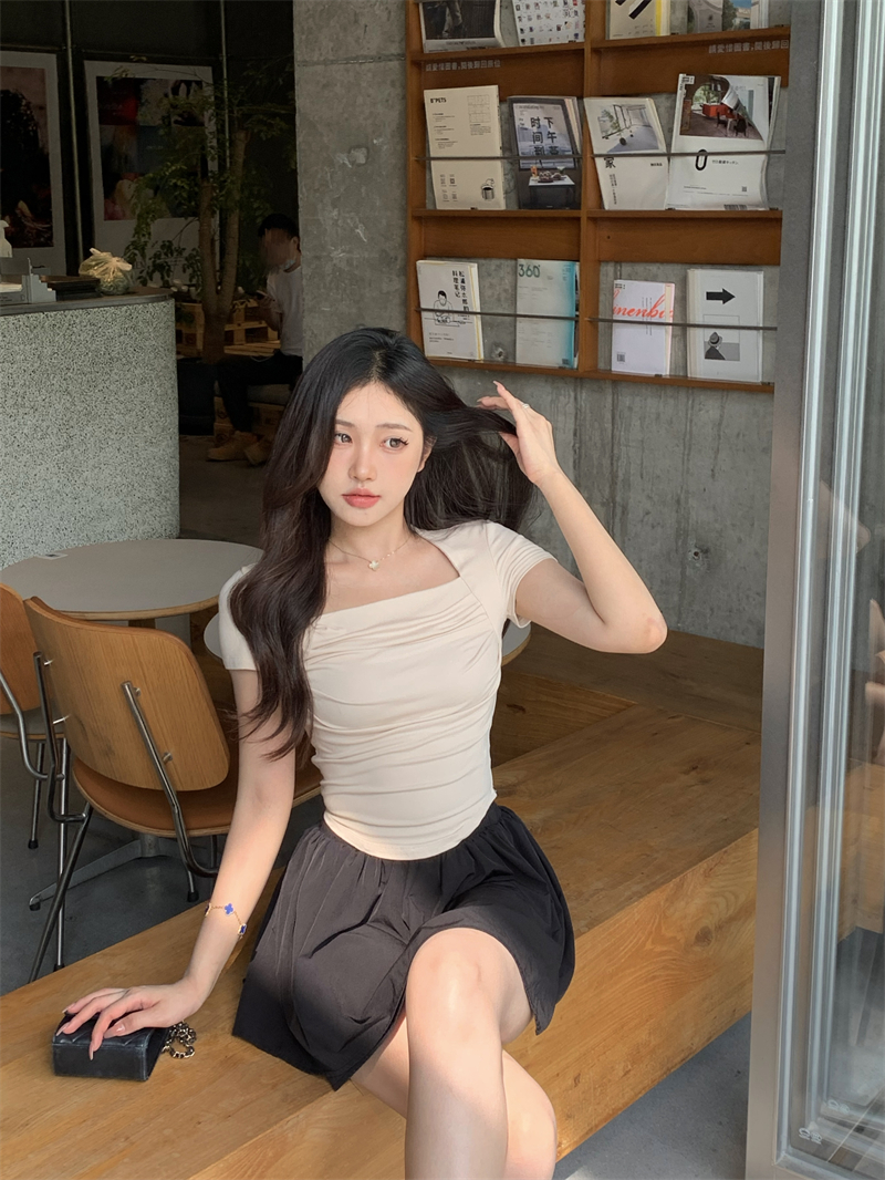 실사 정가 여름 순수한 욕망 디자인 센스 핫걸 광장 칼라 반팔 티셔츠 단색 다용도 캐주얼 바지