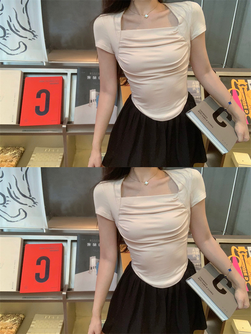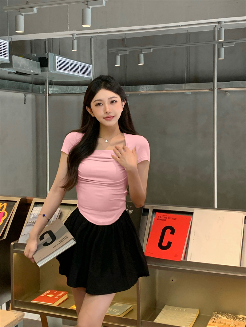 실사 정가 한국 새로운 단색 다용도 기초 섹션 티셔츠 몸매 가꾸기 슬림해 보이는 반팔 연삭 털 기본 셔츠 여성