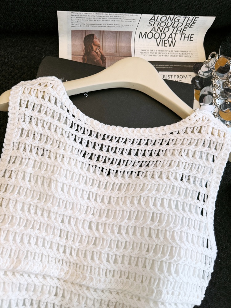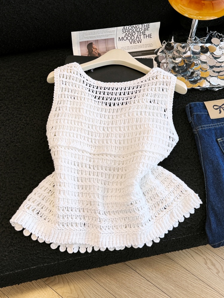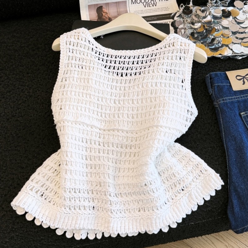 실사 프랑스식 레트로 자수 홀로우 아웃 니트 베스트 조끼 여성 여름 새로운 외국 가스 민소매 어깨 맨위
