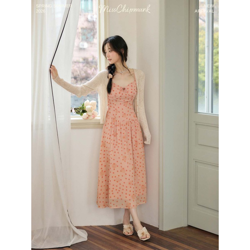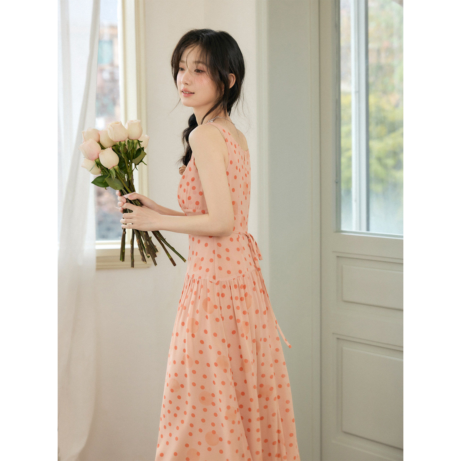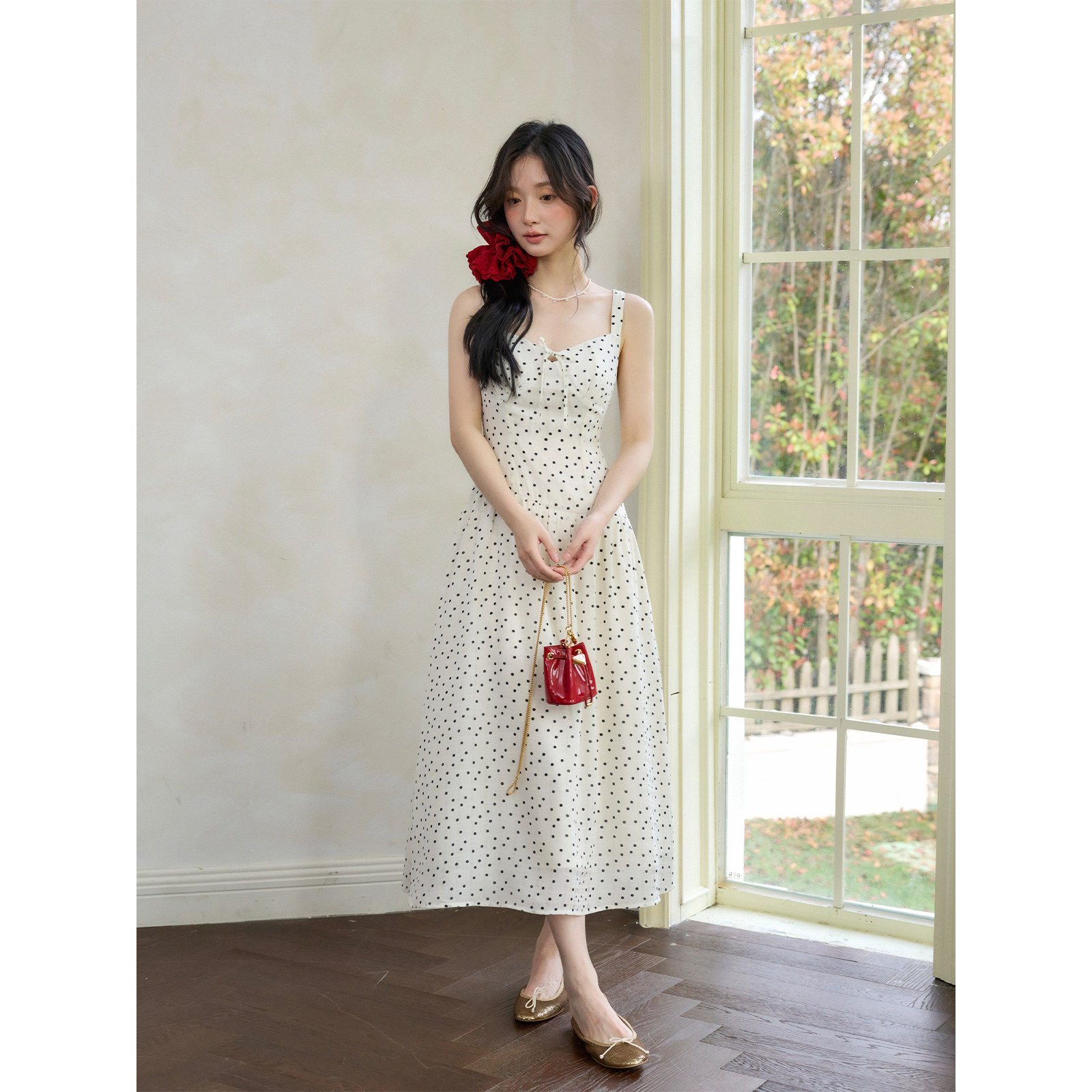 다람쥐 미스 프랑스식 품격 여성 드레스 여름 도트 무늬 치마 한 마디 허리 수축 롱 스커트 해변가 휴가 슬립 드레스