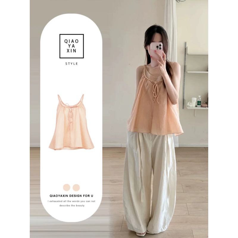한 부서 아름다운 주황색 작은 슬링 조끼 여성 여름 외출용 2026 새로운 자이언트 잘 생긴 고급 센스 민소매 맨위