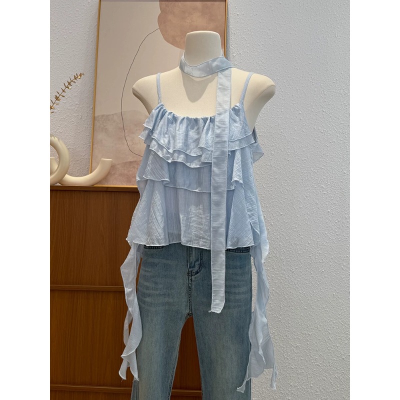 한국 스타일 프릴 불규칙 캐미솔 2026 여름 새로운 외국 가스 연령 감소 다용도 고유 한 맨위 트렌디