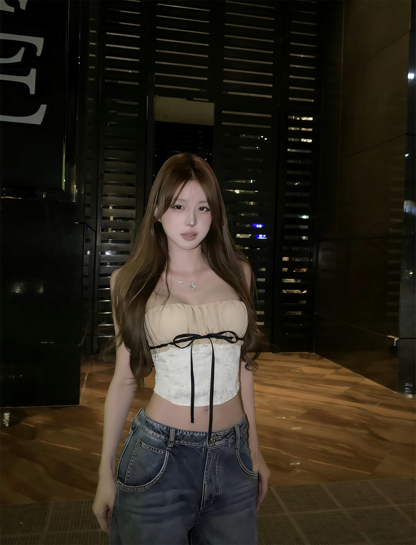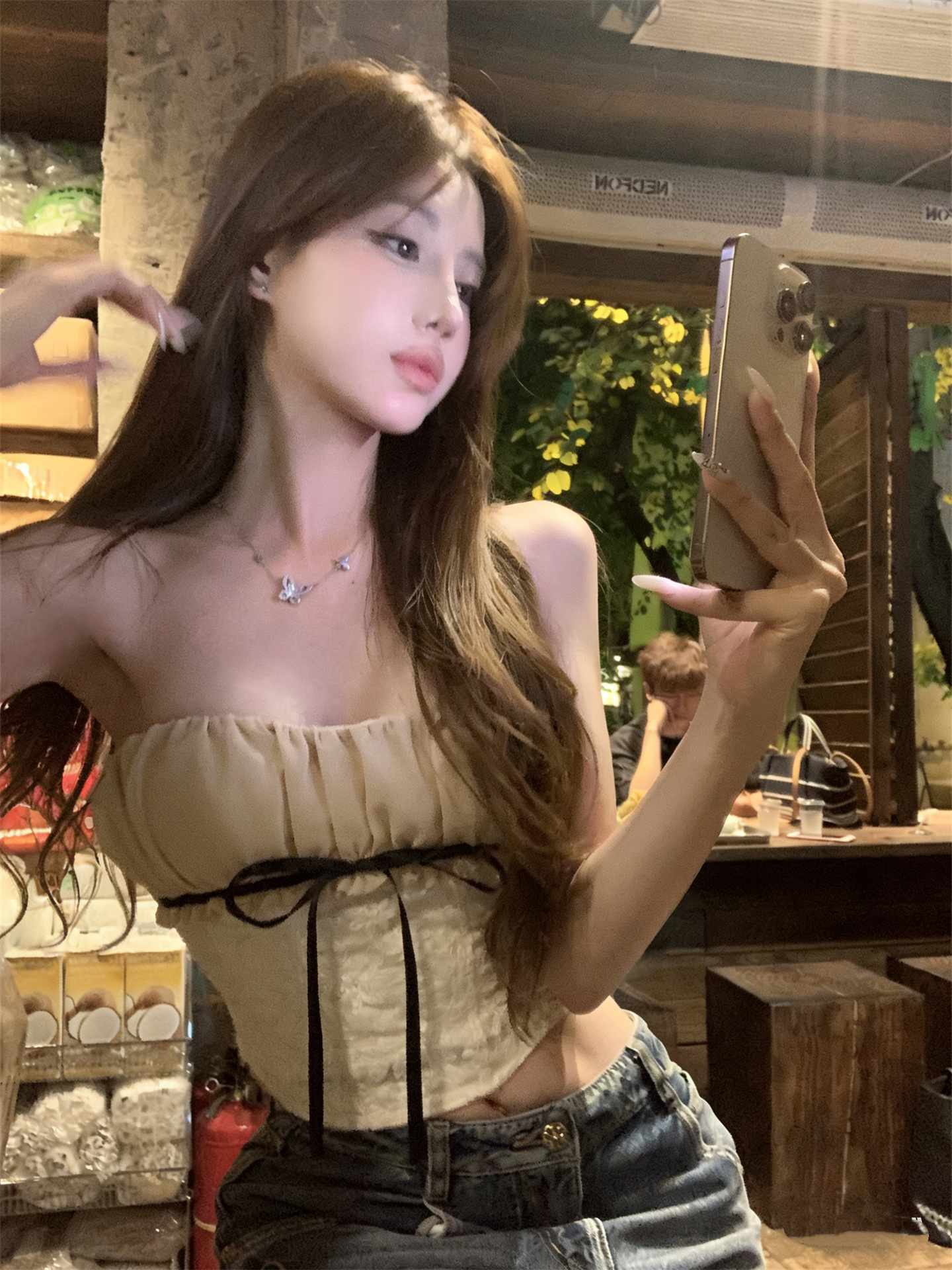 실사 정가 낭만적 인 기질 자카드 레이스업 튜브탑 맨위