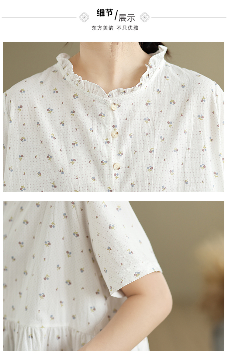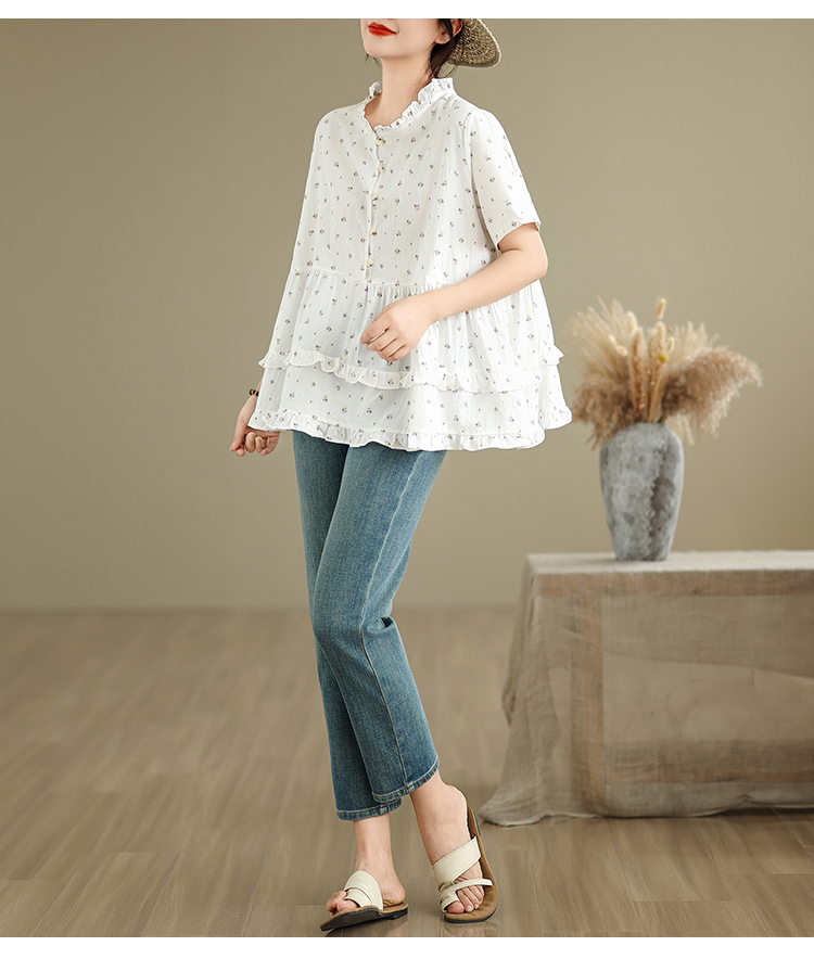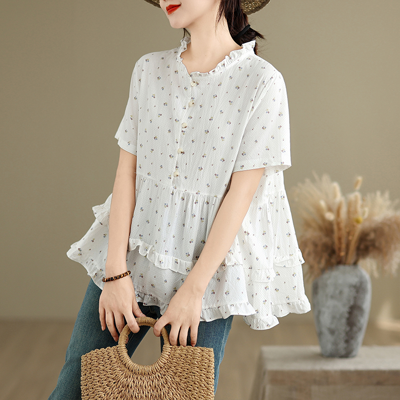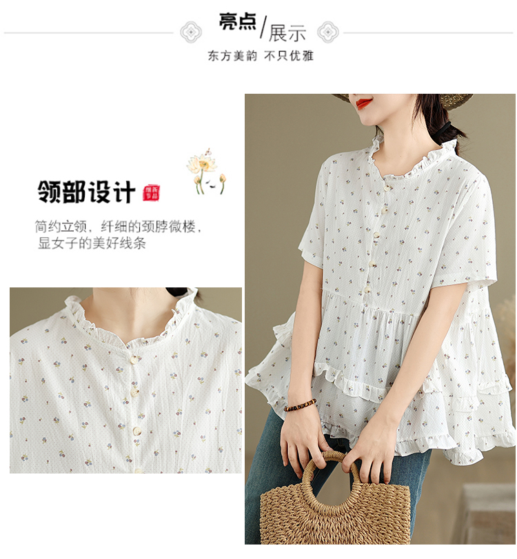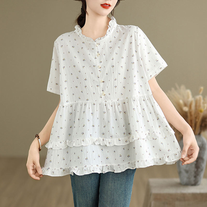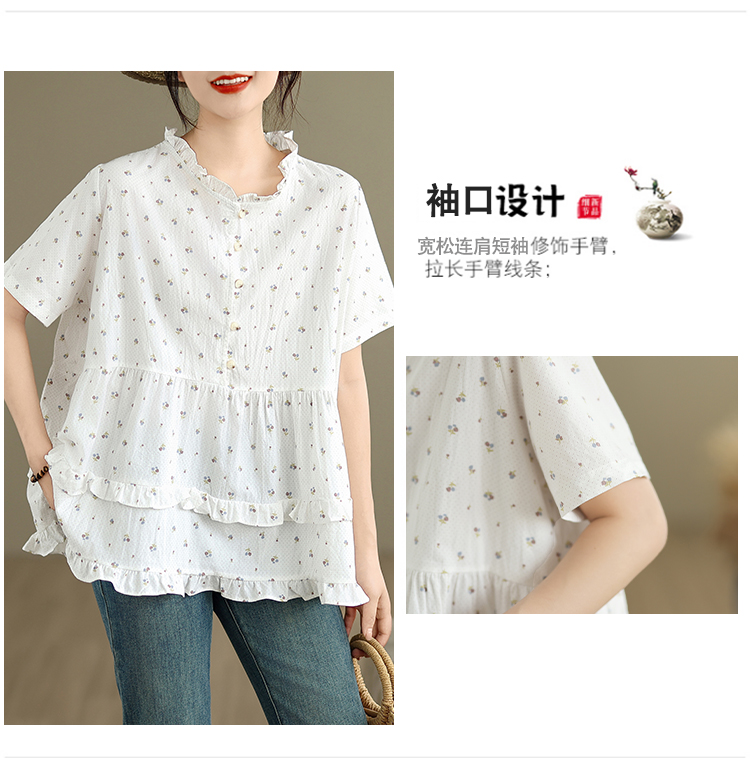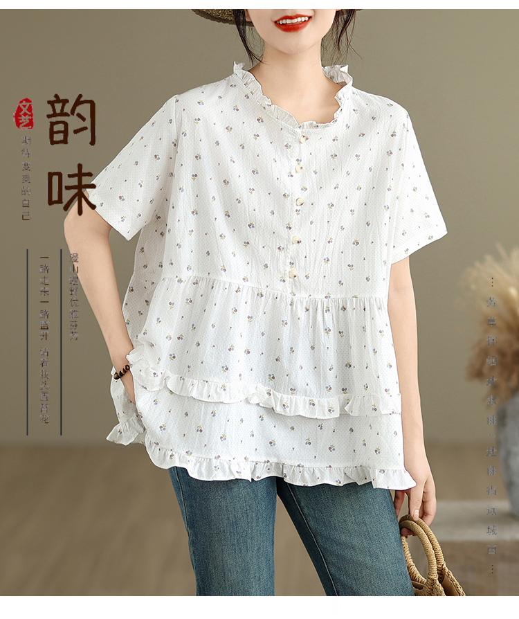 실사 2026 년 여름 면 린넨 레트로 문예 작은 청신 빅 사이즈 프릴 칼라 셔츠 여성