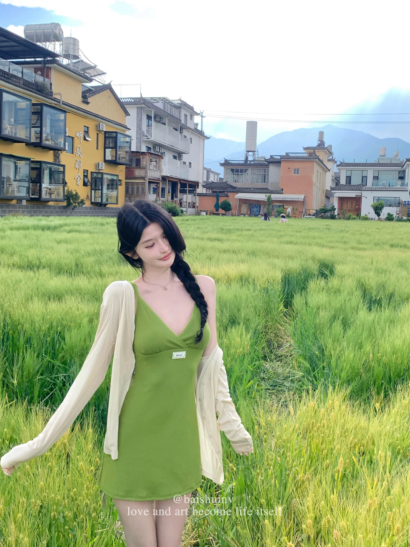 캄파넬라 세과 house 박하 우유 서리 프랑스식 천 골드 드레스 자카드 대 치마 슬립 드레스 신선함 외부 가져 가라.