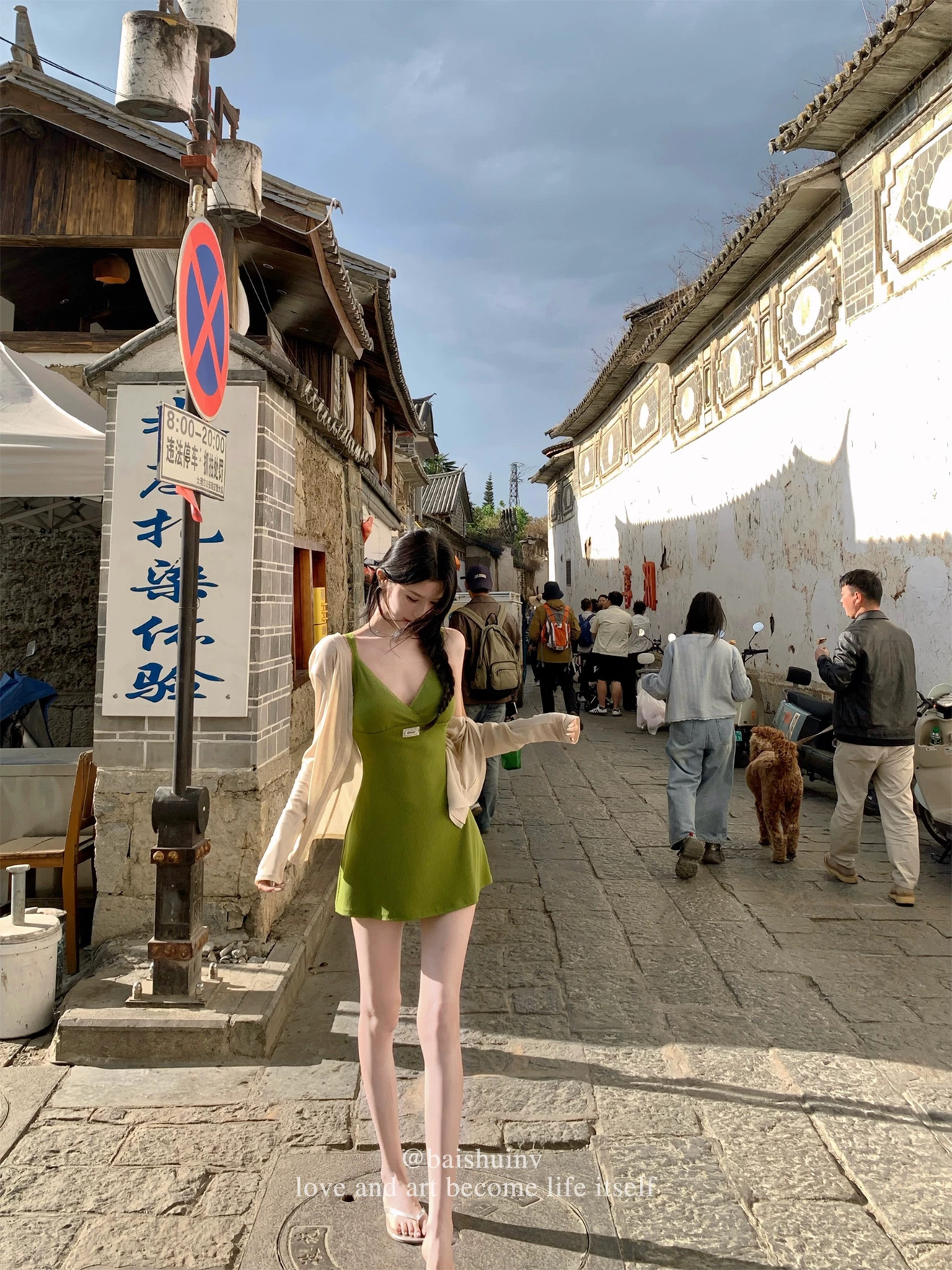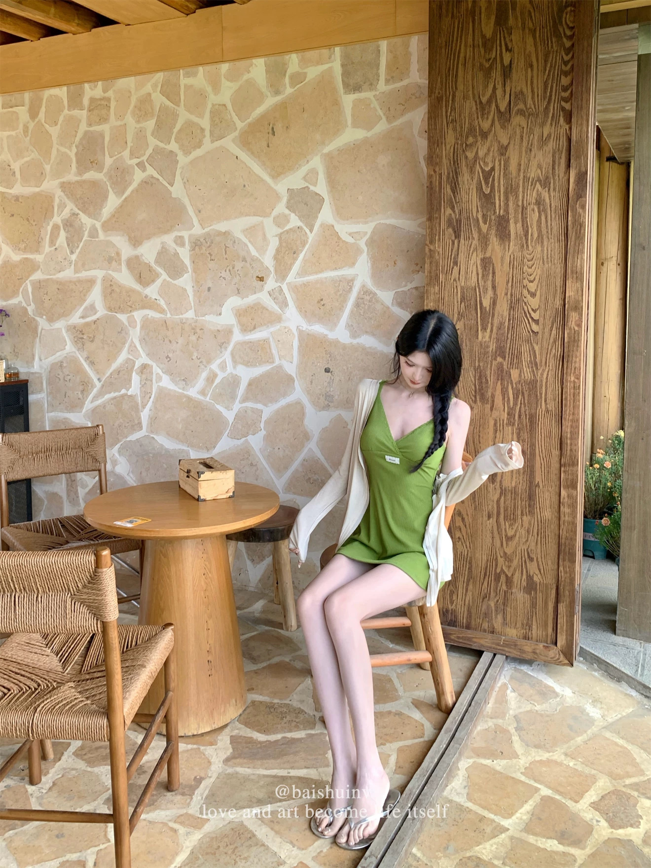 휴일 몸매 가꾸기 망사 드레스 품격 슬림해 보이는 백리스 해변가 여름 슬립 롱 스커트