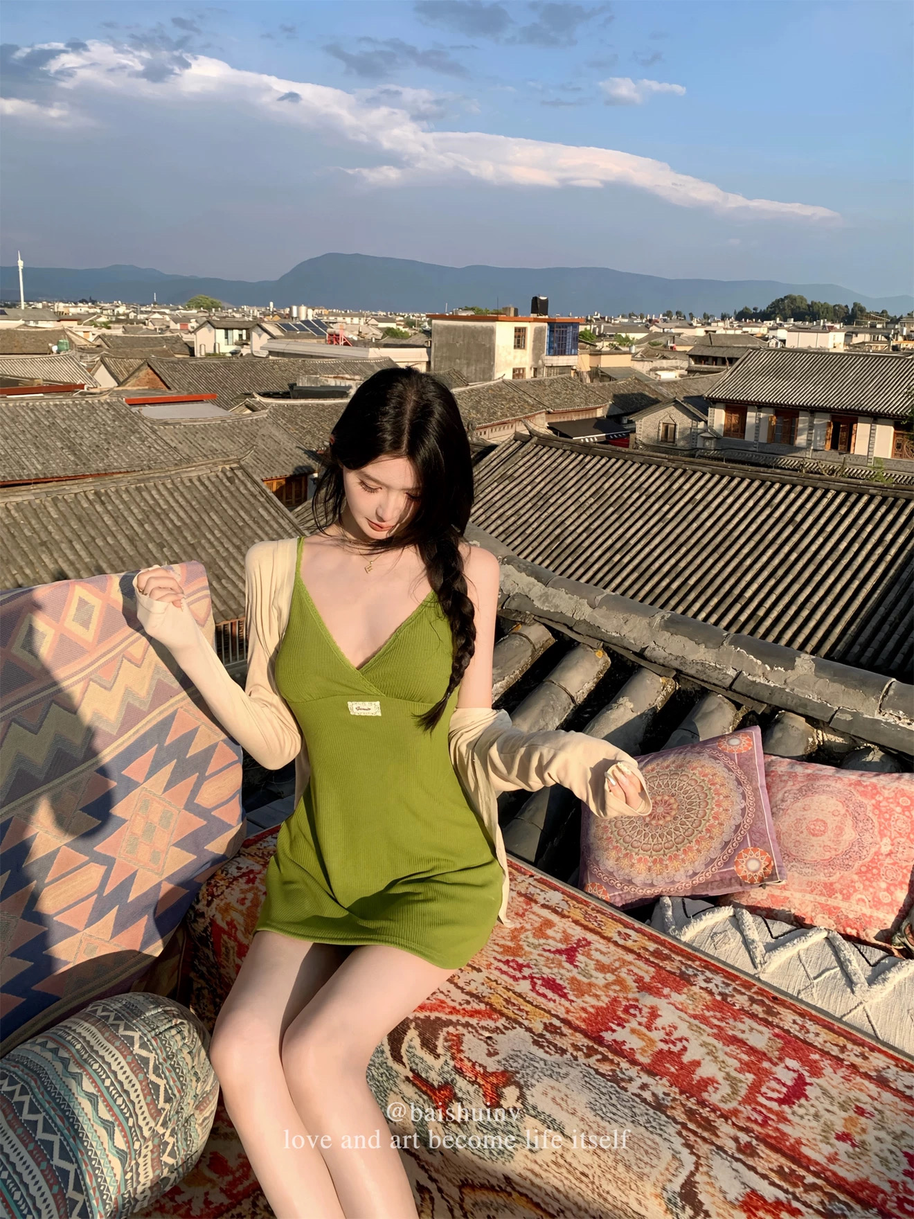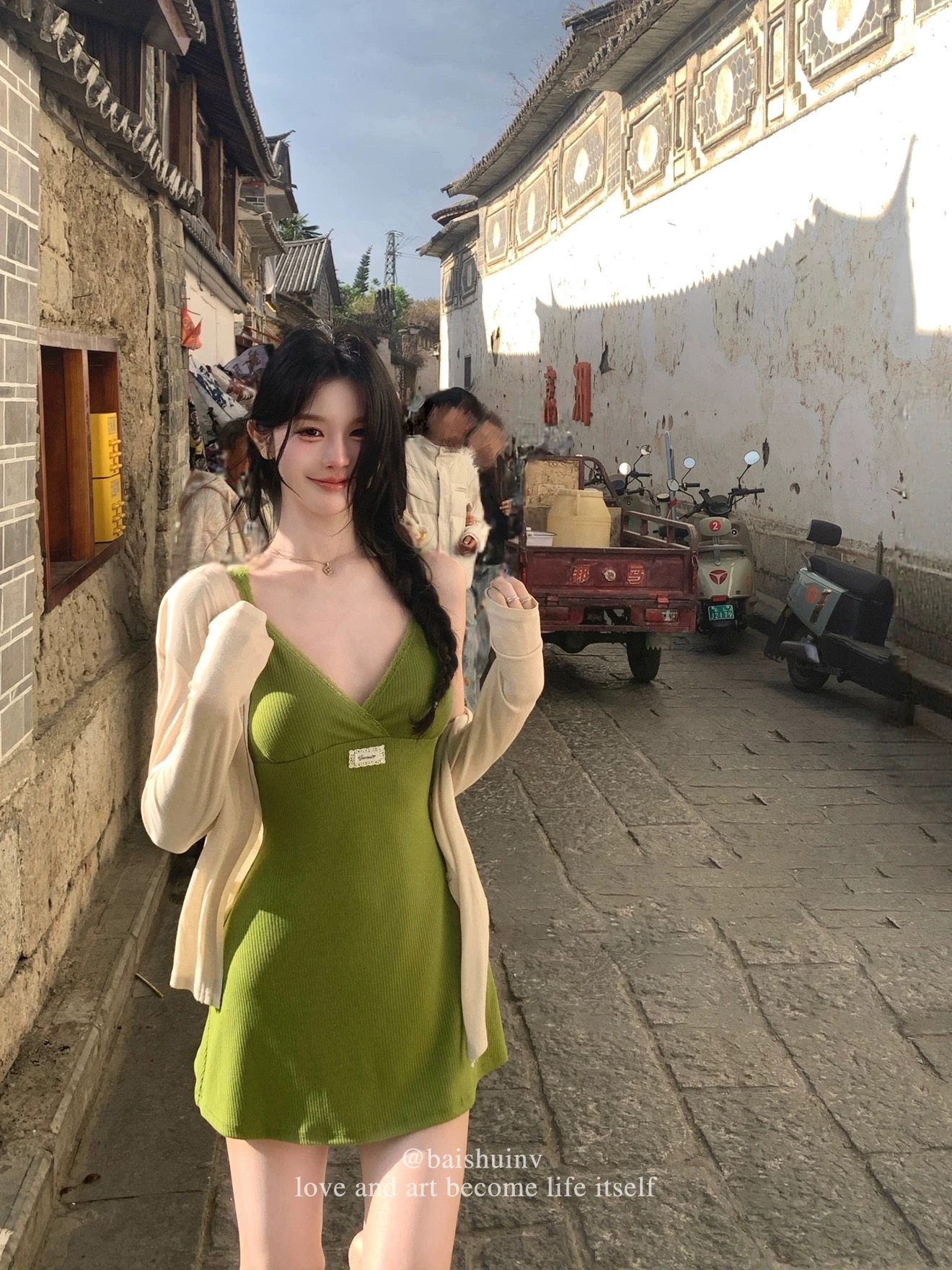 miu 부서 아름다움 세트 그룹 V넥 캐미솔 레이스 여성 드레스 여름 감기 바람 구덩이 기사 맨위 오픈 가디건