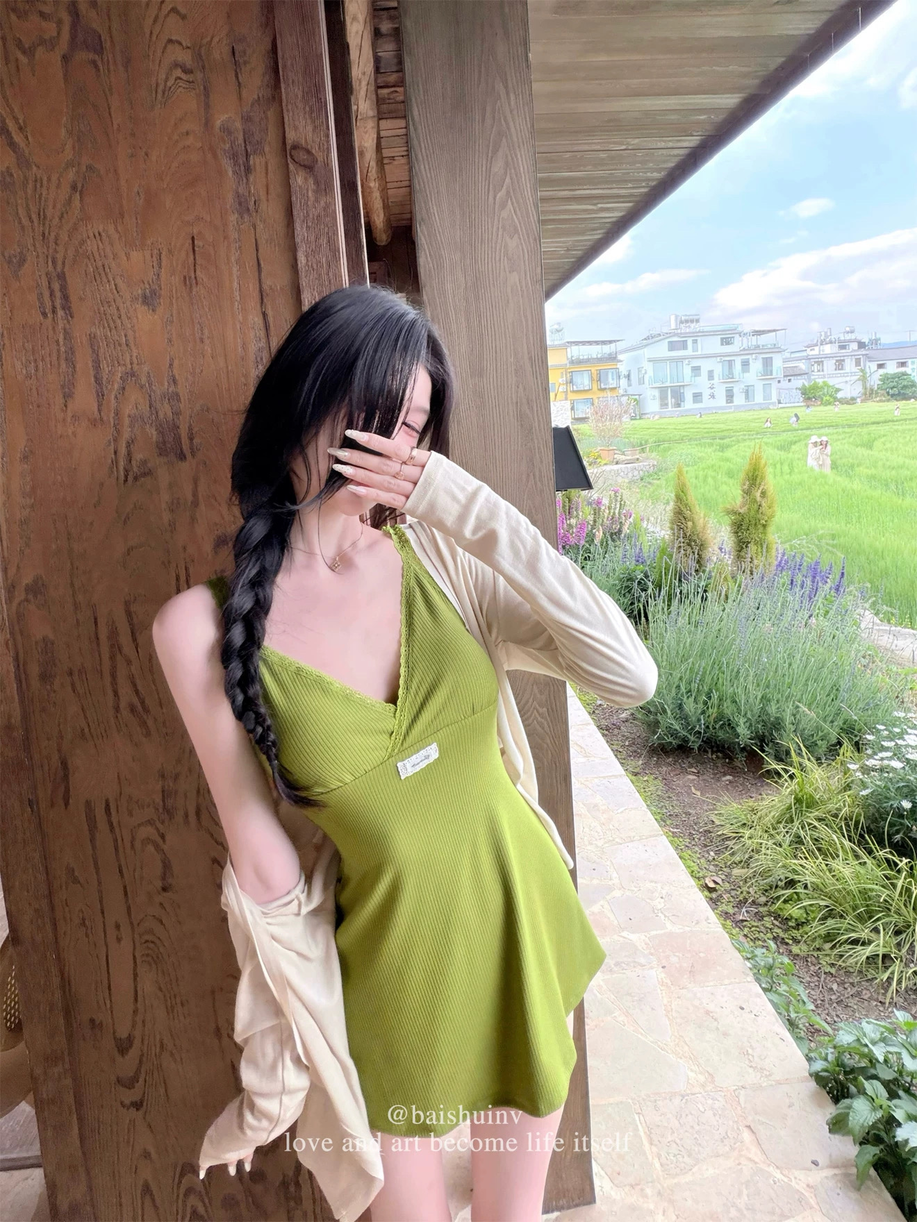 2026 년 새로운 체크무늬 스트랩 오픈 가디건 레이스 슬립 세트 여성 여름 슈퍼 잘 생긴 ~ 중 페이크 레이어드 고유 한 맨위