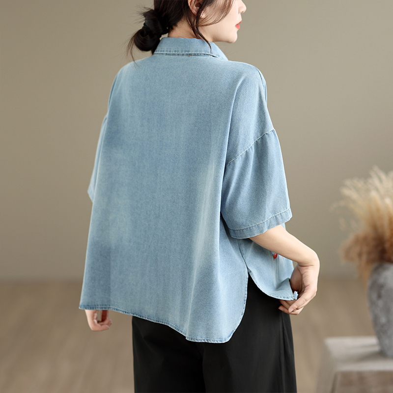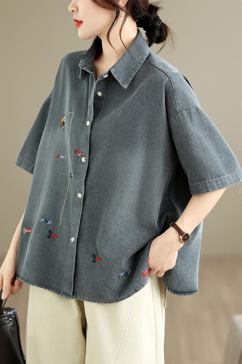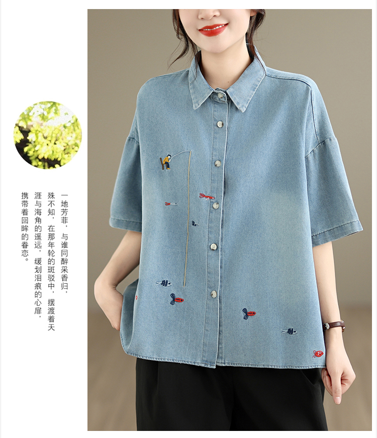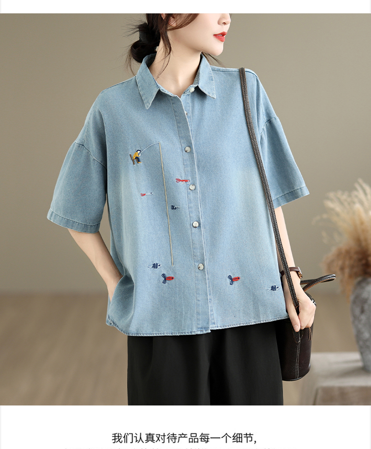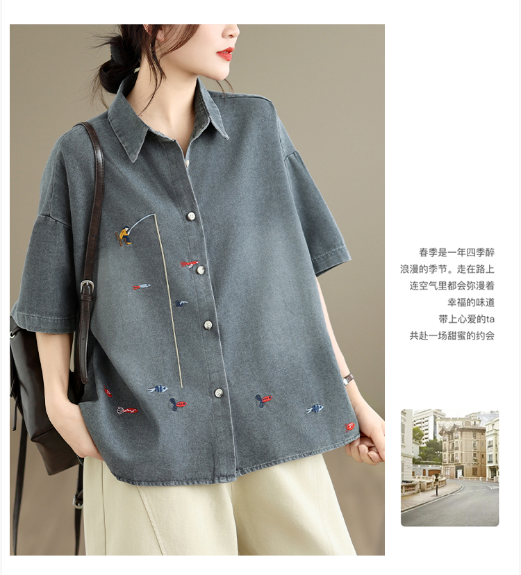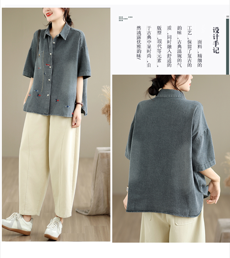 실사 여름 새로운 자수 빅 사이즈 표지 배 슬림해 보이는 얇은 스타일 워싱 데님 맨위 오픈 가디건 반팔 셔츠