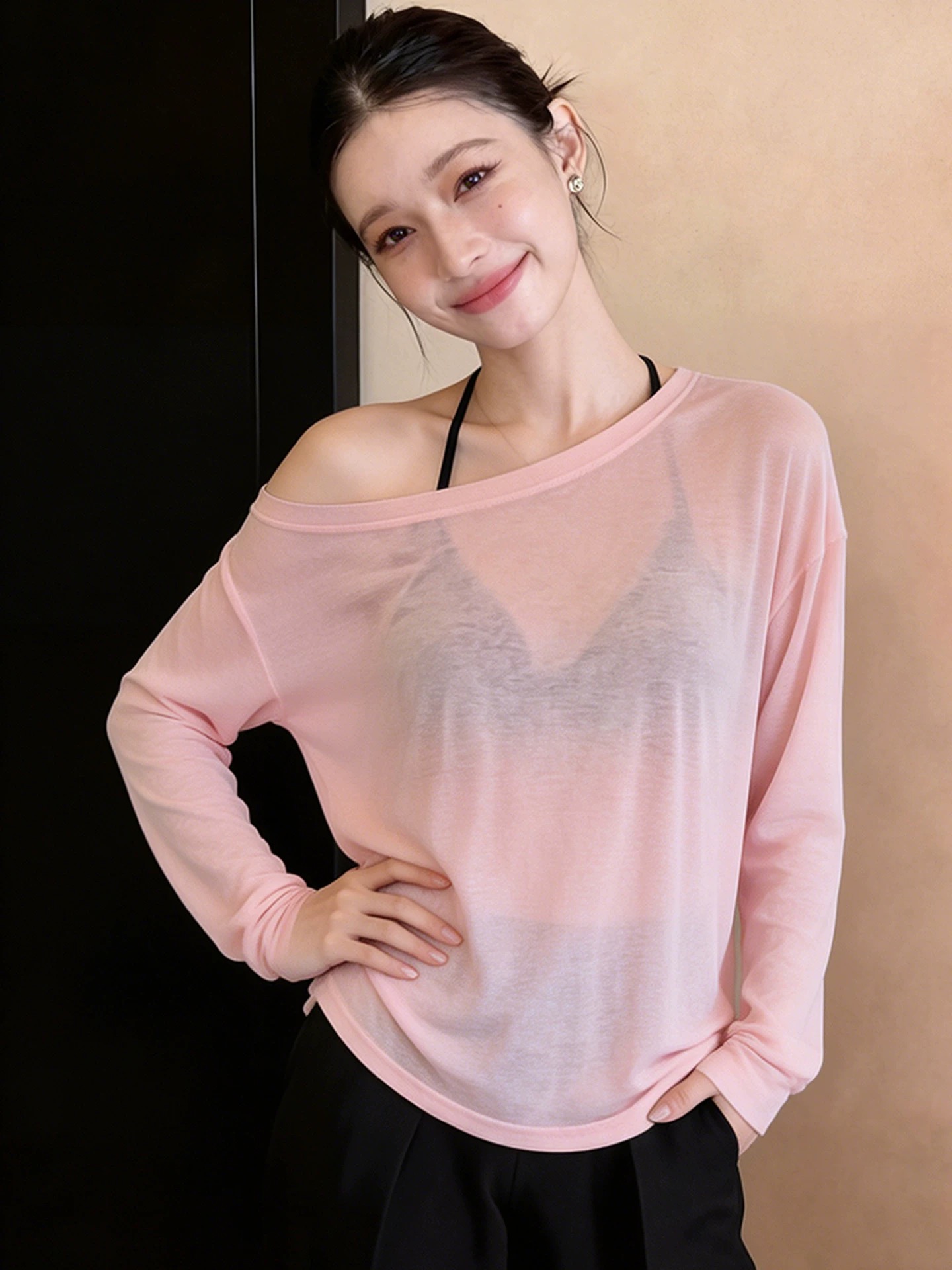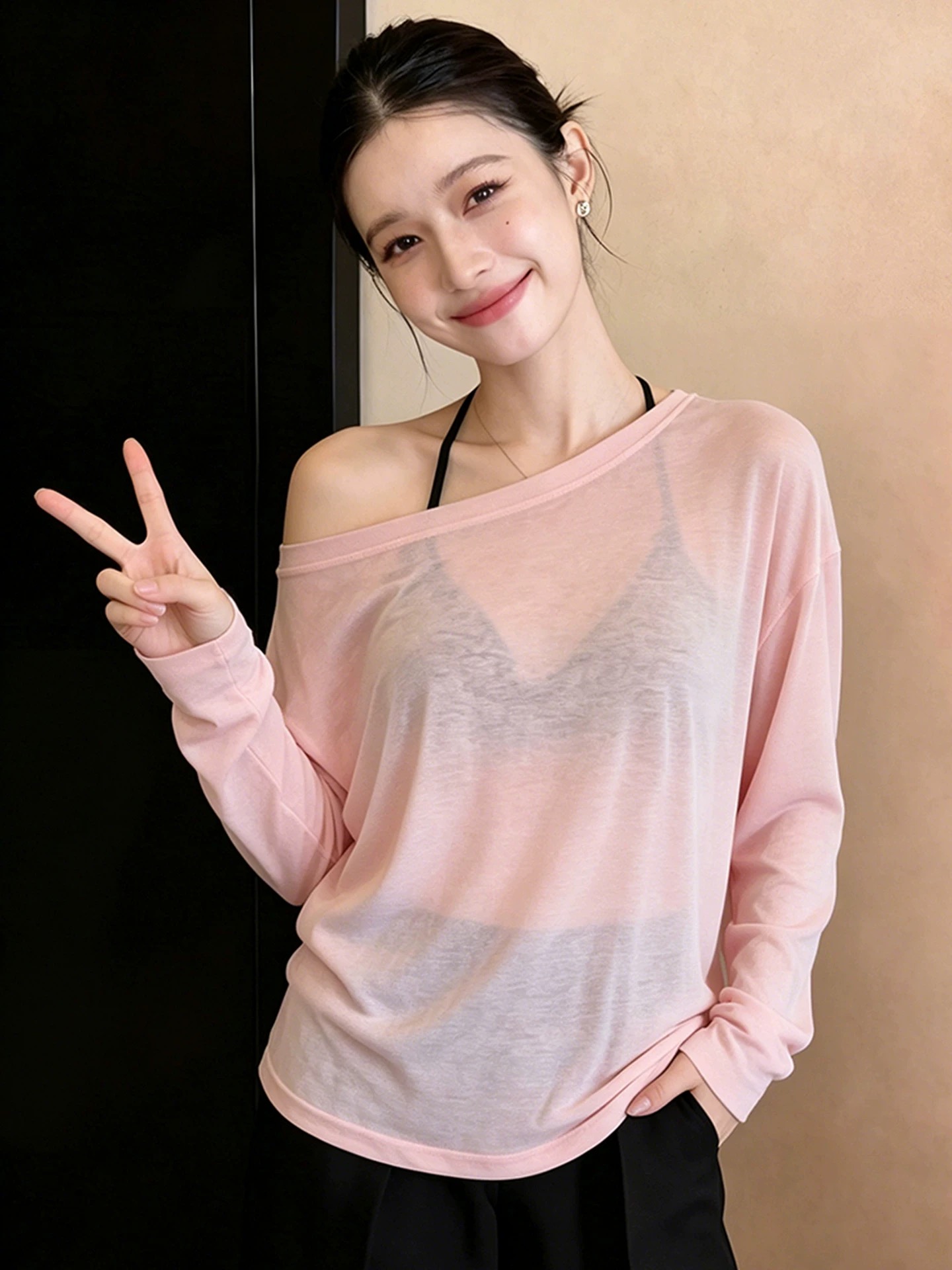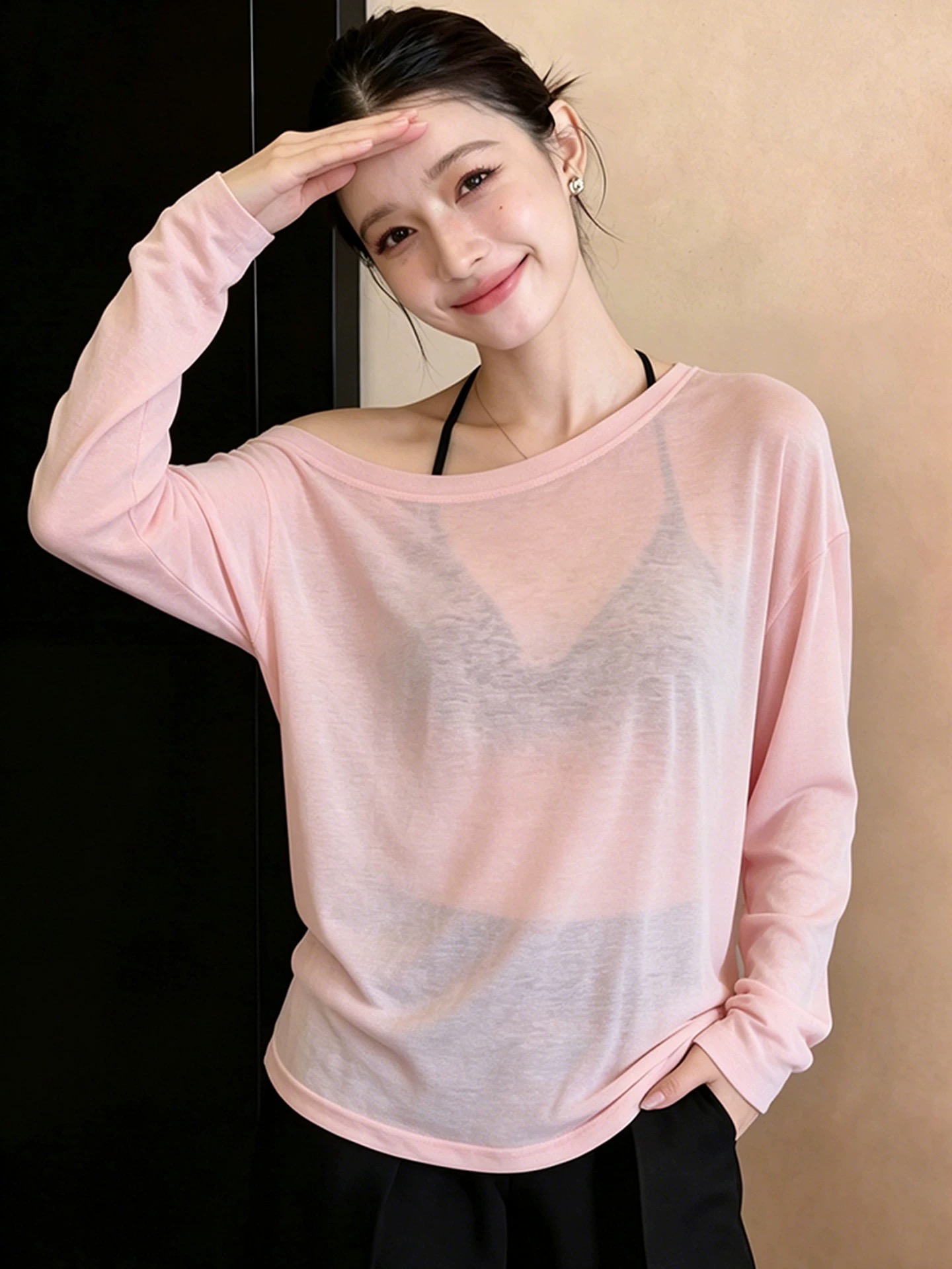 긴팔 티셔츠 여성 짧은 2026 여름 고유 한 디자인 센스 자외선 차단 Tulle 맨위 느긋한 바람 에어컨 블라우스