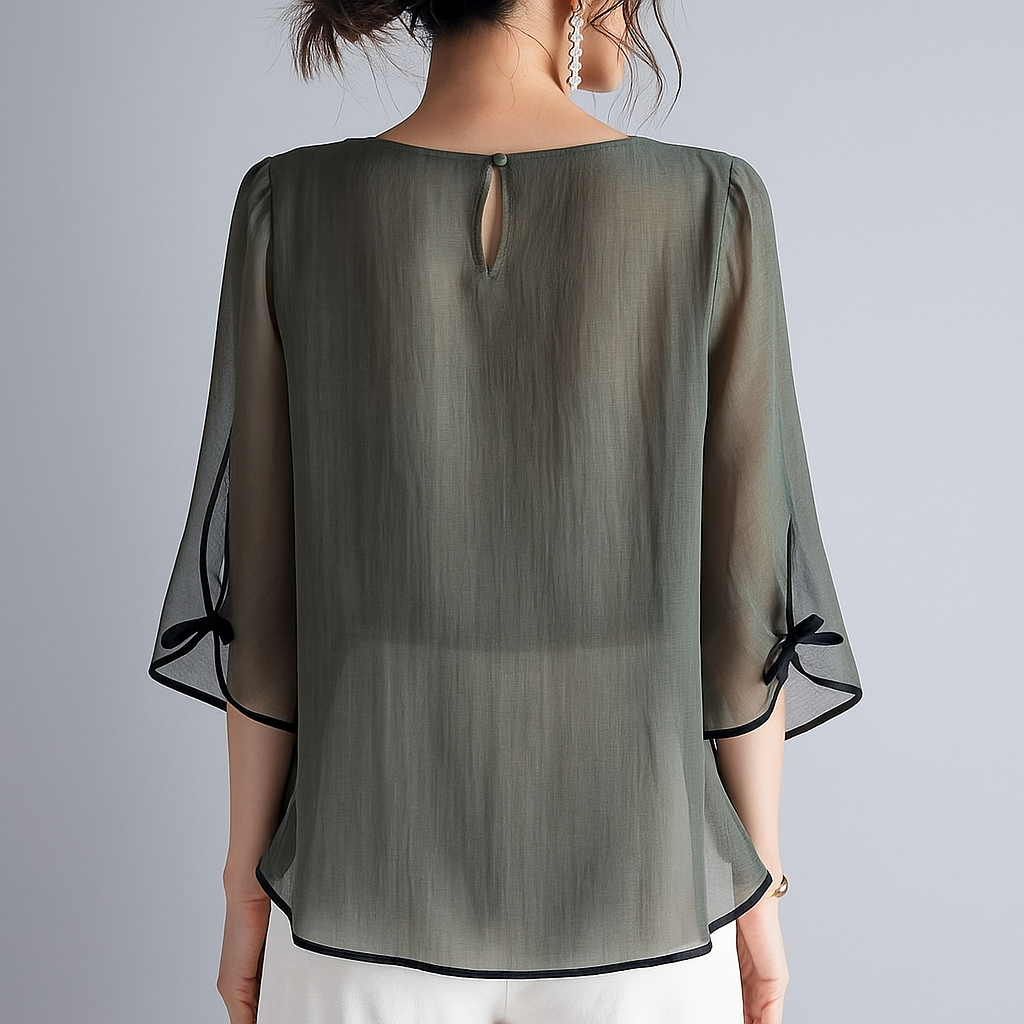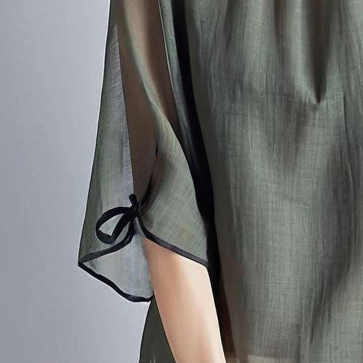 일본식 국경 간 대외 무역 여름 새로운 반팔 박쥐 셔츠 루즈핏 품격 슬림해 보이는 라운드 넥 캐주얼 다용도 쉬폰 블라우스
