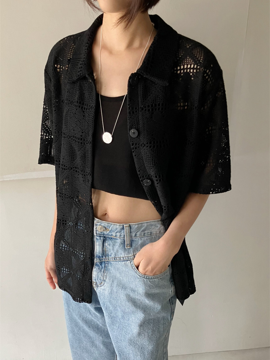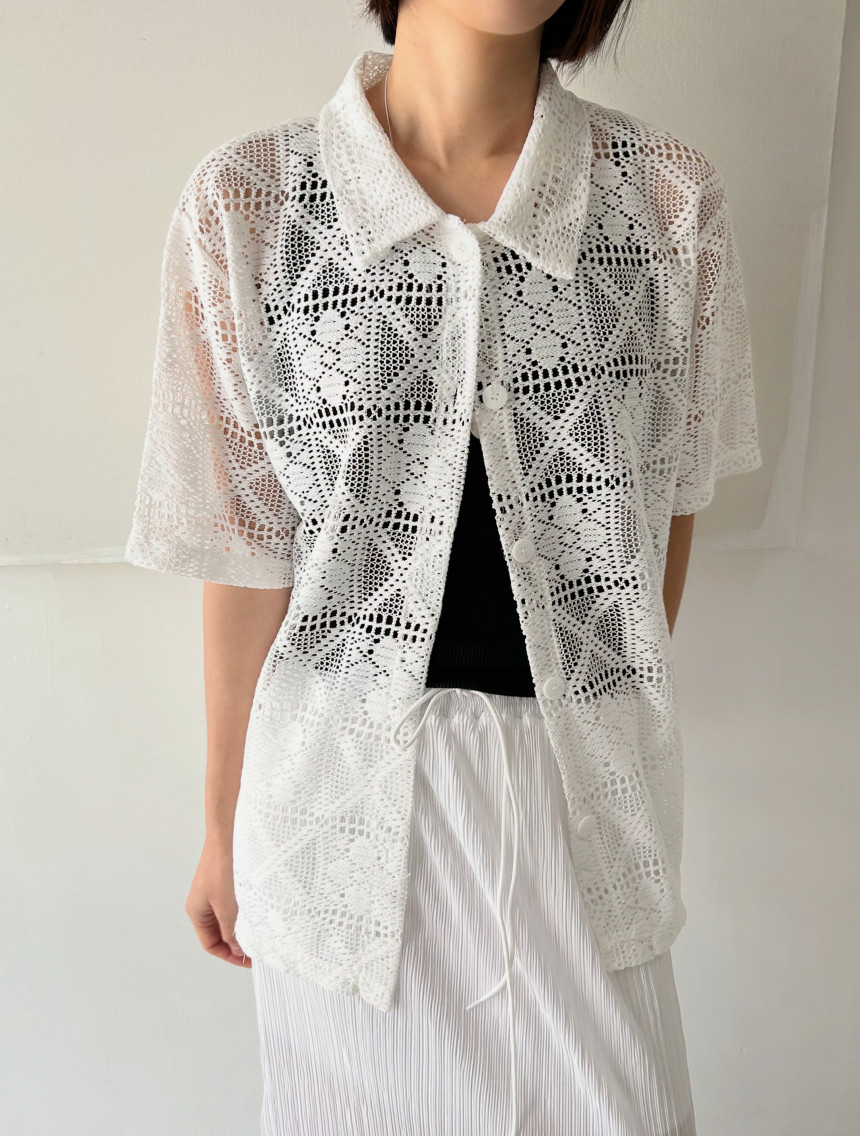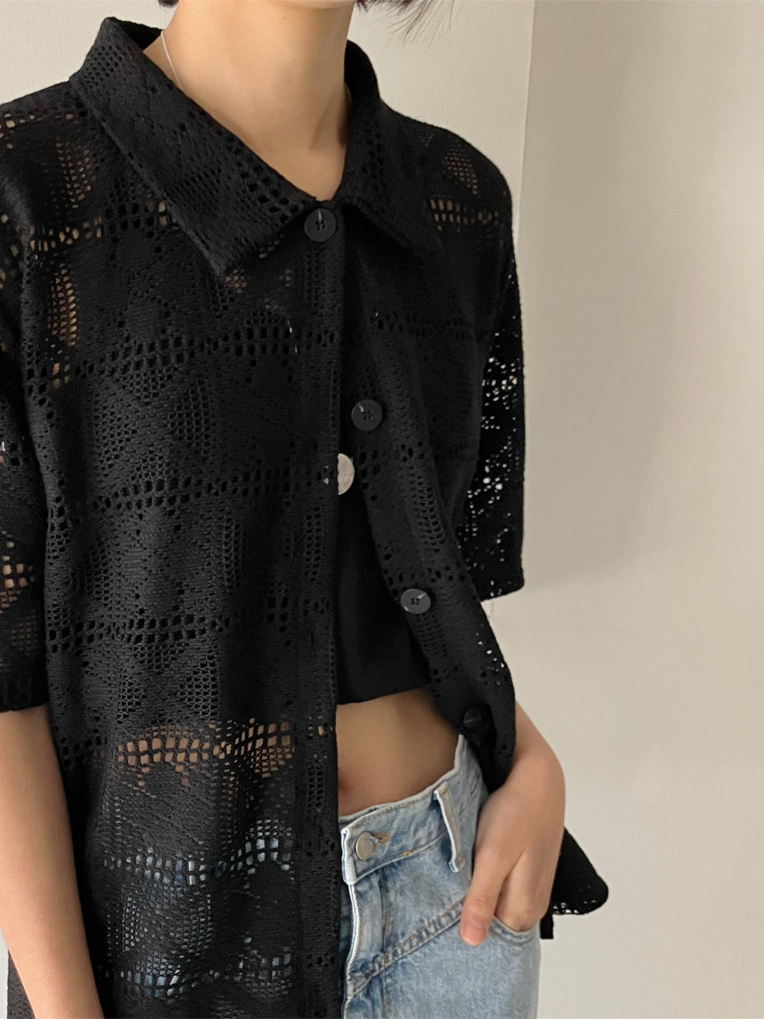 있음 선적 chic 한국 스타일 홀로우 아웃 자수 셔츠