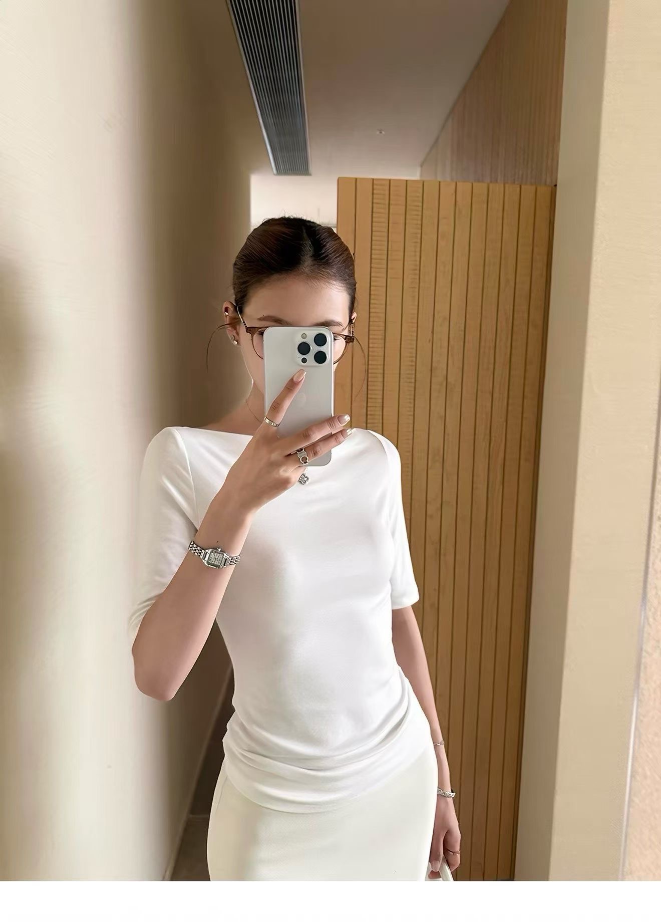 xzichic 중간 소매 t lady 센스 우아함 비스듬한 어깨 오프숄더 둘 착용 티셔츠 여성 여름 우아함 품격 맨위