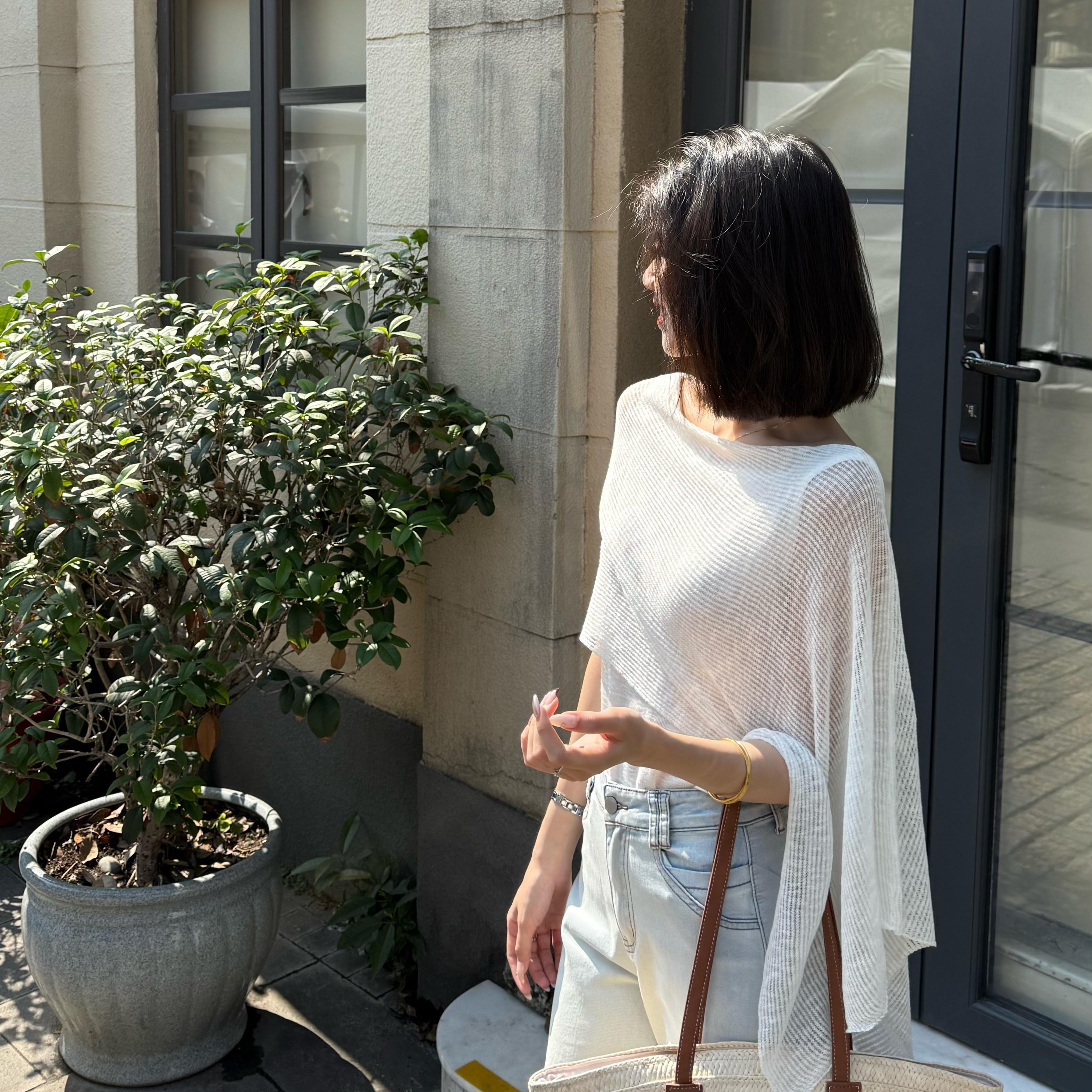 here 부드러운 안개 구름 제직 프랑스식 작은 대중 디자인 센스 홀로우 아웃 디자인 쇼트 스타일 니트 반팔 맨위
