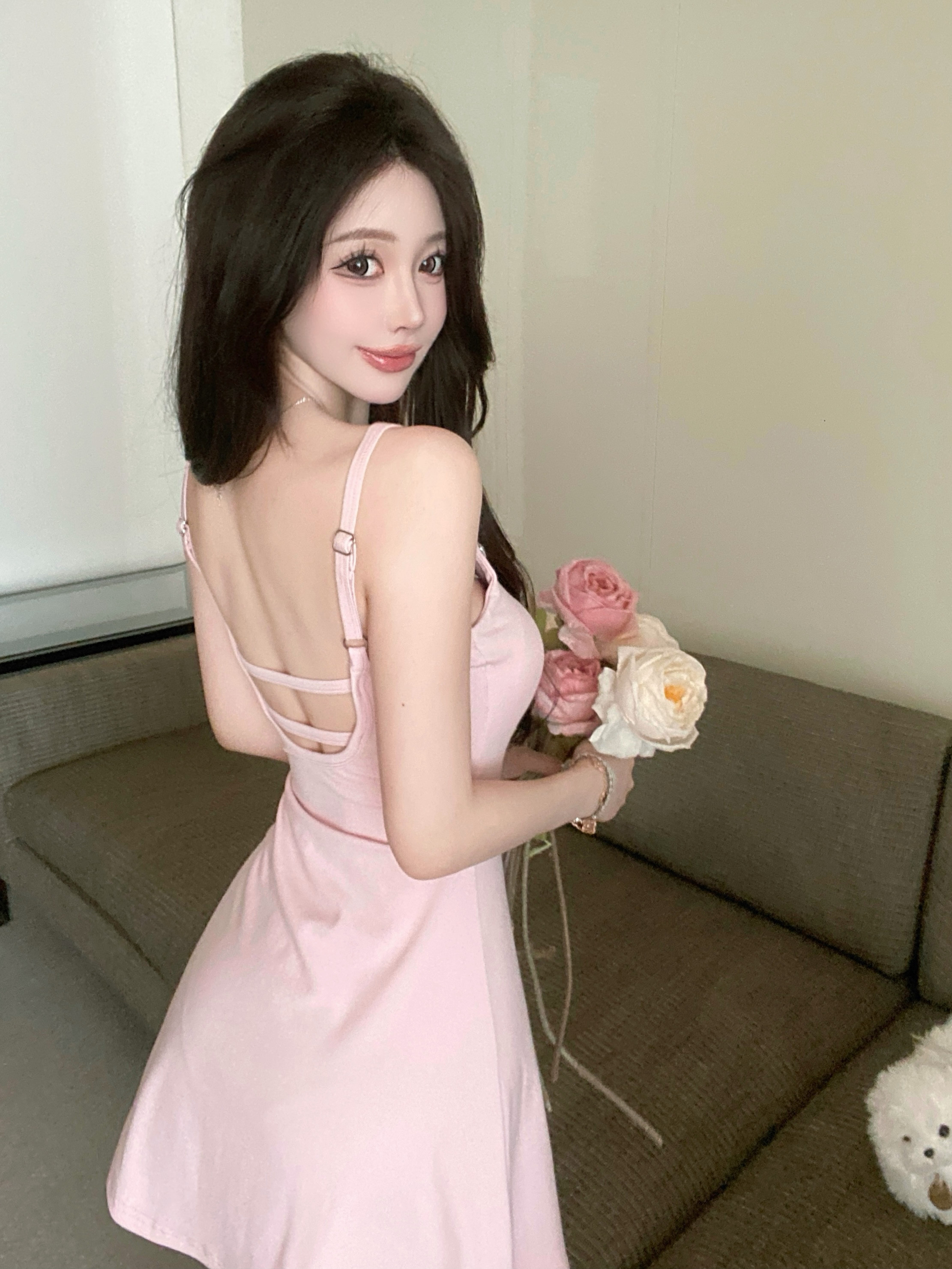 실사 고급 센스 품격 행침 목 슬립 여성 드레스 작은 섹시함 영 소녀 홀로우 아웃 백리스 외국 가스 롱 스커트