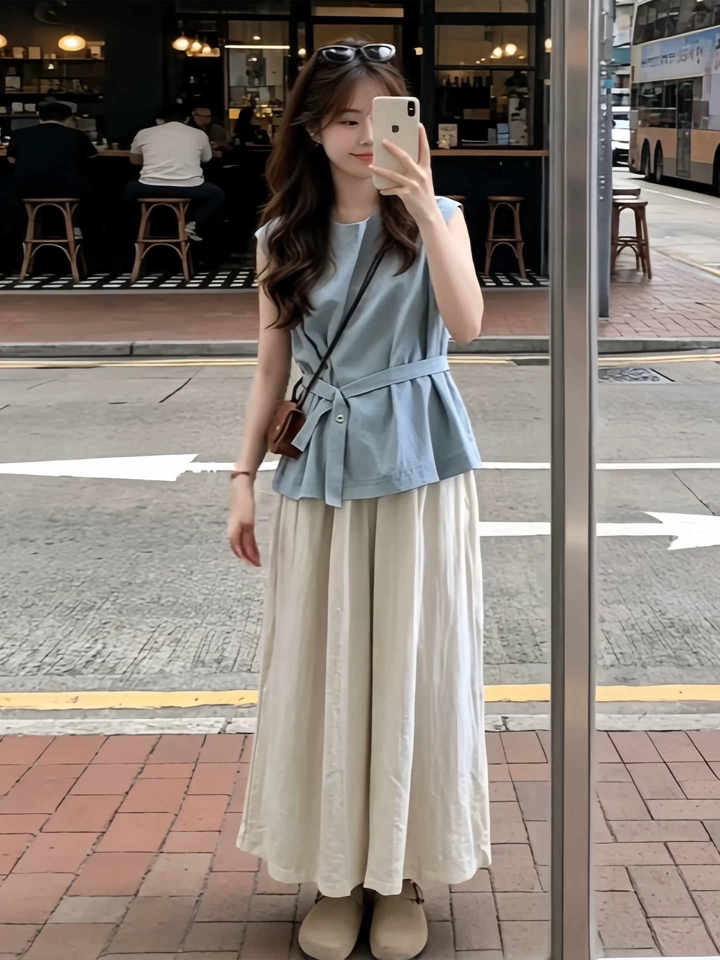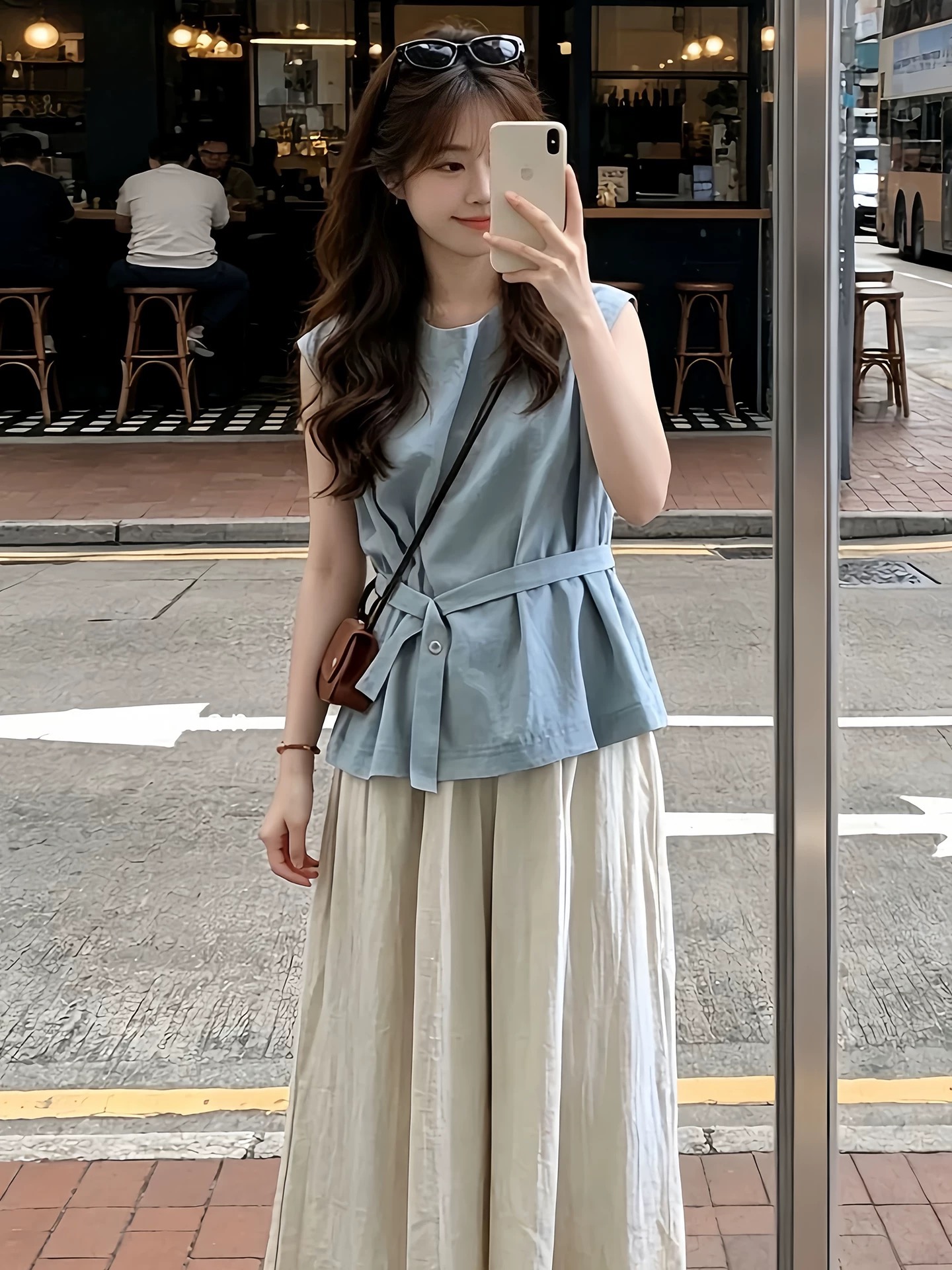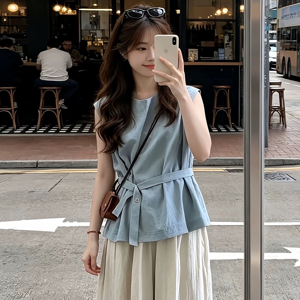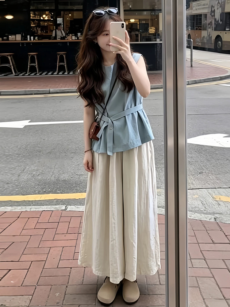 한 부서 그레이트 통해보기 가져 가라. 전체 집합 2026 새로운 파란색 조끼 맨위 여성 여름 와이드 레그 팬츠 투피스 슈트