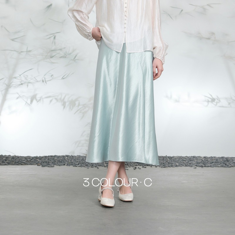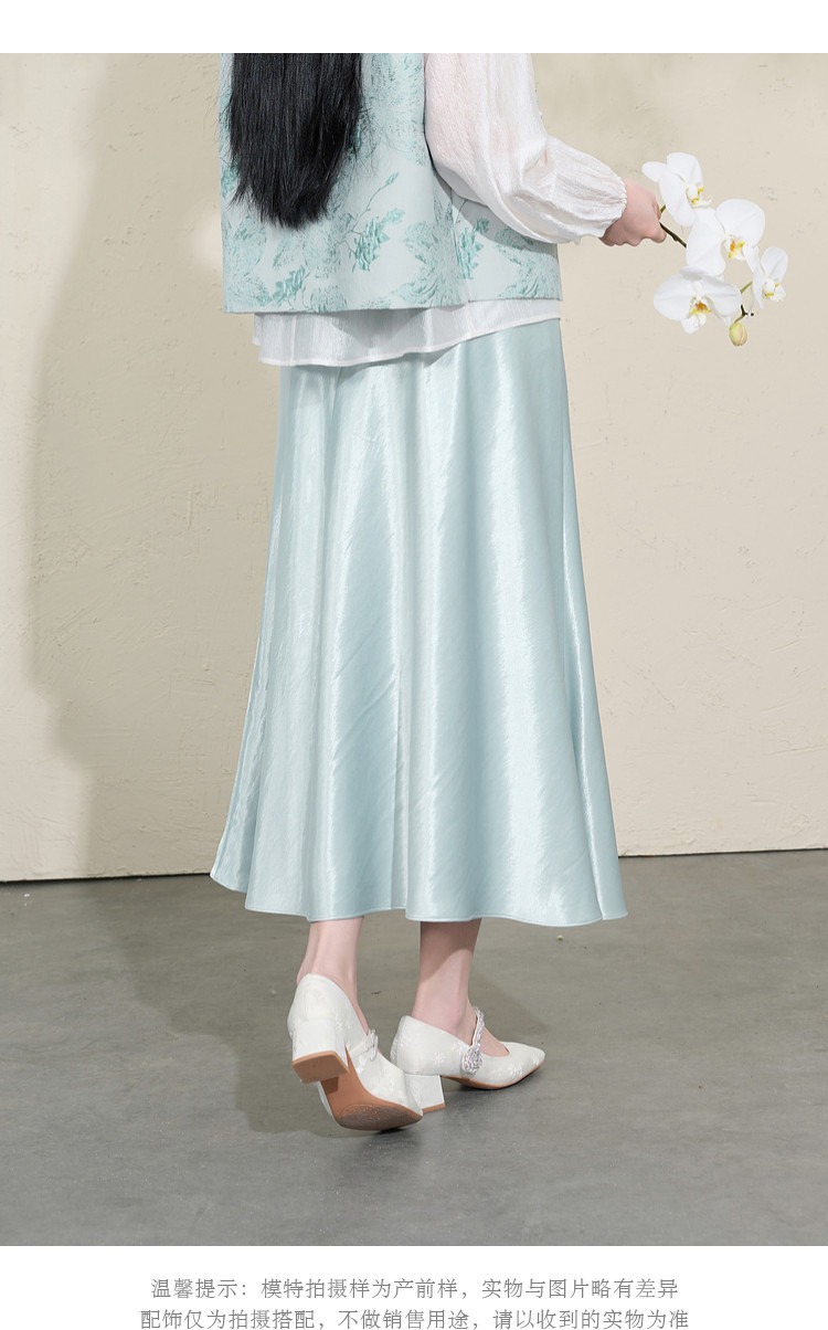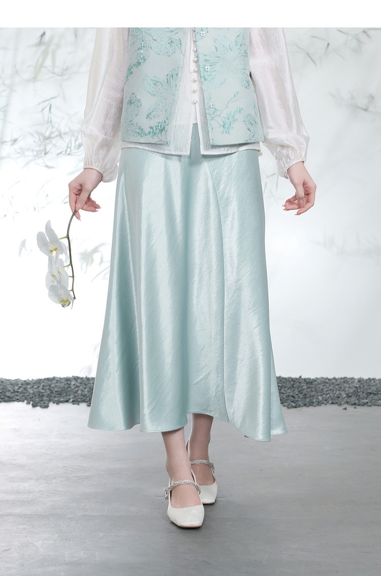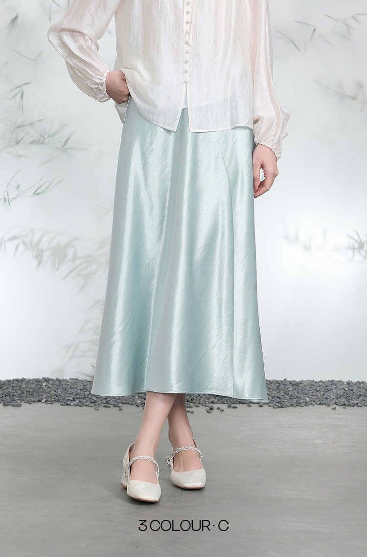 2026 봄 여름 새로운 비스듬한 자르다 반신 스커트 새틴 A라인 스커트 인어 꼬리 롱 스커트 여성