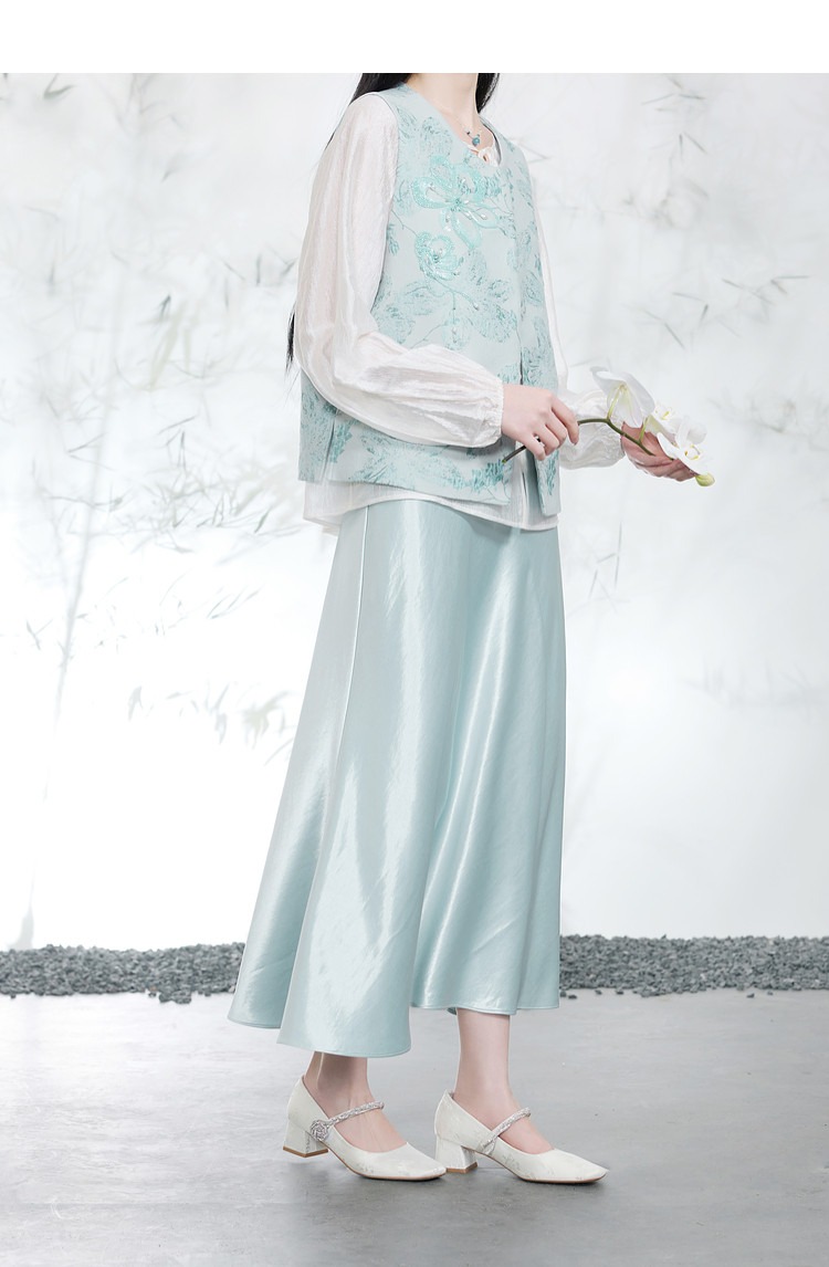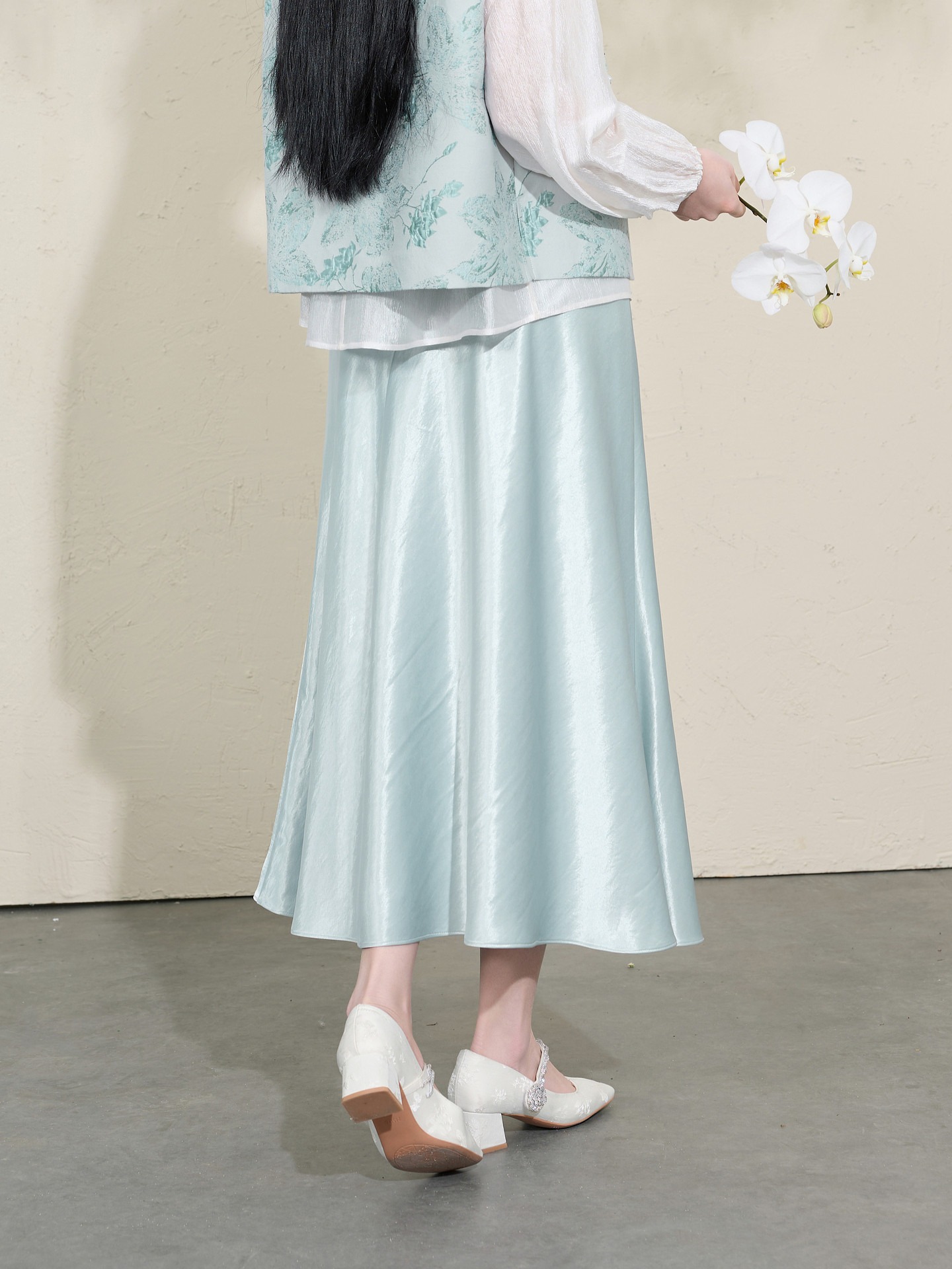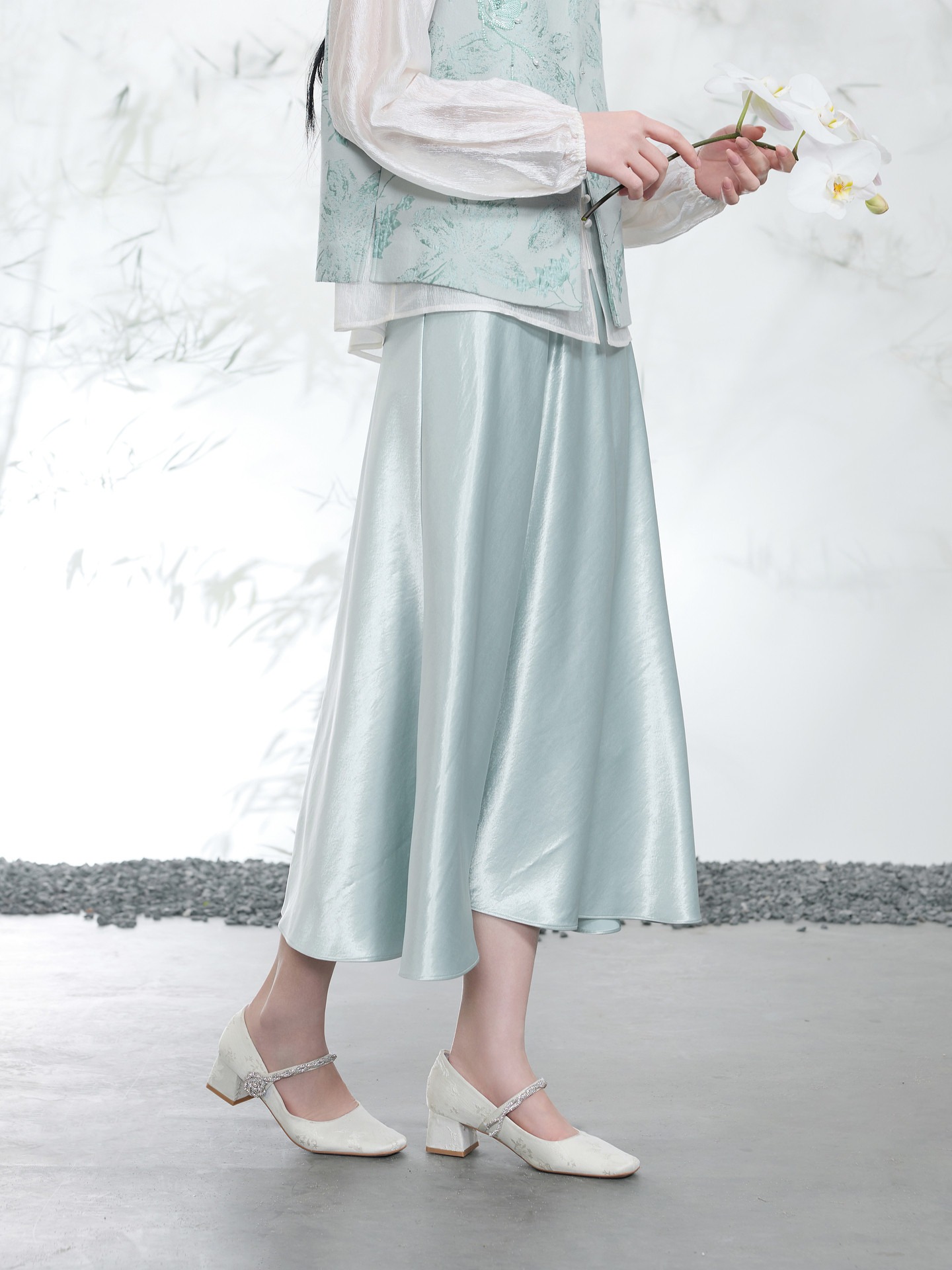 2026 봄 여름 새로운 비스듬한 자르다 반신 스커트 새틴 A라인 스커트 인어 꼬리 롱 스커트 여성
