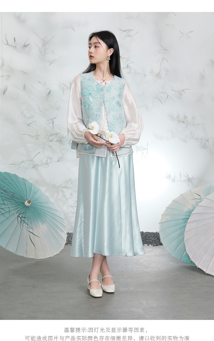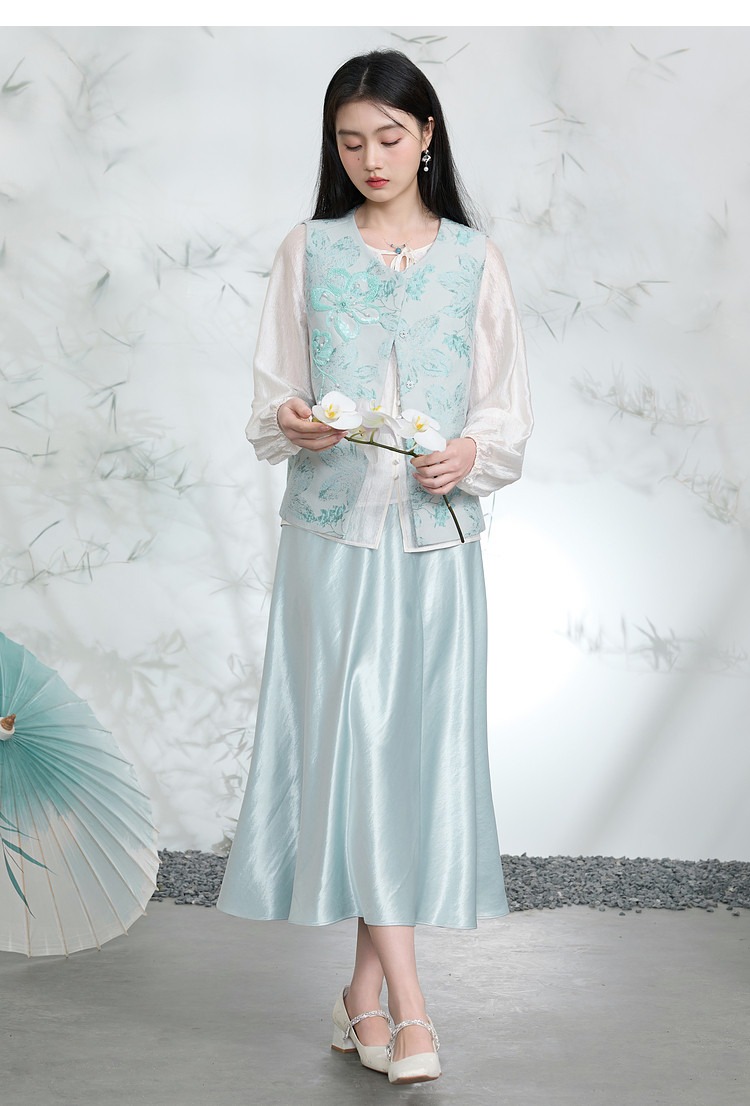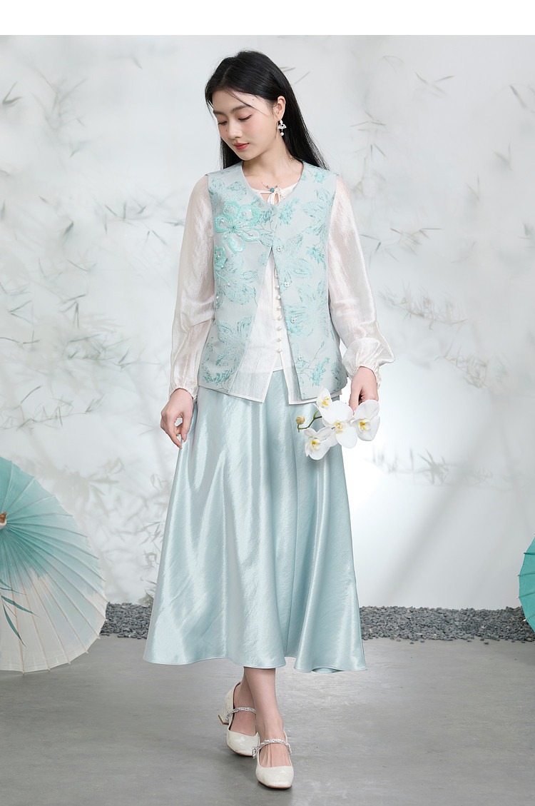 ng dayu 황혼 특히 플러스 이익 직접 만든 페이크 레이어드 레이스 자외선 차단 셔츠 망사 체크무늬 반신 롱 스커트