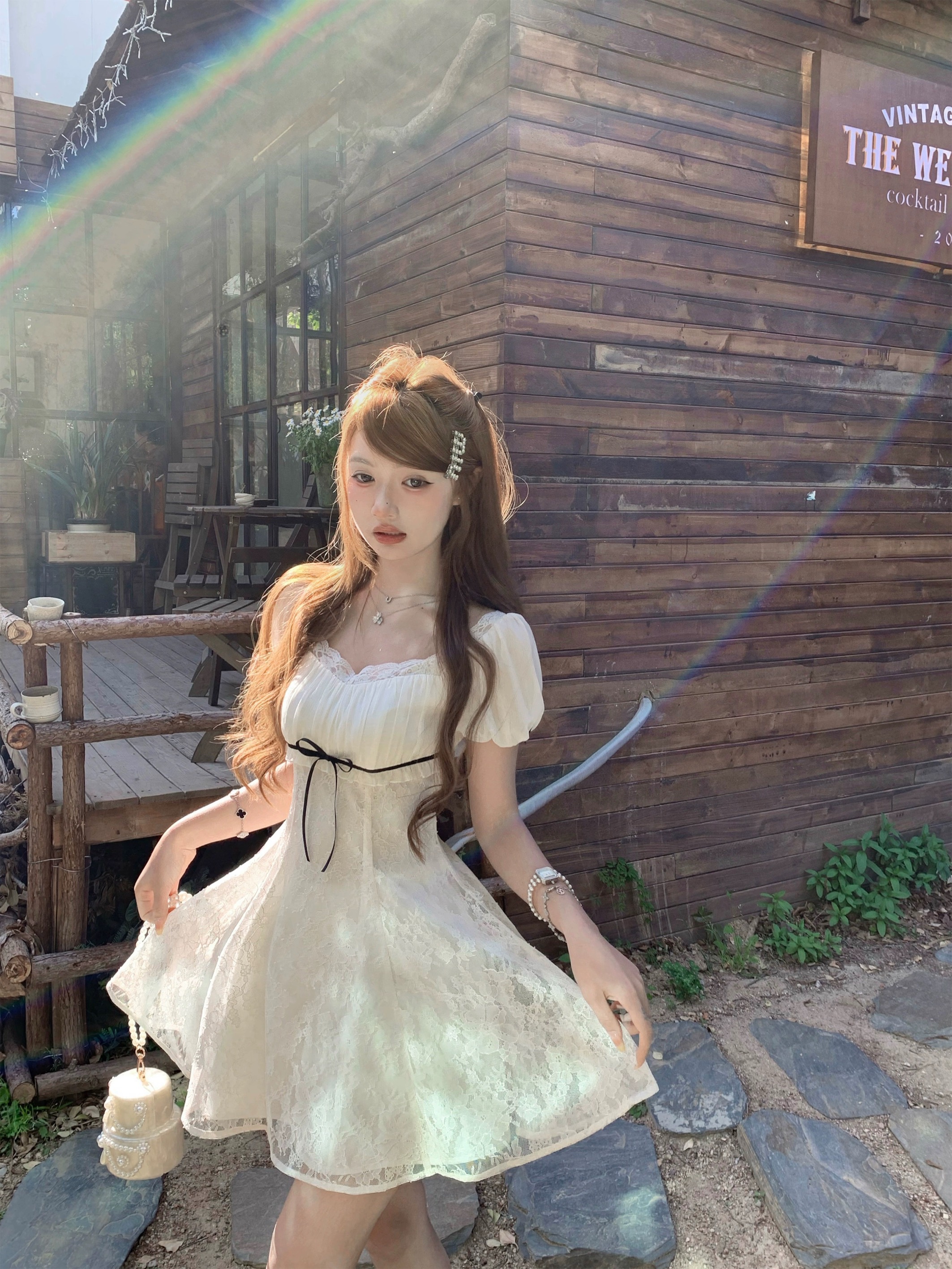 kubiliv 봄날 꿈 나라 프랑스식 꽃무늬 레이스업 허리 수축 슬립 미니 스커트 순수한 욕망 분위기 센스 드레스
