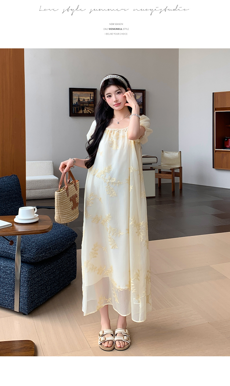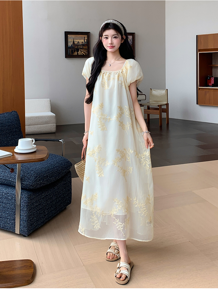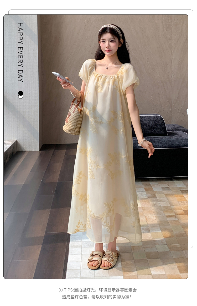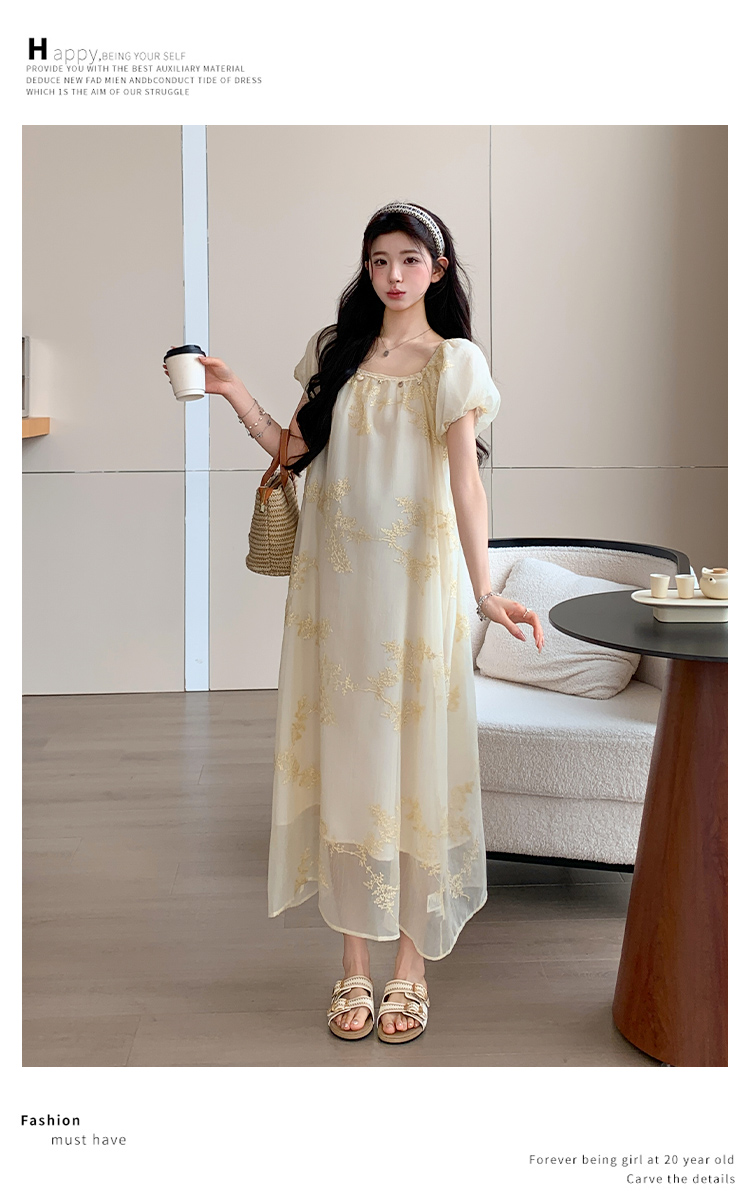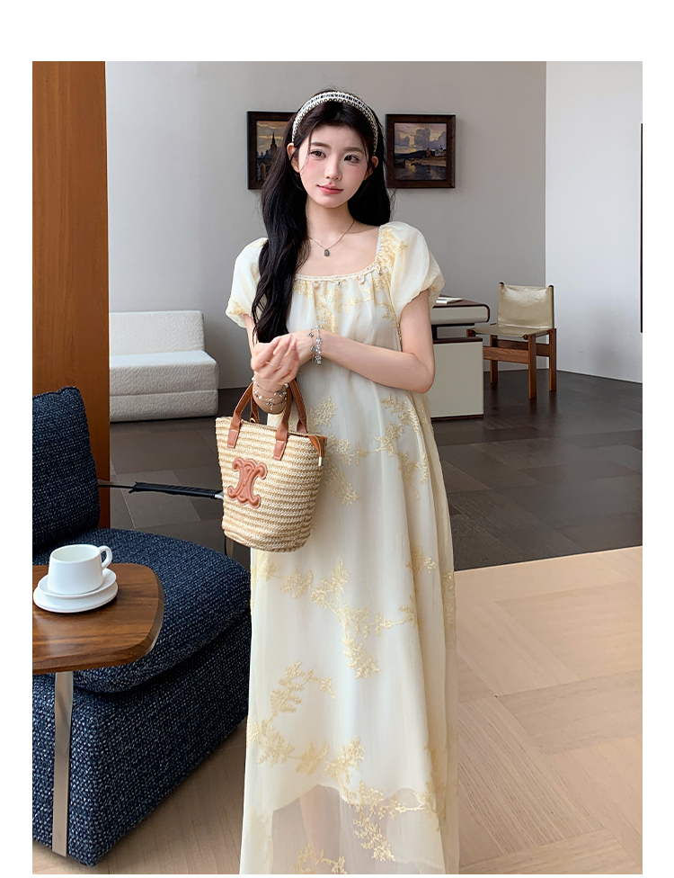 지금 2026 여름 프랑스식 몸매 가꾸기 롱 코트 반팔 드레스