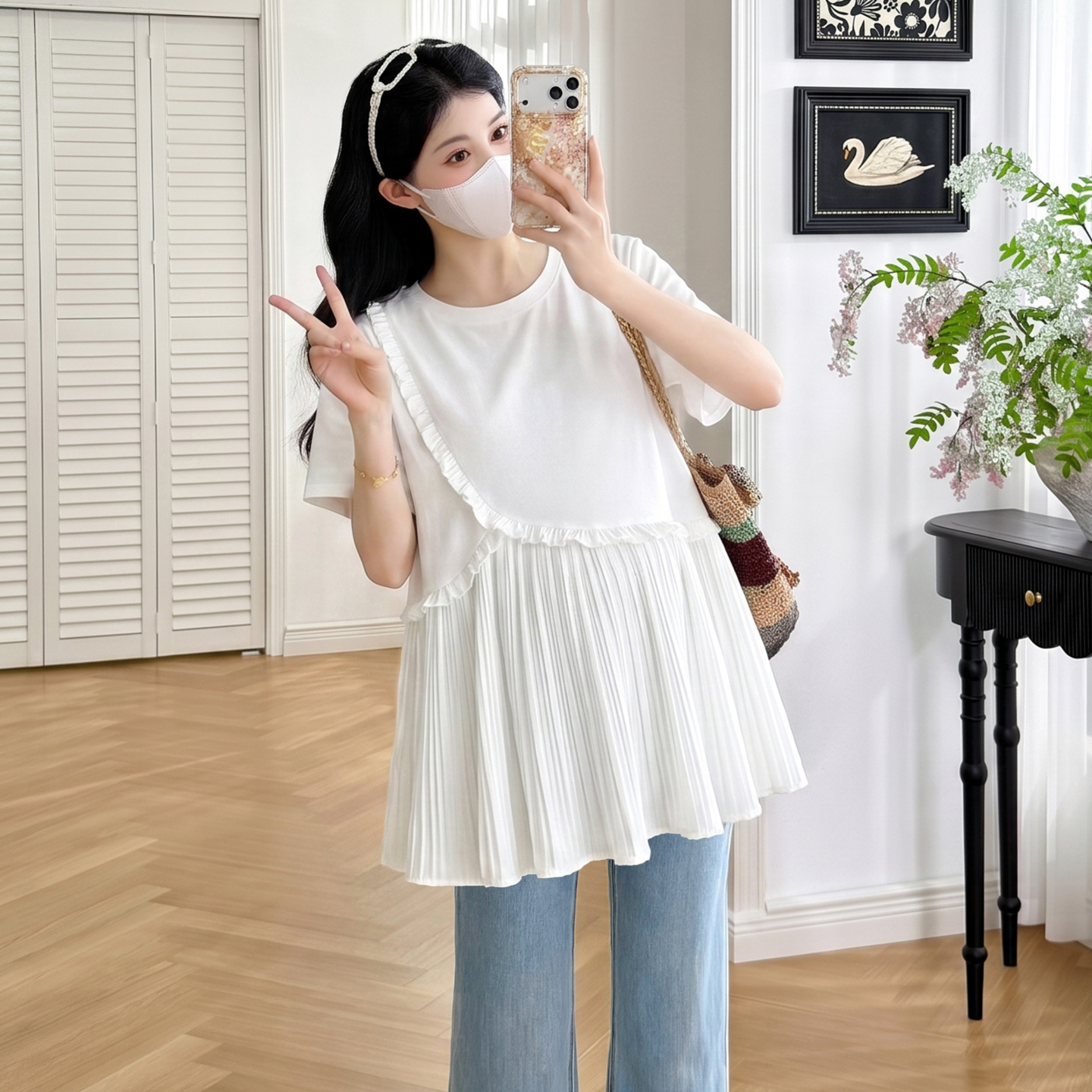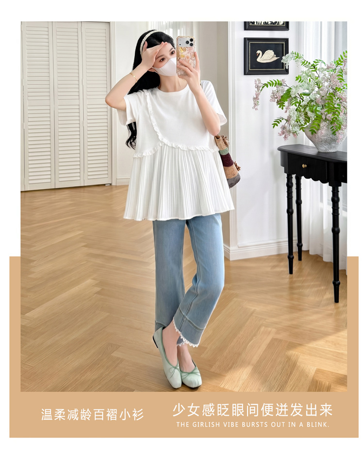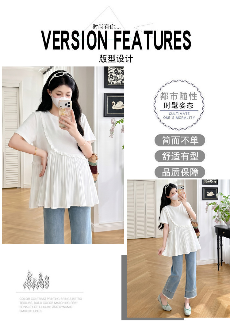 실사 새로운 출산 착용 여름 드레스 패션 미니멀리즘 다용도 루즈핏 슬림해 보이는 연령 감소 캐주얼 디자인 센스 트임 맨위