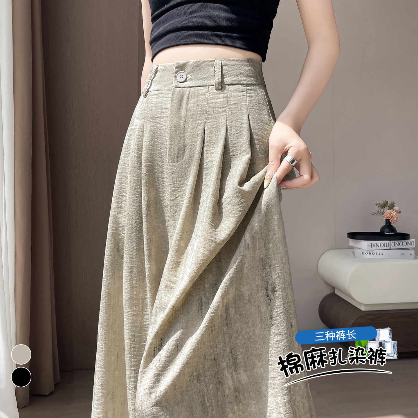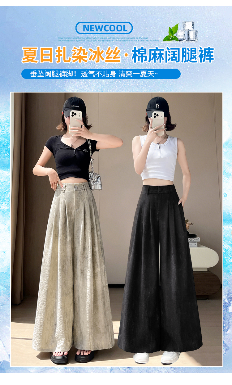 실사 얼음 실크 아마 홀치기 염색 와이드 레깅스 바지 2026 여름 하이웨이스트 면 린넨 정장 바지 캐주얼 스트레이트 바닥 청소 바지