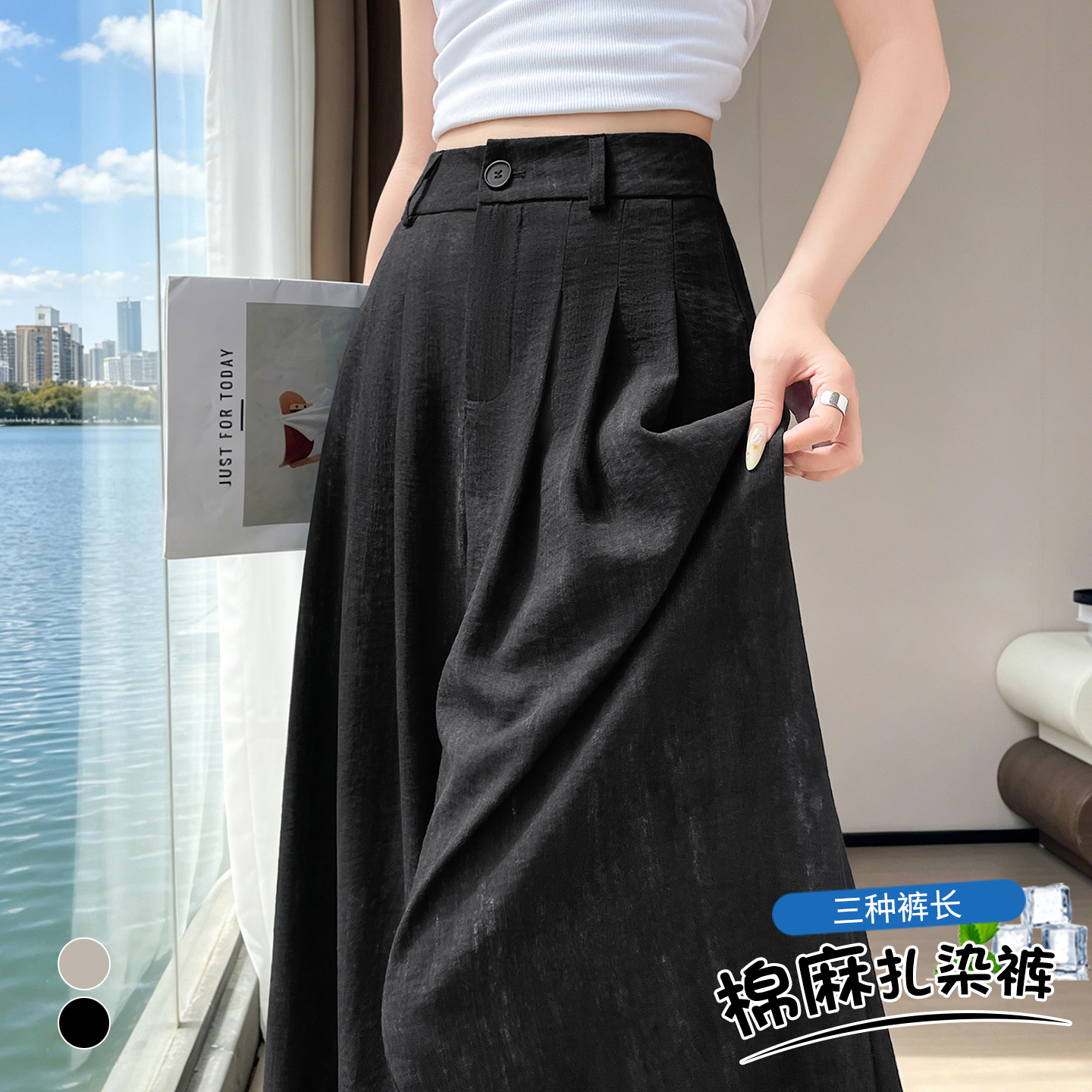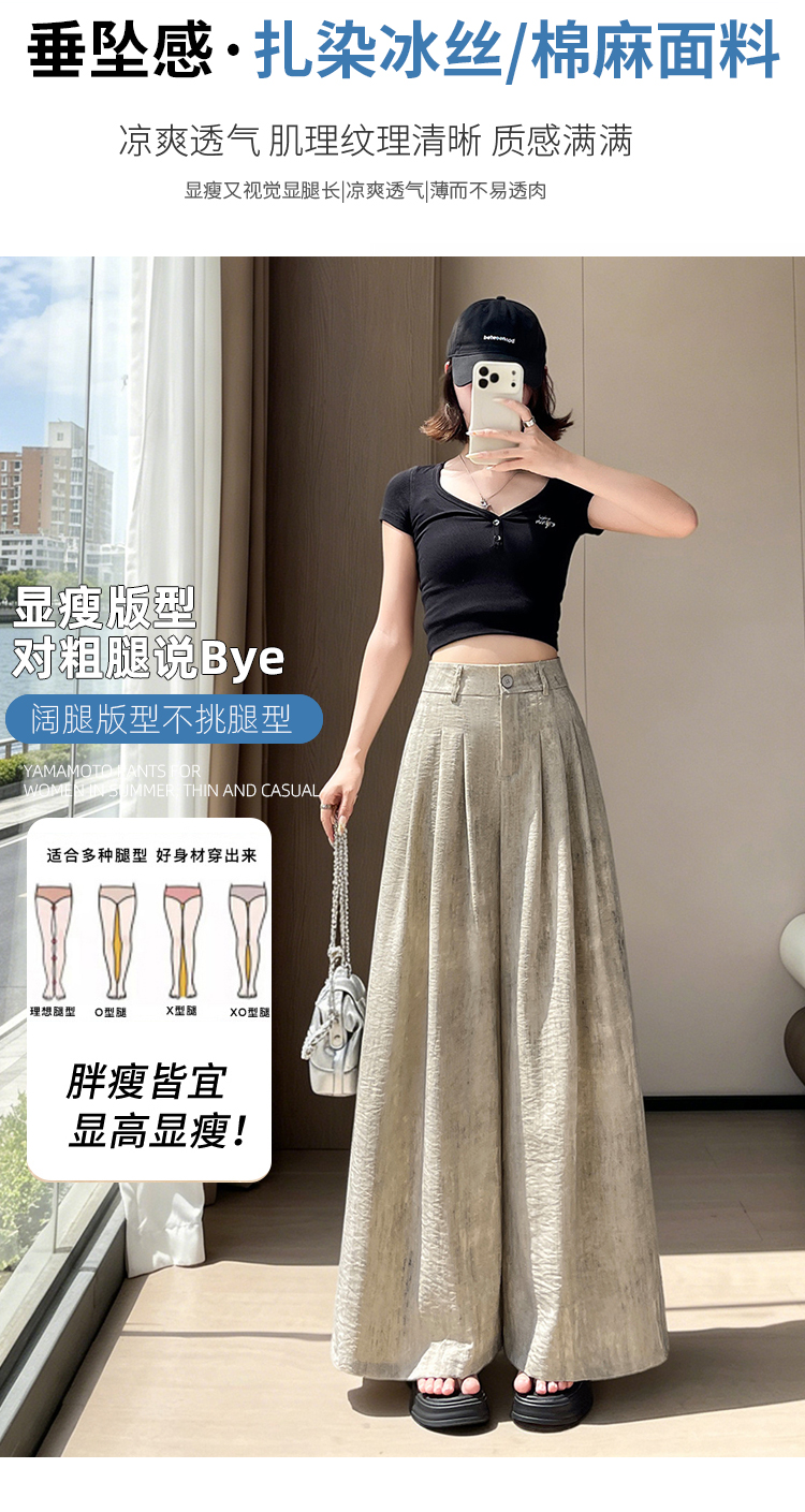 실사 얼음 실크 아마 정장 와이드 레깅스 바지 2026 여름 하이웨이스트 도루 센스 면 린넨 캐주얼 스트레이트 야마모토 바지