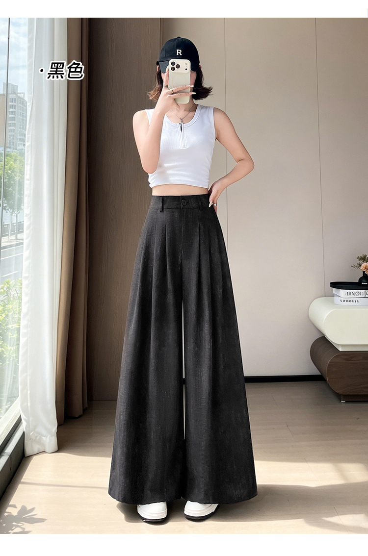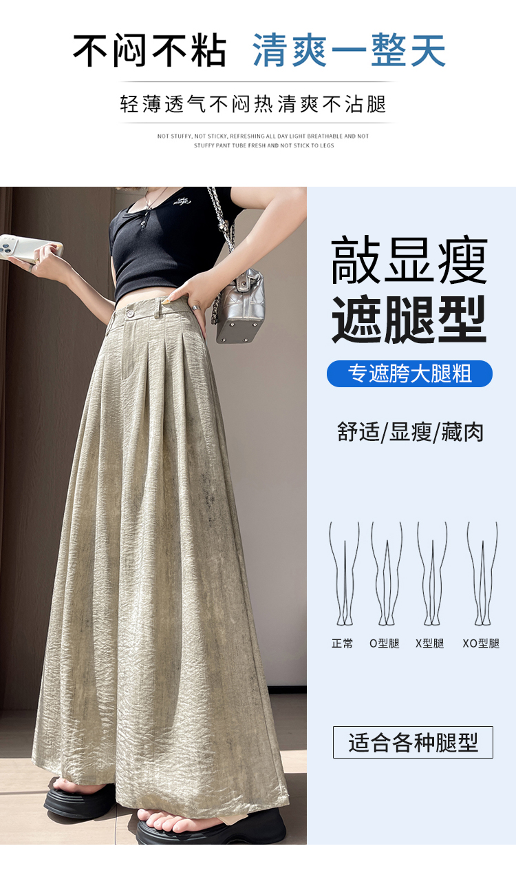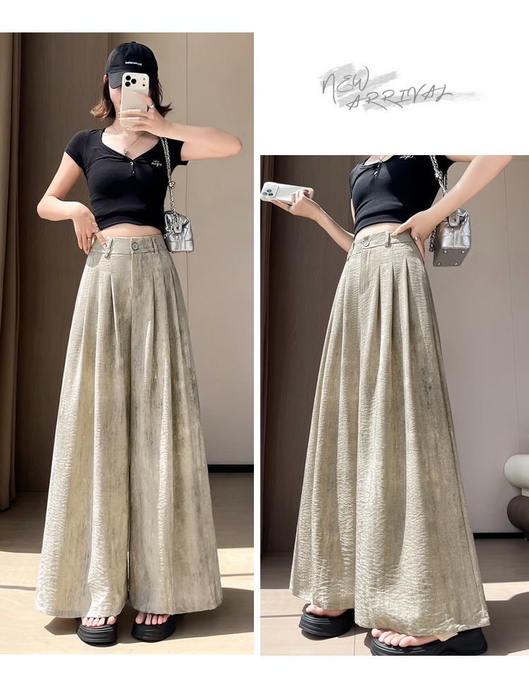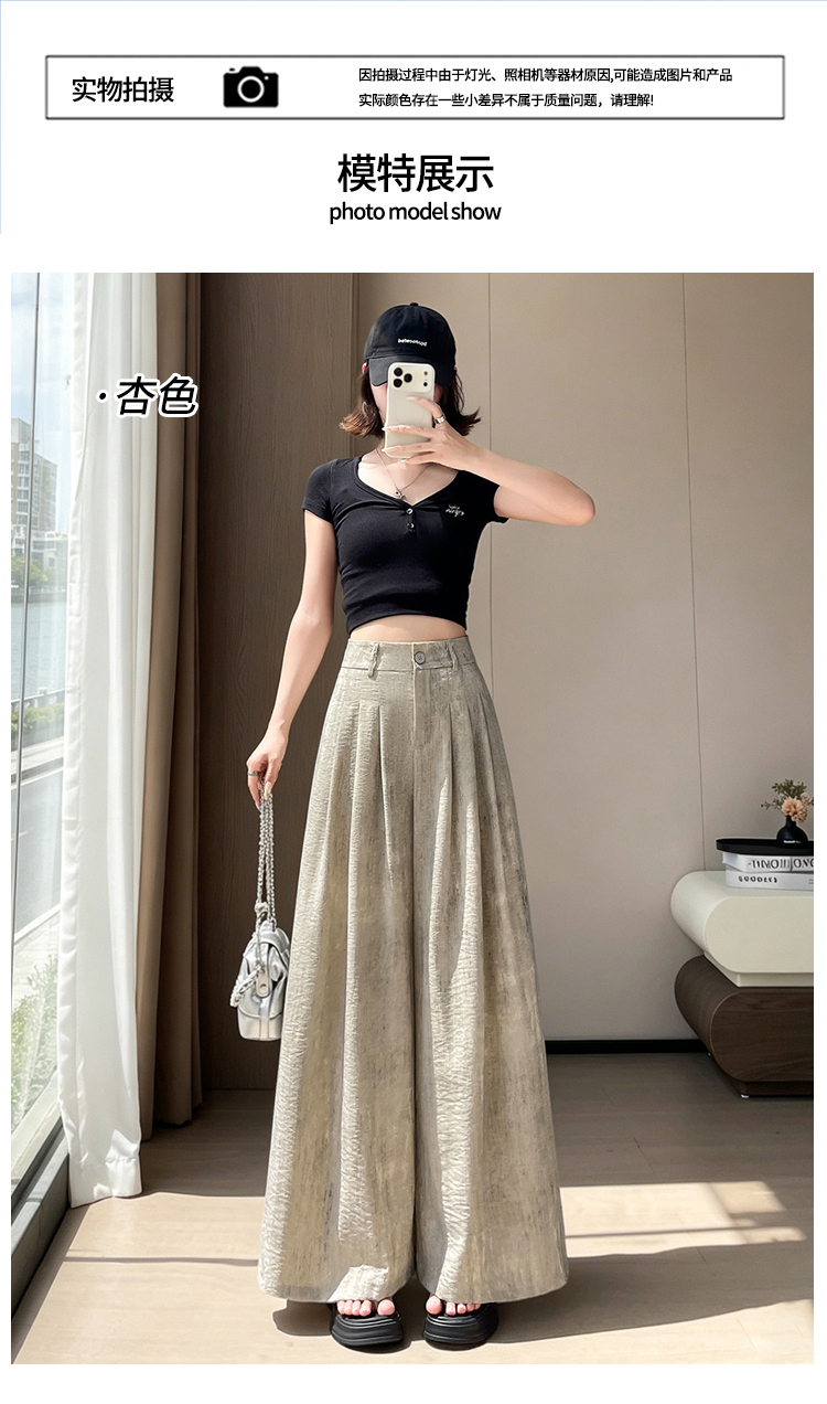 실사 아세트산 새틴 얼음 실크 정장 와이드 레깅스 바지 여름 하이웨이스트 루즈핏 도루 센스 캐주얼 스트레이트 바닥 청소 바지