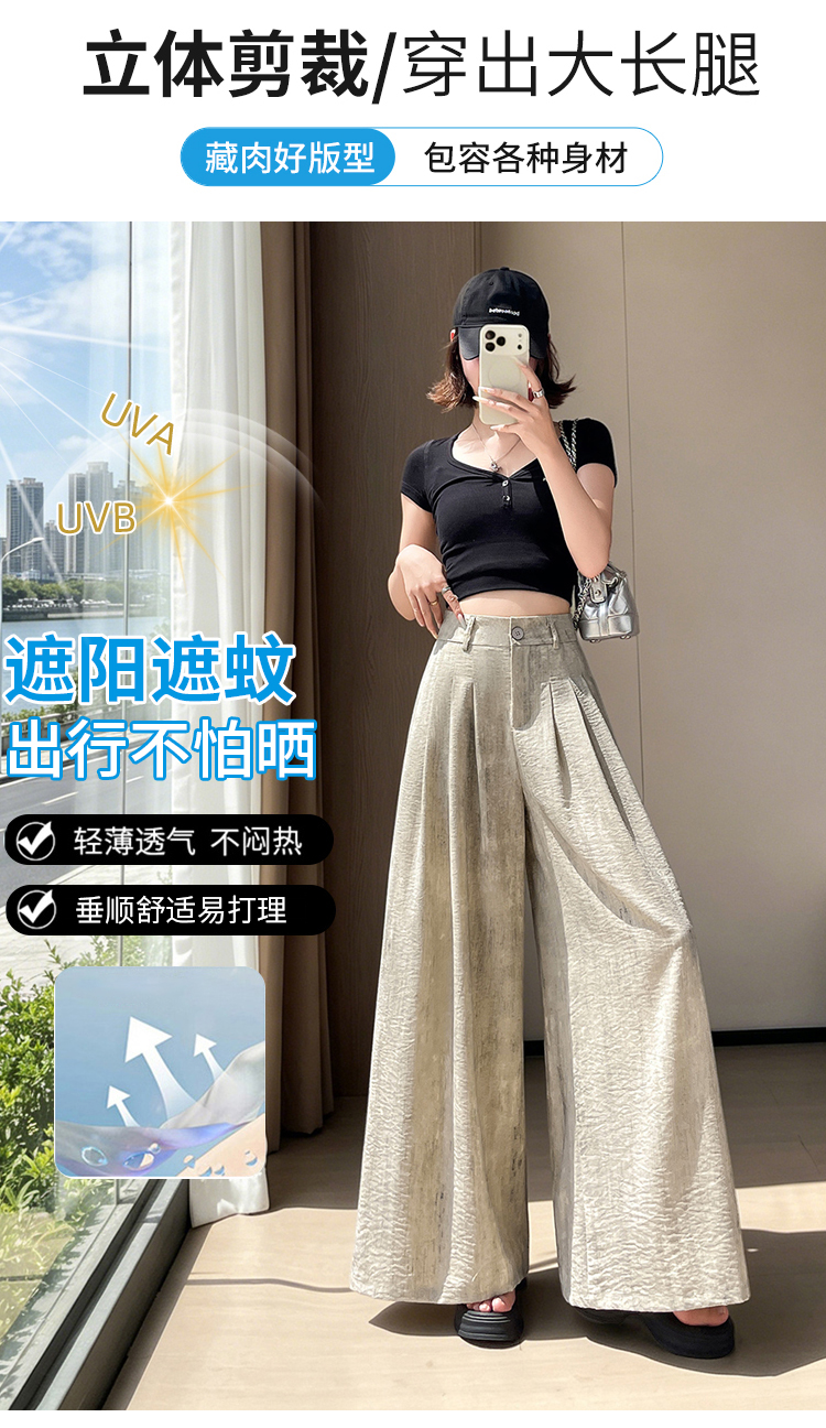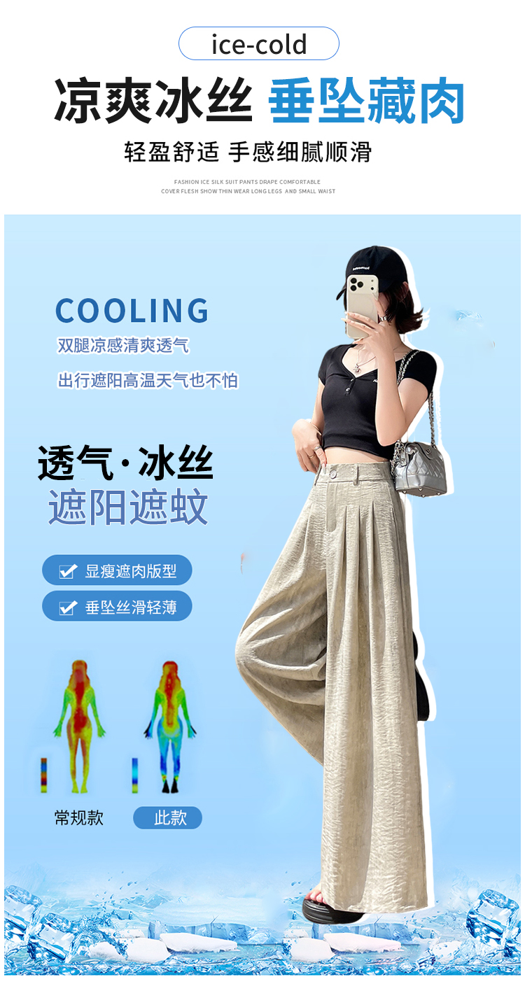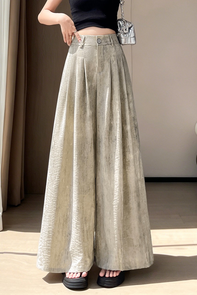 실사 아세트산 새틴 얼음 실크 정장 와이드 레깅스 바지 여름 하이웨이스트 루즈핏 도루 센스 캐주얼 스트레이트 바닥 청소 바지