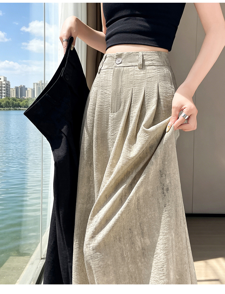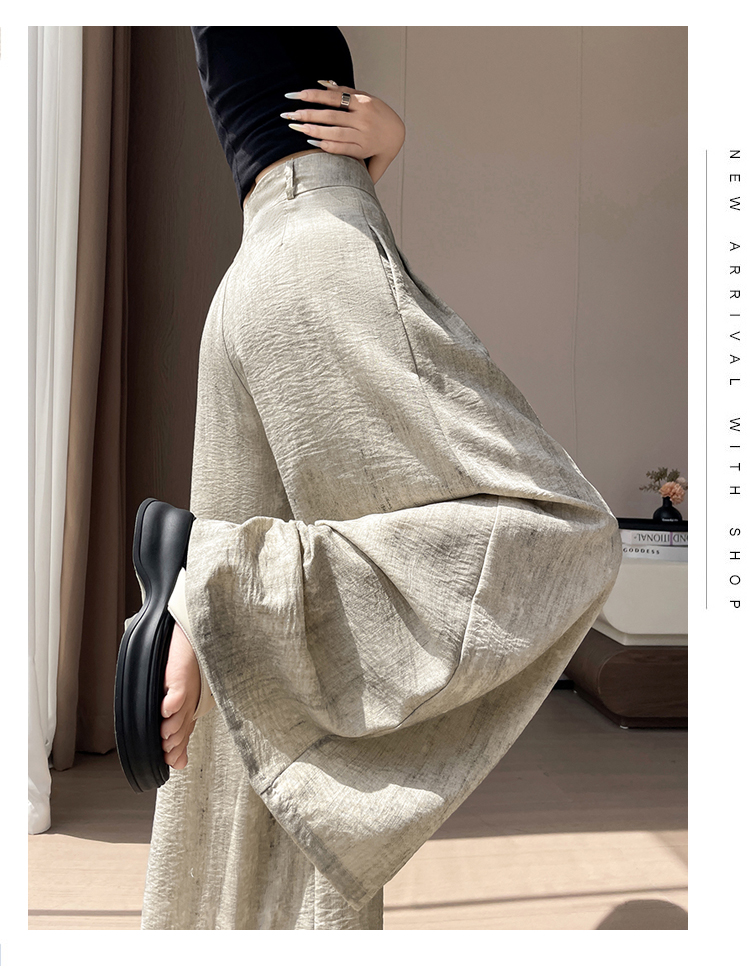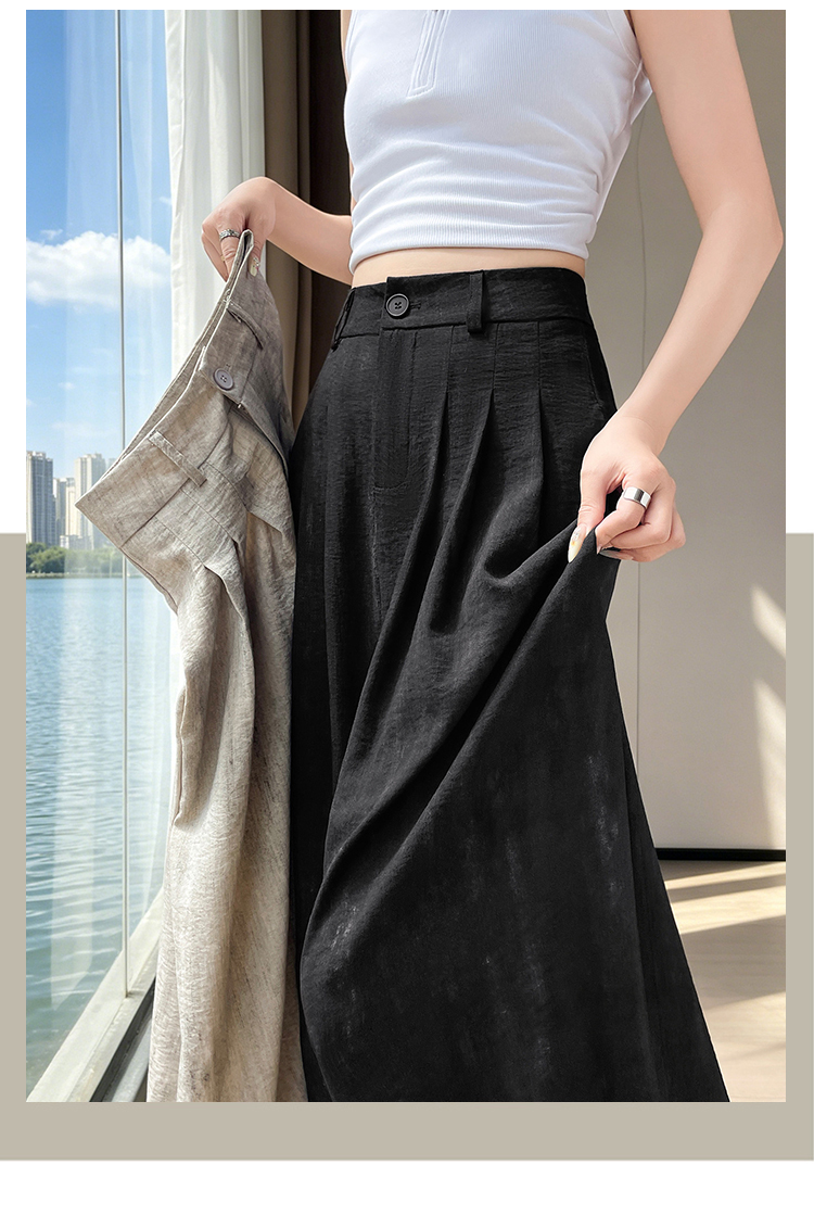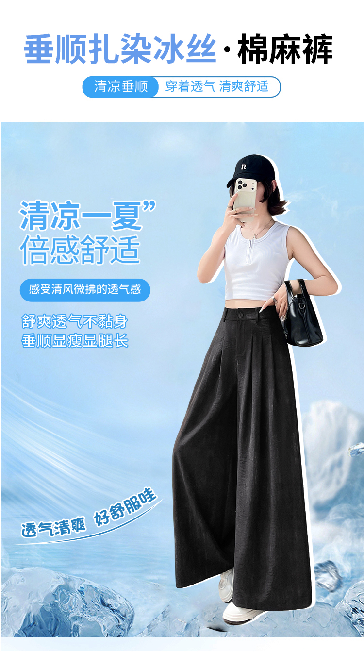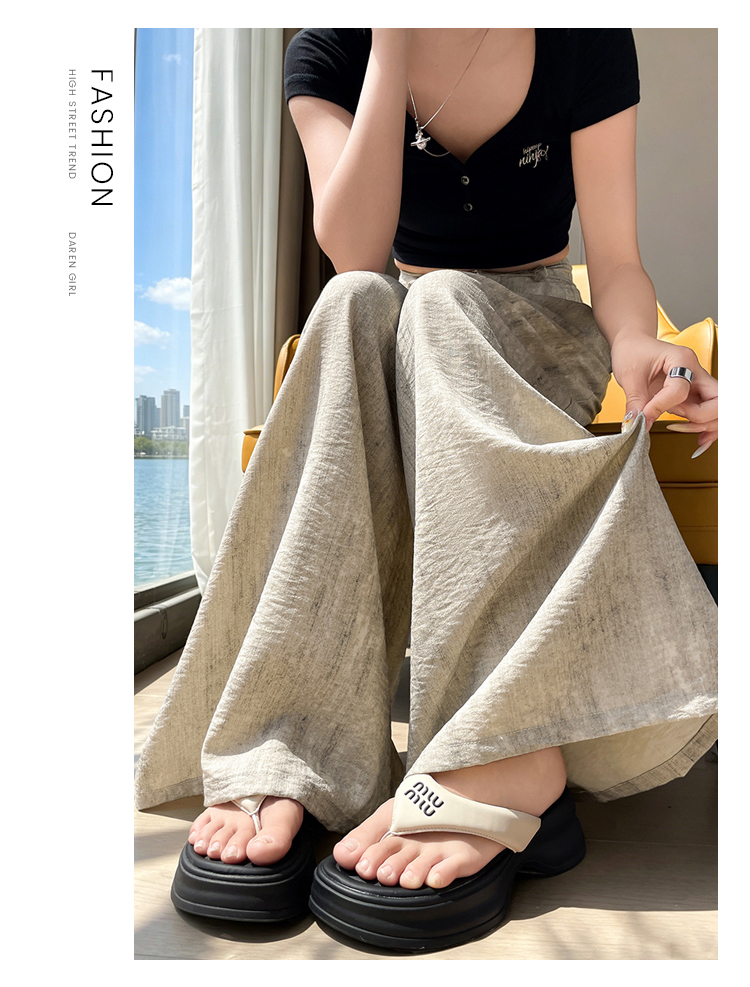 실사 얼음 실크 면 린넨 정장 와이드 레깅스 바지 여름 도루 하이웨이스트 루즈핏 느긋한 바람 캐주얼 스트레이트 바닥 청소 바지