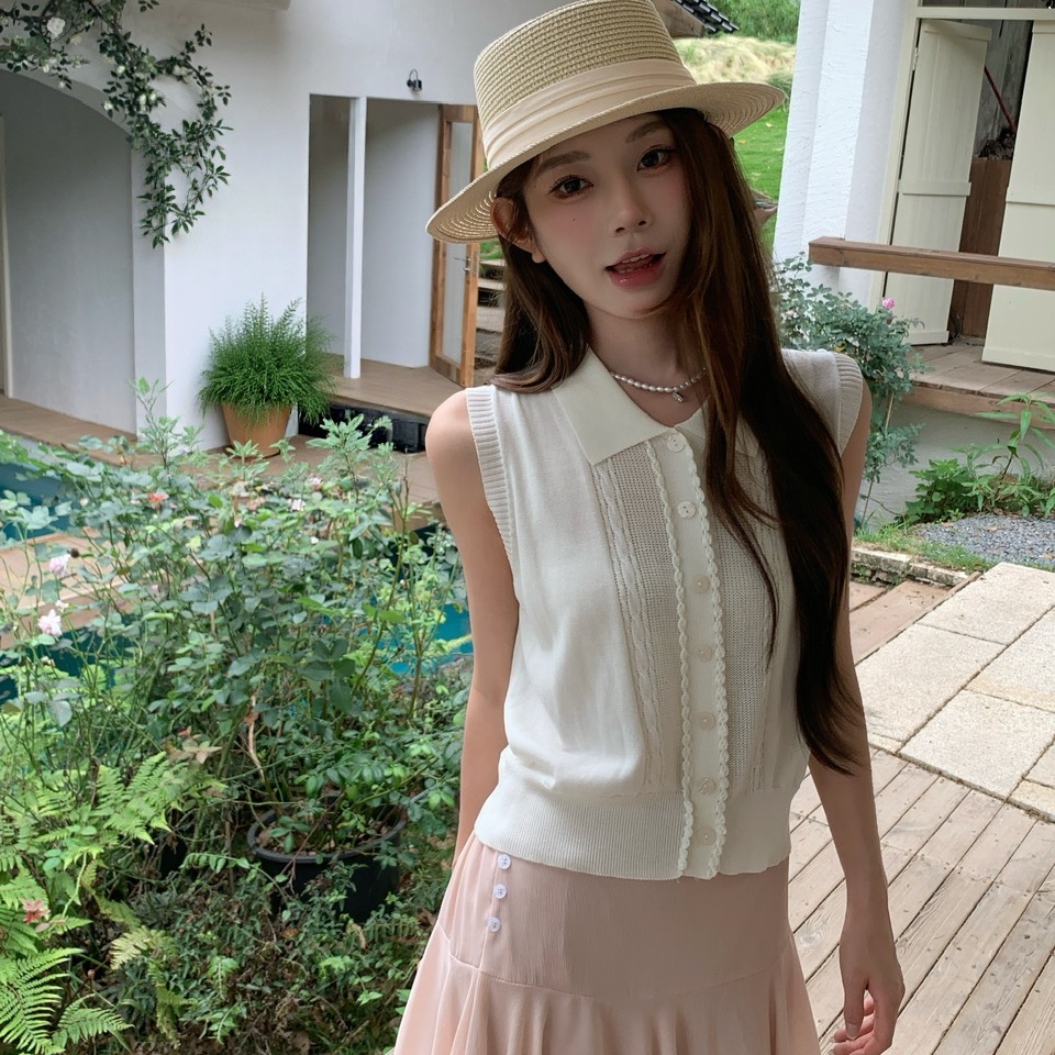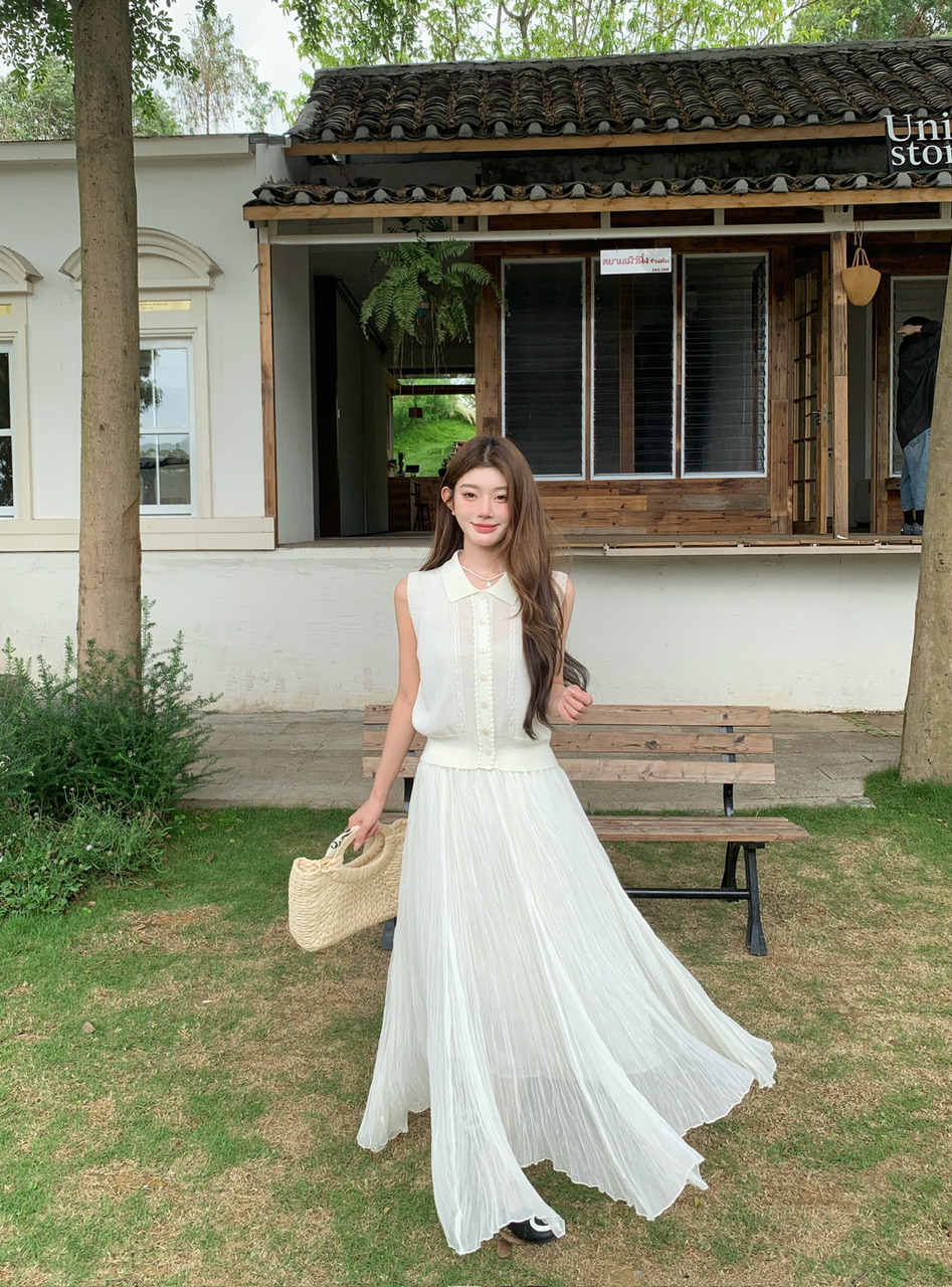 정가 실사 한 부서 순수한 욕망 바람 POLO 칼라 니트 조끼 요정 롱 스커트 세트 여성 품격 슬림해 보이는 세트