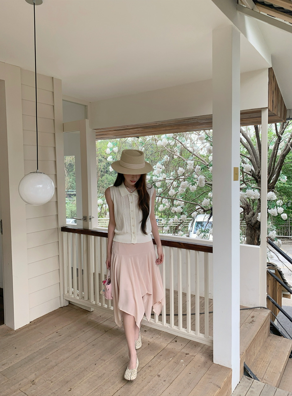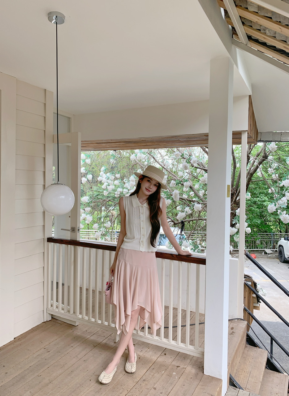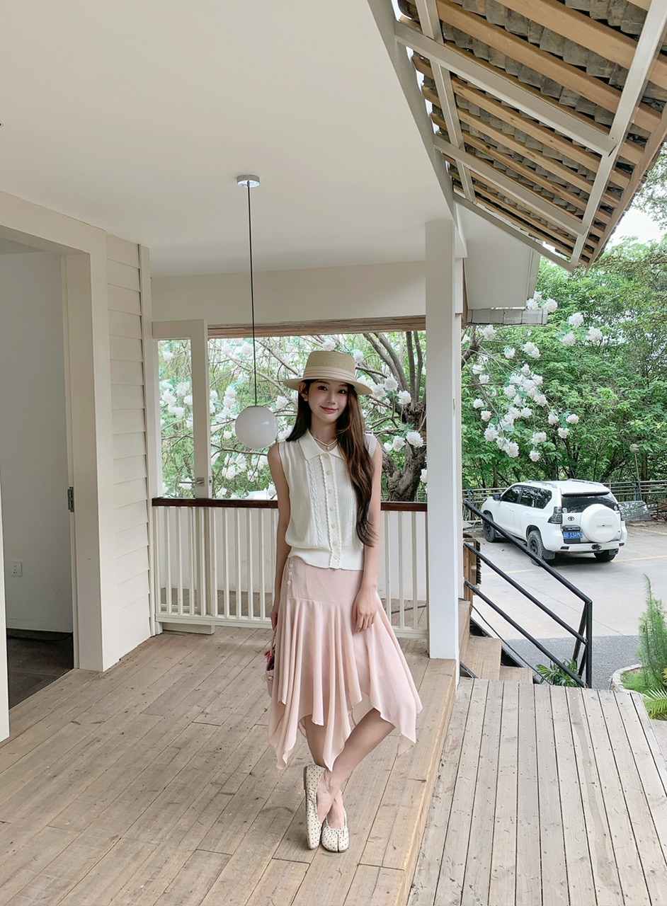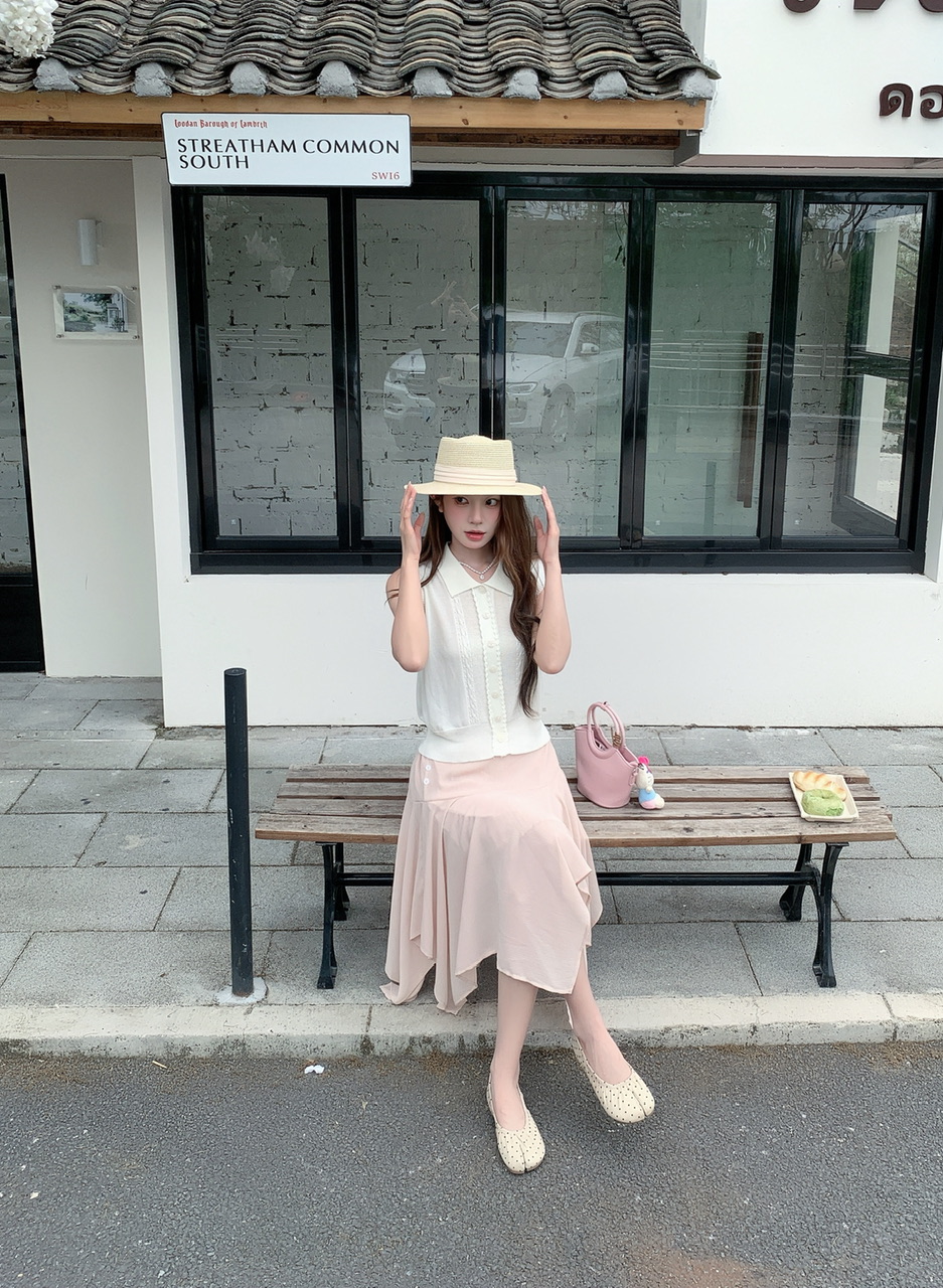 정가 실사 한 부서 여성 주님 착용 가져 가라. 살구 색상 POLO 칼라 니트 베스트 핑크색 한 마디 반 스커트 연령 감소 세트