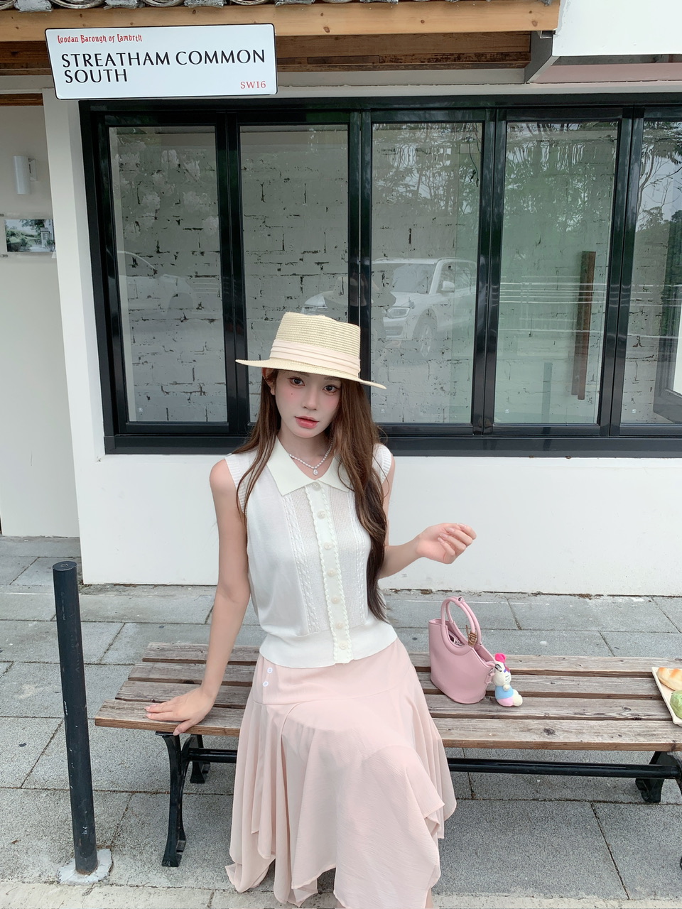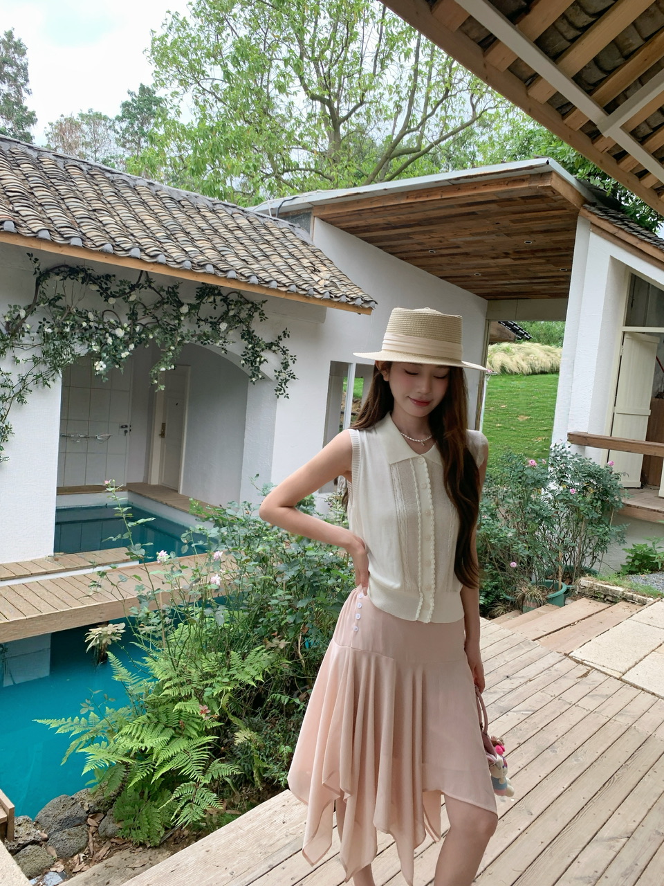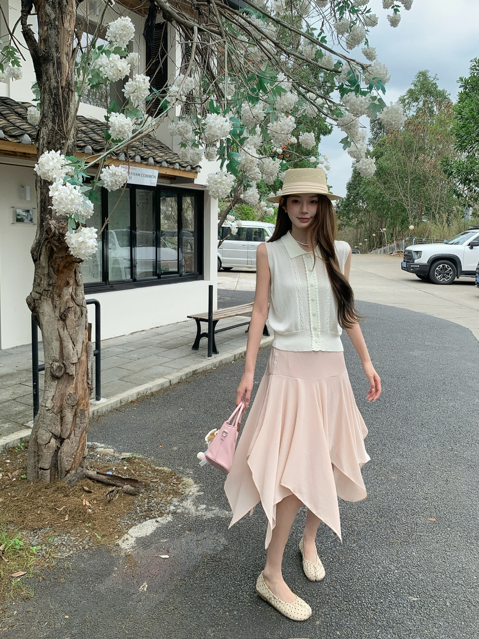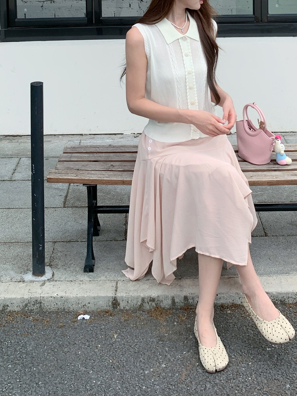 정가 실사 한 부서 여성 주님 착용 가져 가라. 살구 색상 POLO 칼라 니트 베스트 핑크색 한 마디 반 스커트 연령 감소 세트