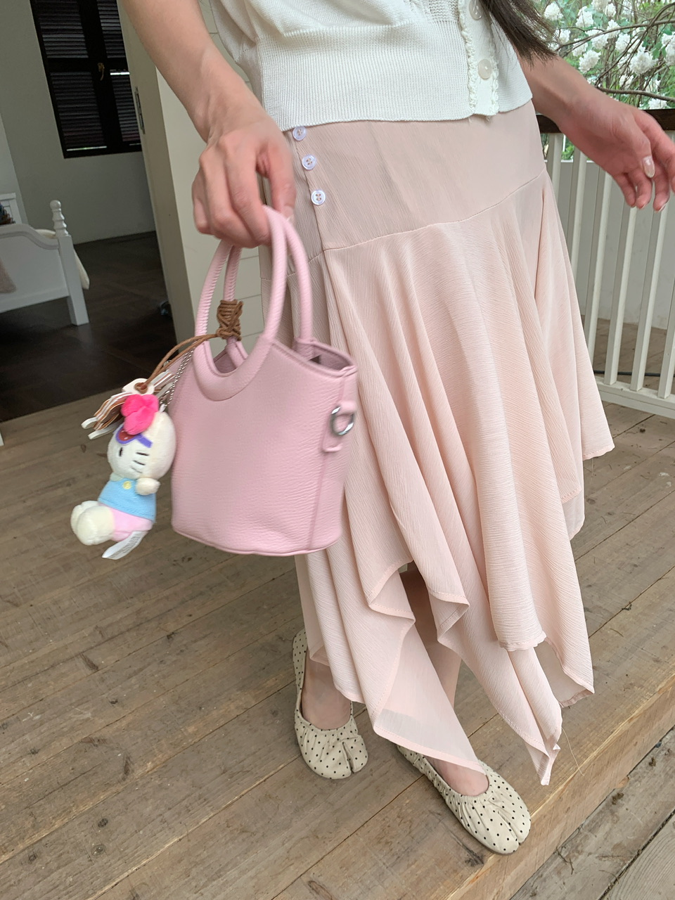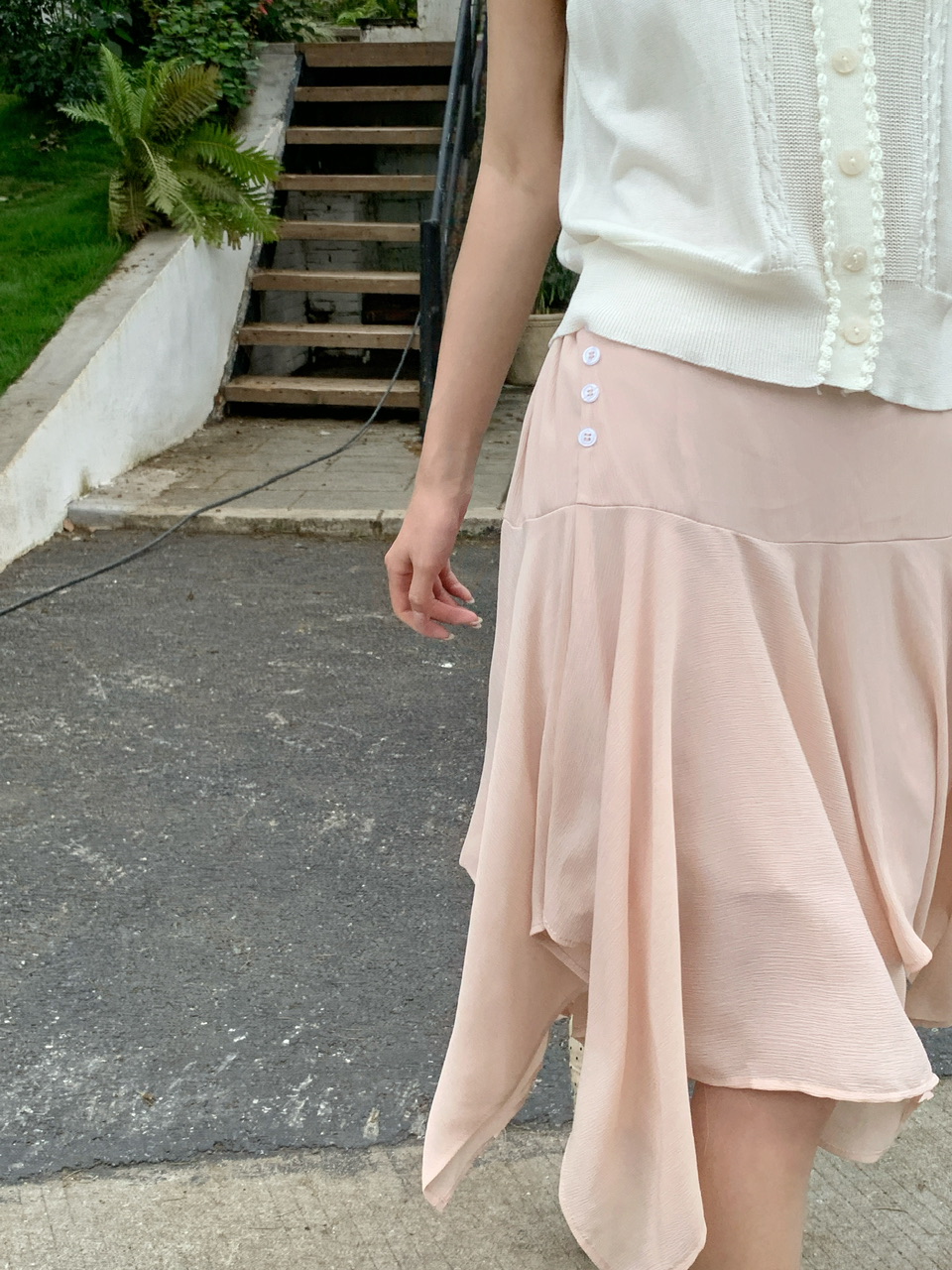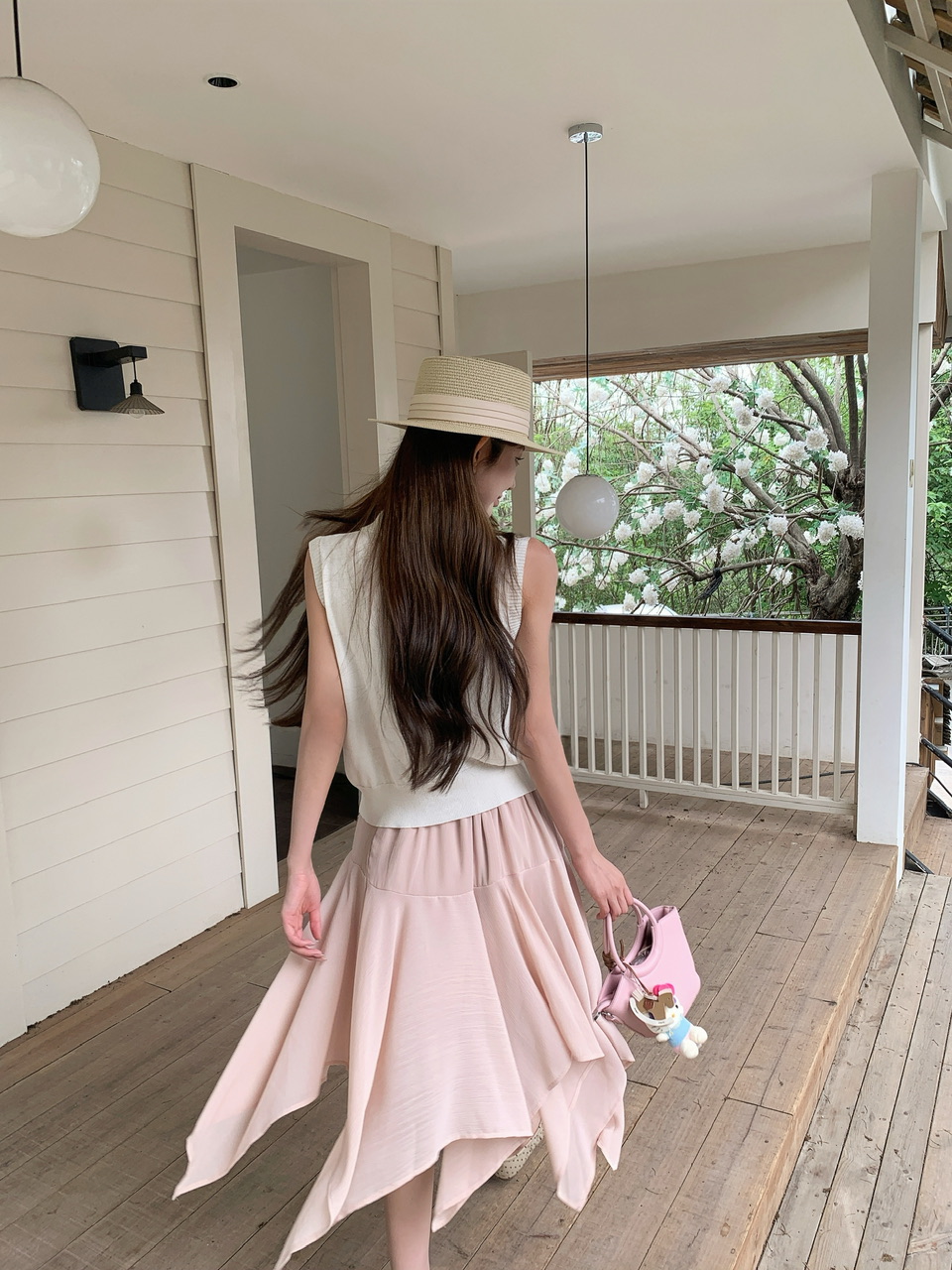 정가 실사 분위기 센스 우유 살구 얇은 스타일 니트 맨위 라이트 핑크 하이웨이스트 망사 반신 스커트 표지 고기 세트
