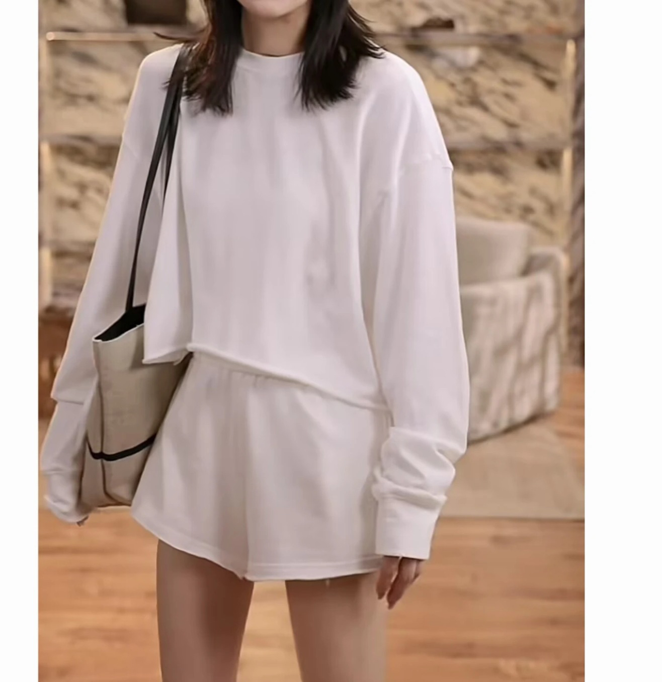 스타 가로장 여름 여자 미니멀리즘 루즈핏 맨위 반바지 캐주얼 세트