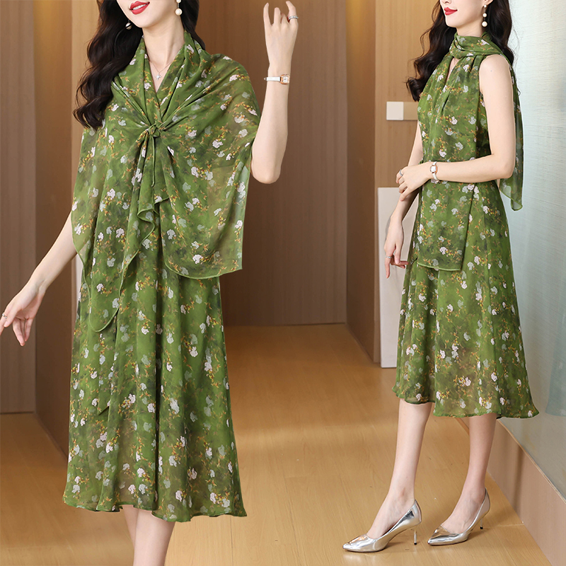 세 착용 법 쉬폰 점프 슈트 치마 패션 외국 가스 여름 새로운 여성 의류 중간 길이 넓은 아내 몸매 가꾸기 슬림해 보이는