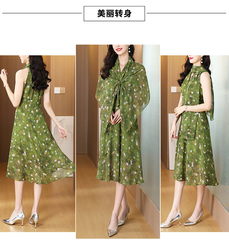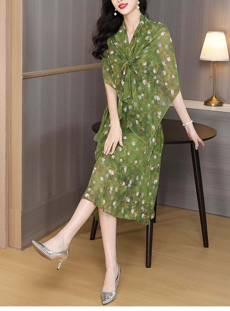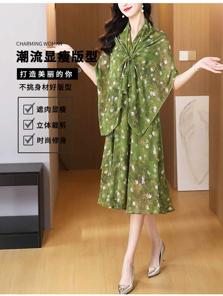 세 착용 법 쉬폰 꽃무늬 패션 외국 가스 몸매 가꾸기 슬림해 보이는 중간 길이 넓은 아내 어머니 드레스 반팔 드레스 여름