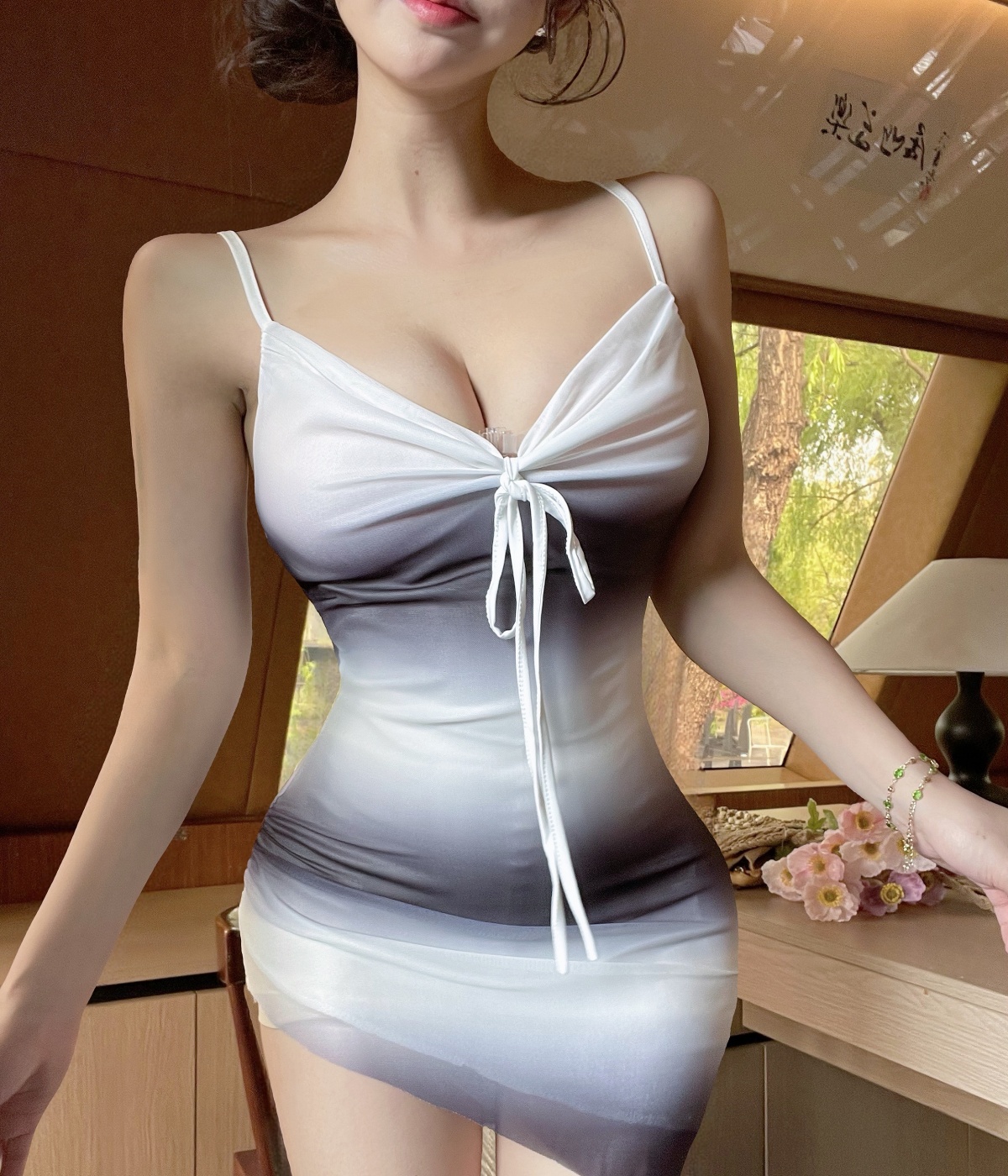 실사 섹시함 레이스 슬립 드레스 순수한 욕망 유혹 레이스 시스루 드레스