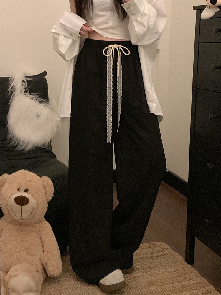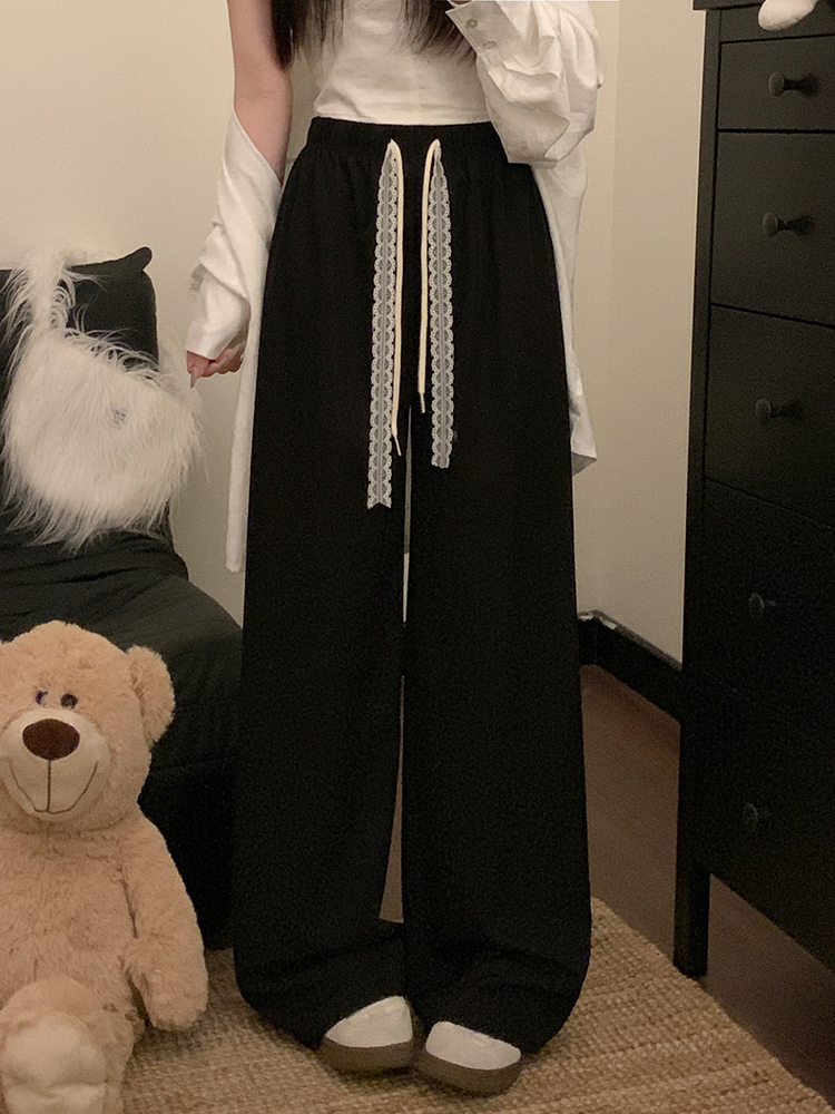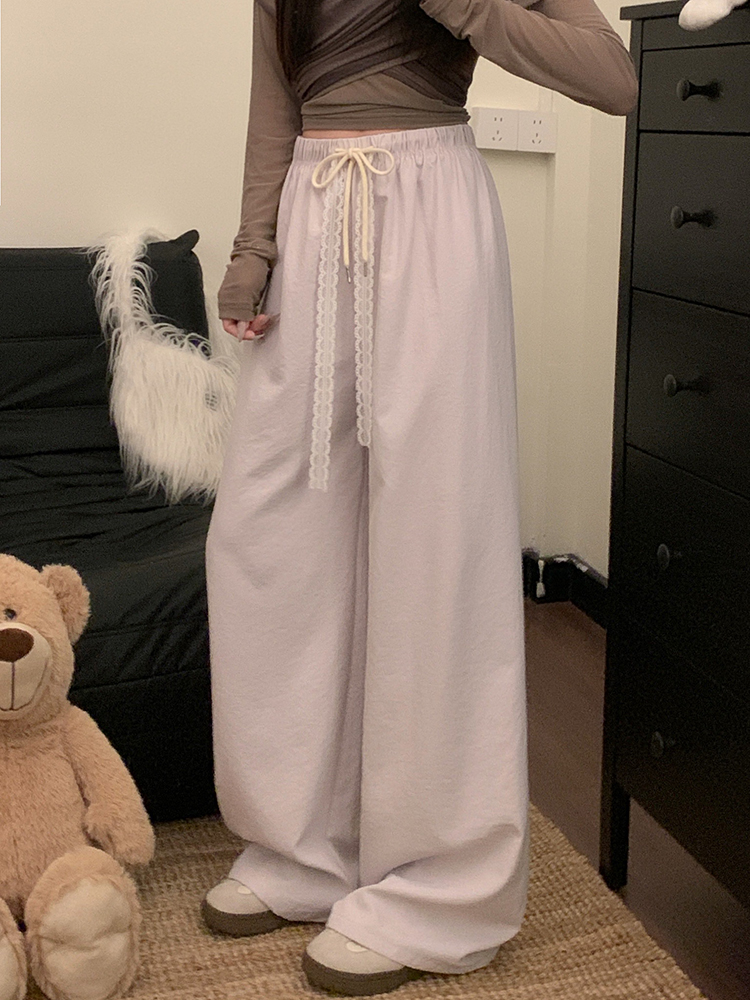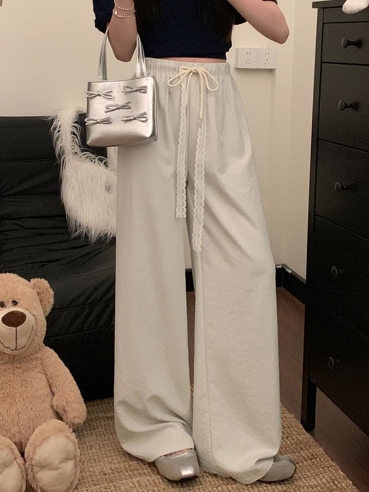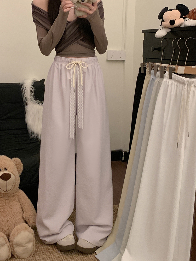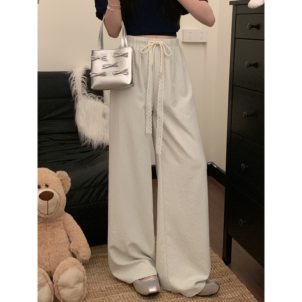 실사 2026 새로운 개성 펌프 로프 와이드 레그 팬츠 레이스업 허리밴드 캐주얼 루즈핏 바지 여성