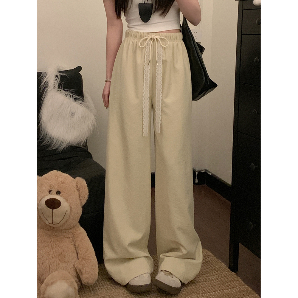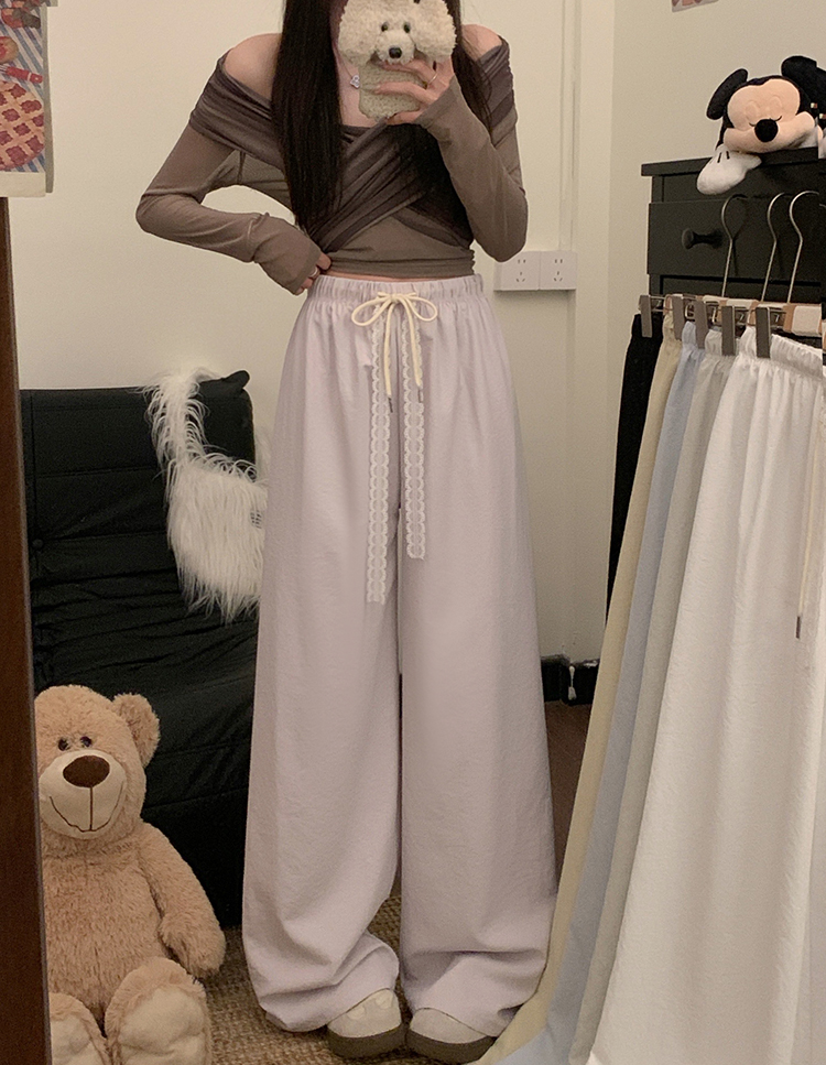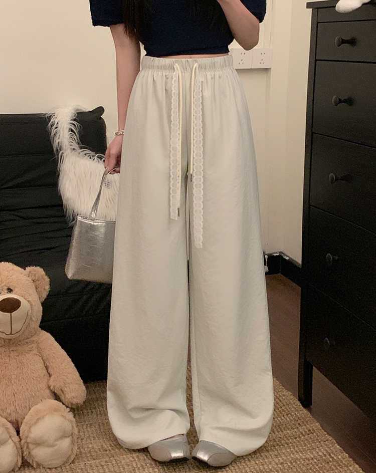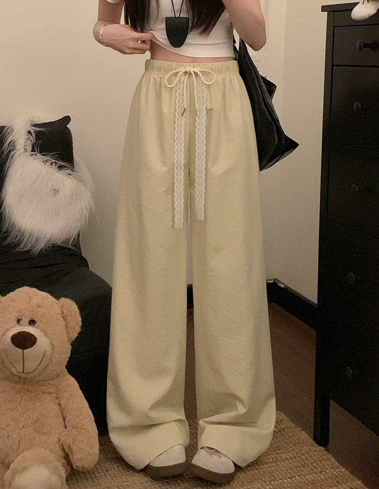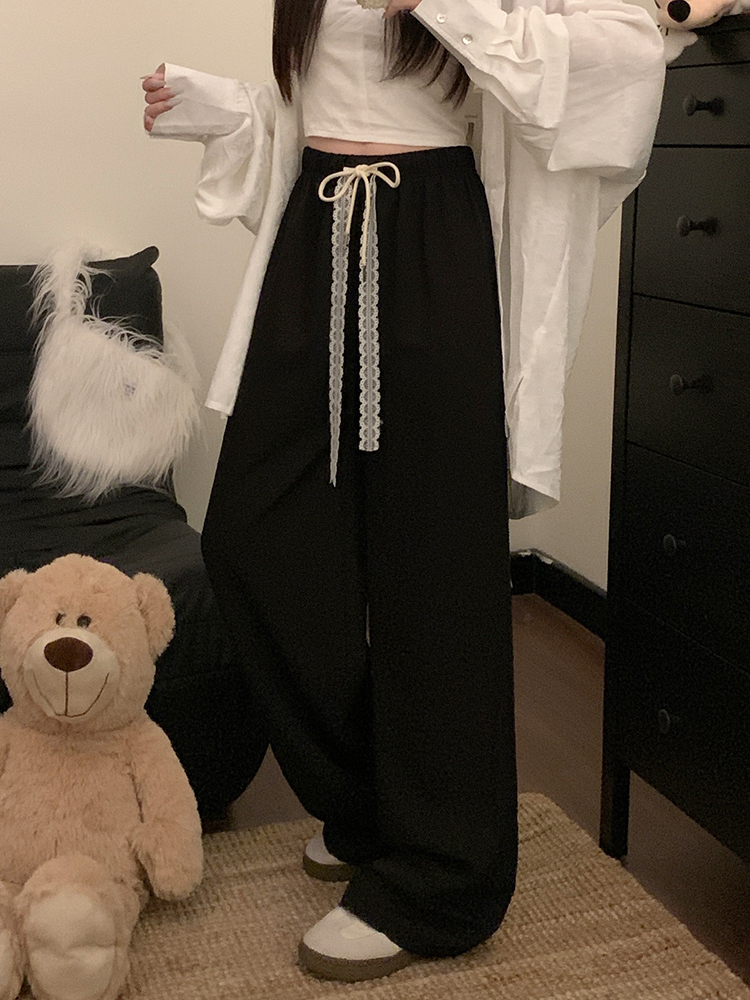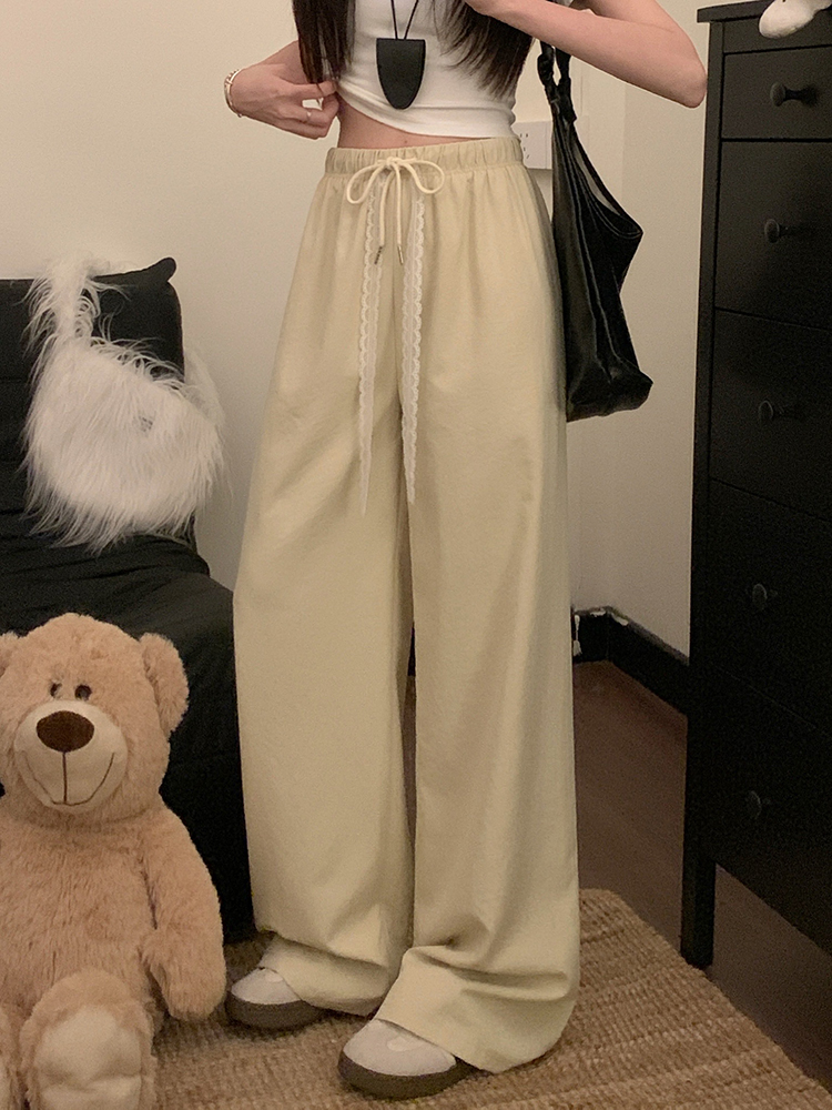 실사 2026 새로운 개성 펌프 로프 와이드 레그 팬츠 레이스업 허리밴드 캐주얼 루즈핏 바지 여성
