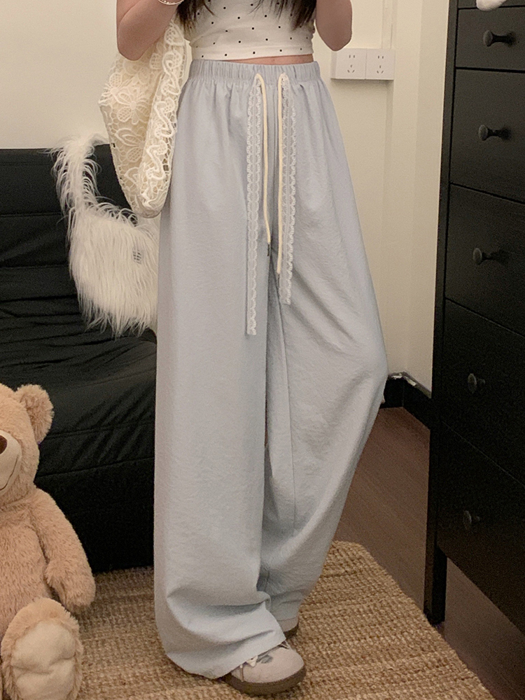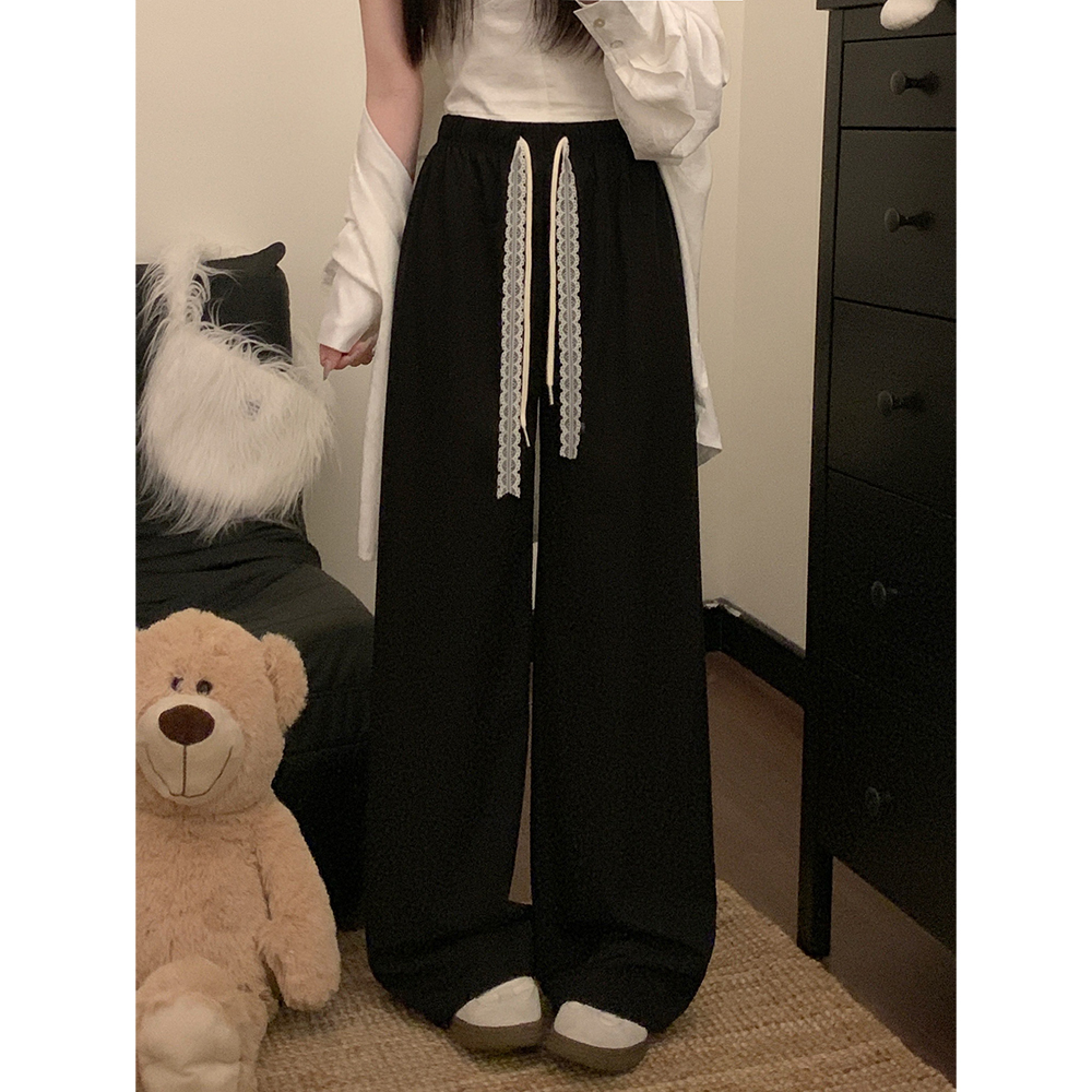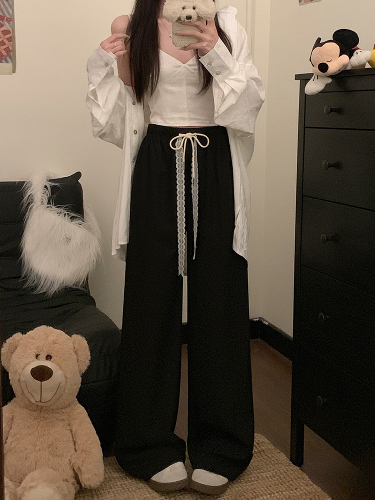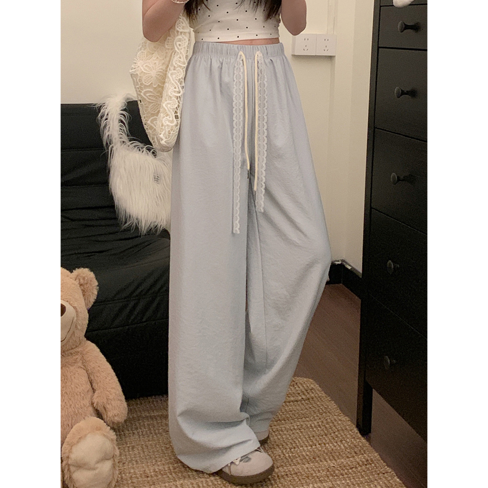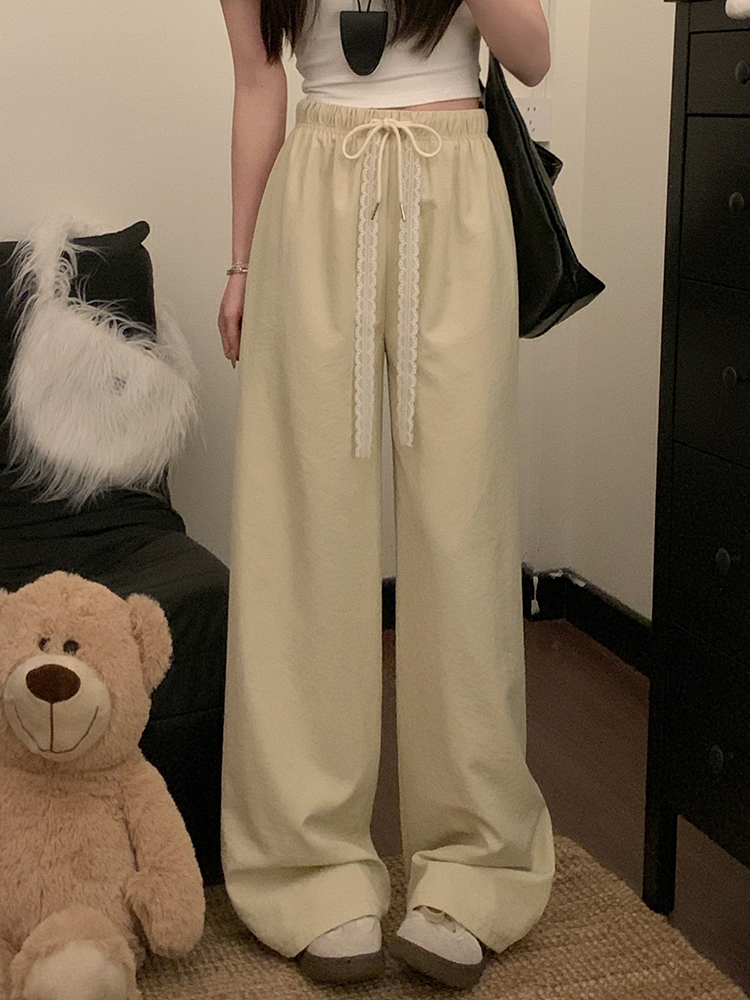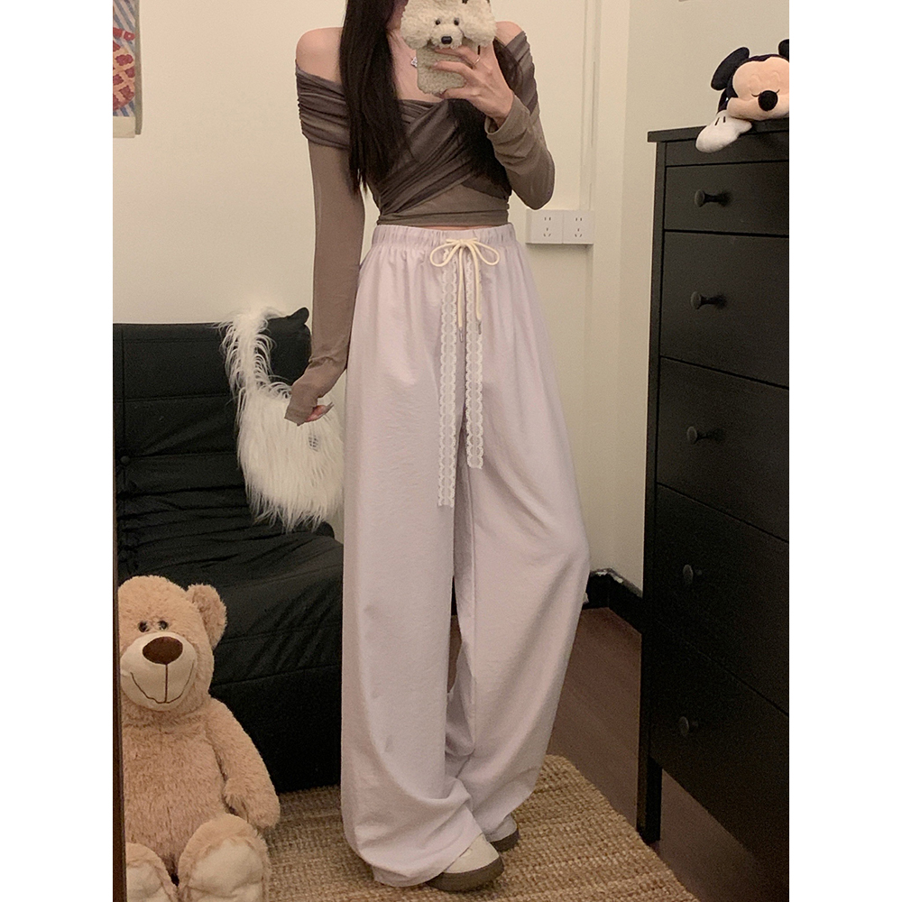 실사 2026 새로운 개성 펌프 로프 와이드 레그 팬츠 레이스업 허리밴드 캐주얼 루즈핏 바지 여성