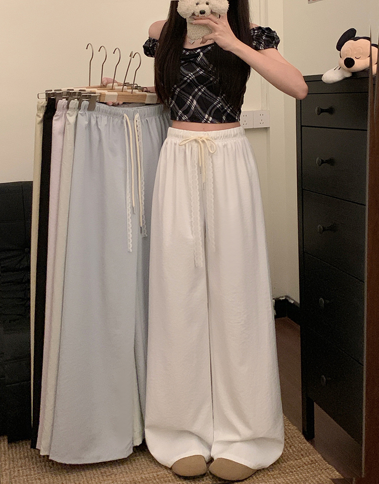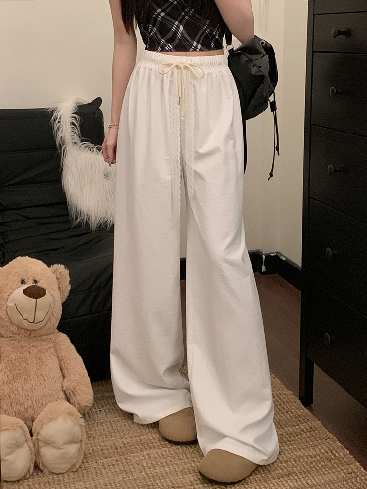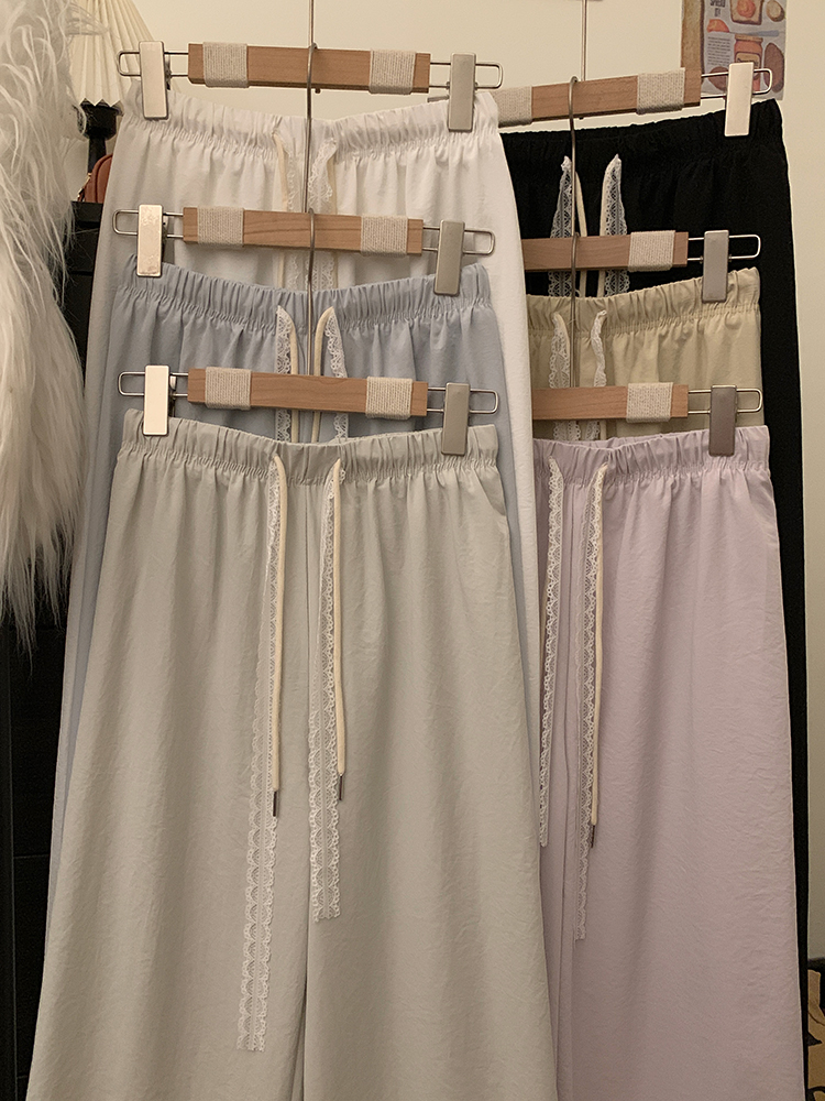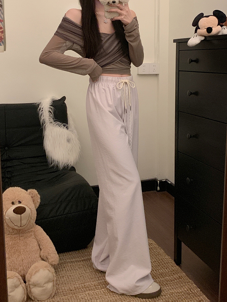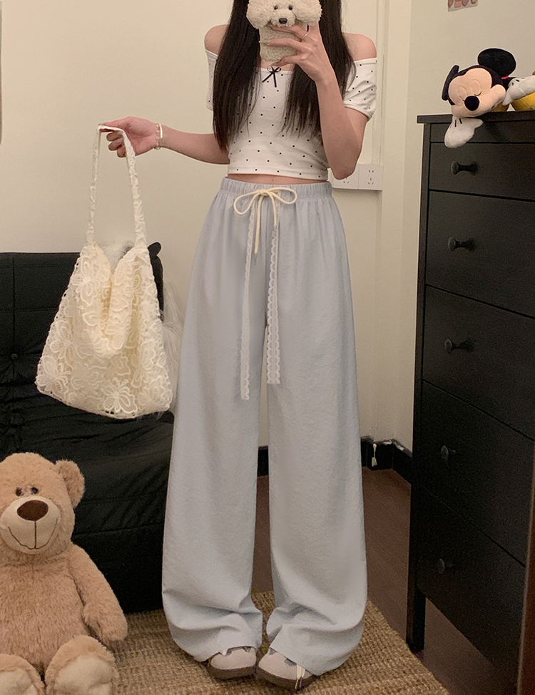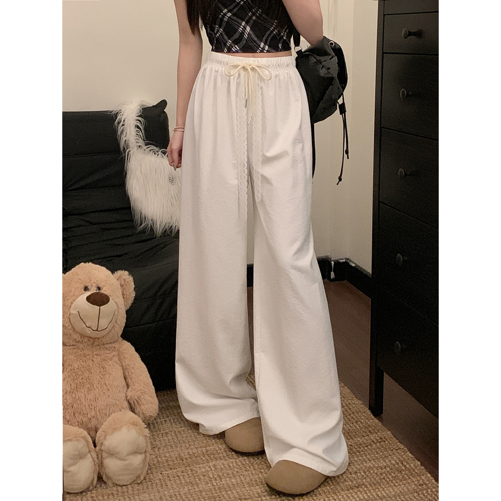 실사 2026 새로운 개성 펌프 로프 와이드 레그 팬츠 레이스업 허리밴드 캐주얼 루즈핏 바지 여성
